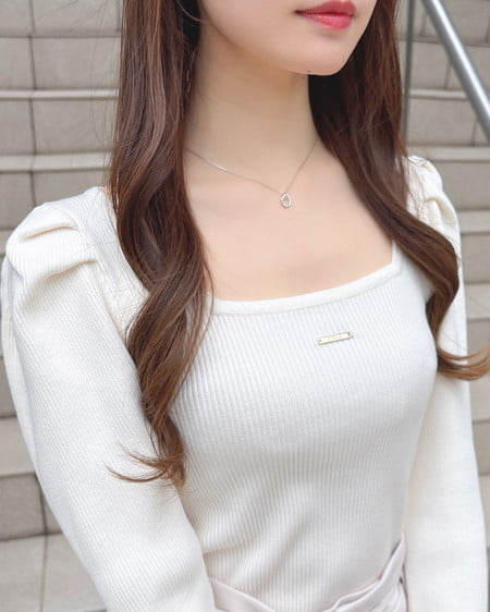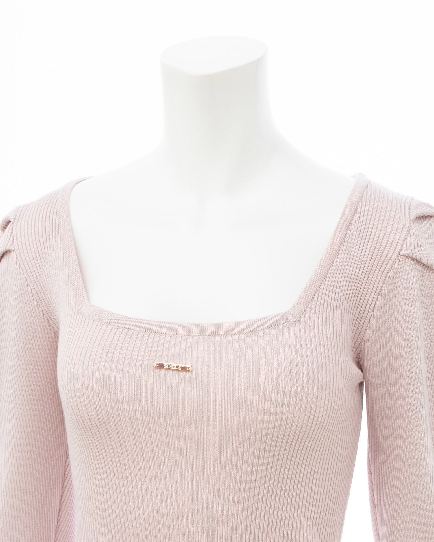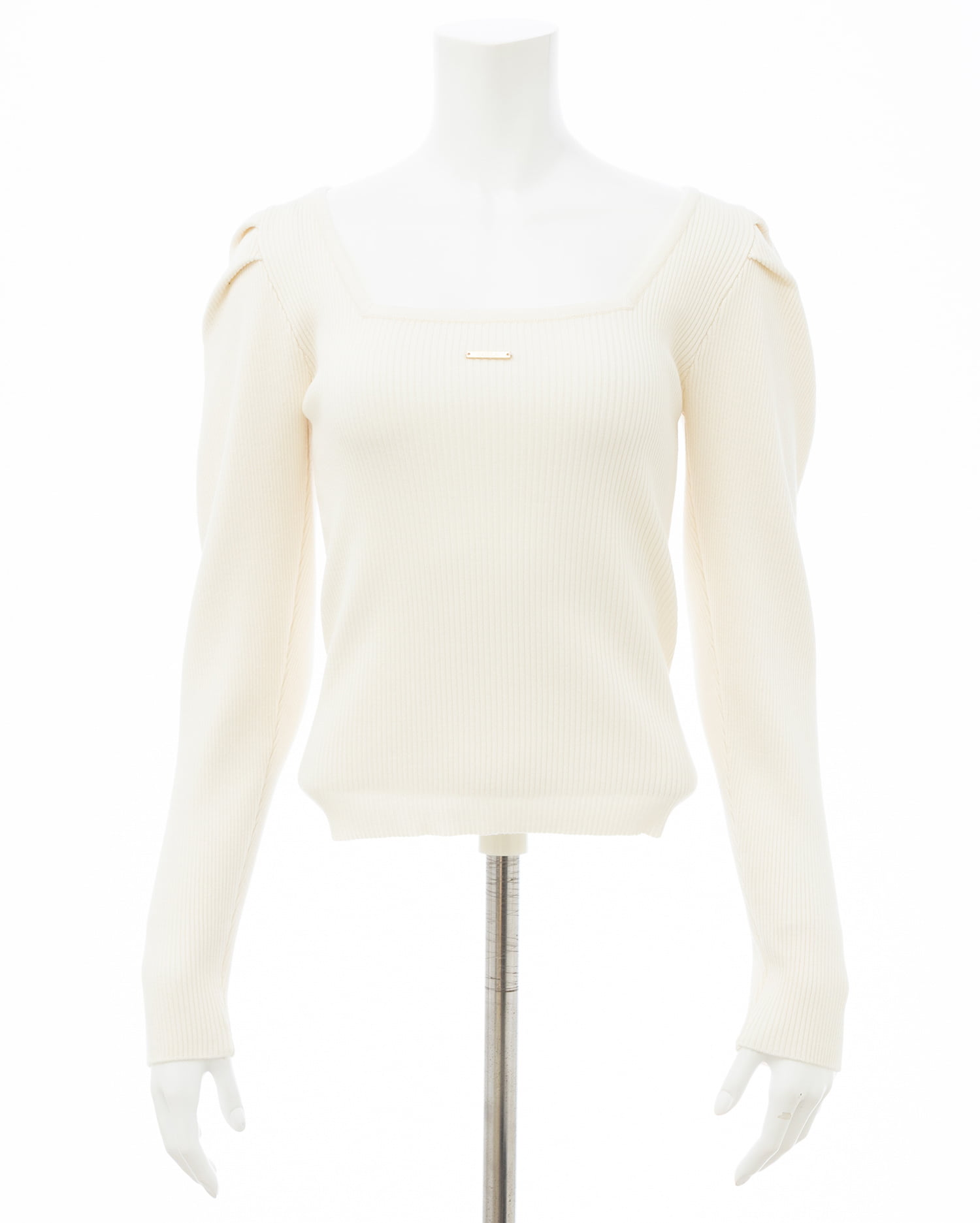 スクエアネックが上品な肌見せを叶えるリブニットトップス。