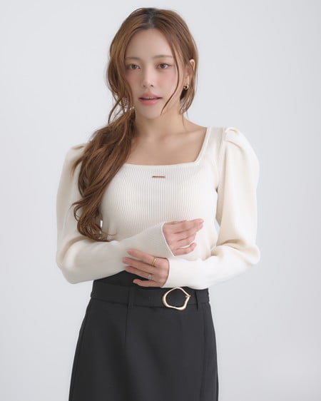 シンプルなデザインながらもパフスリーブが華やかな印象を与えてくれます。