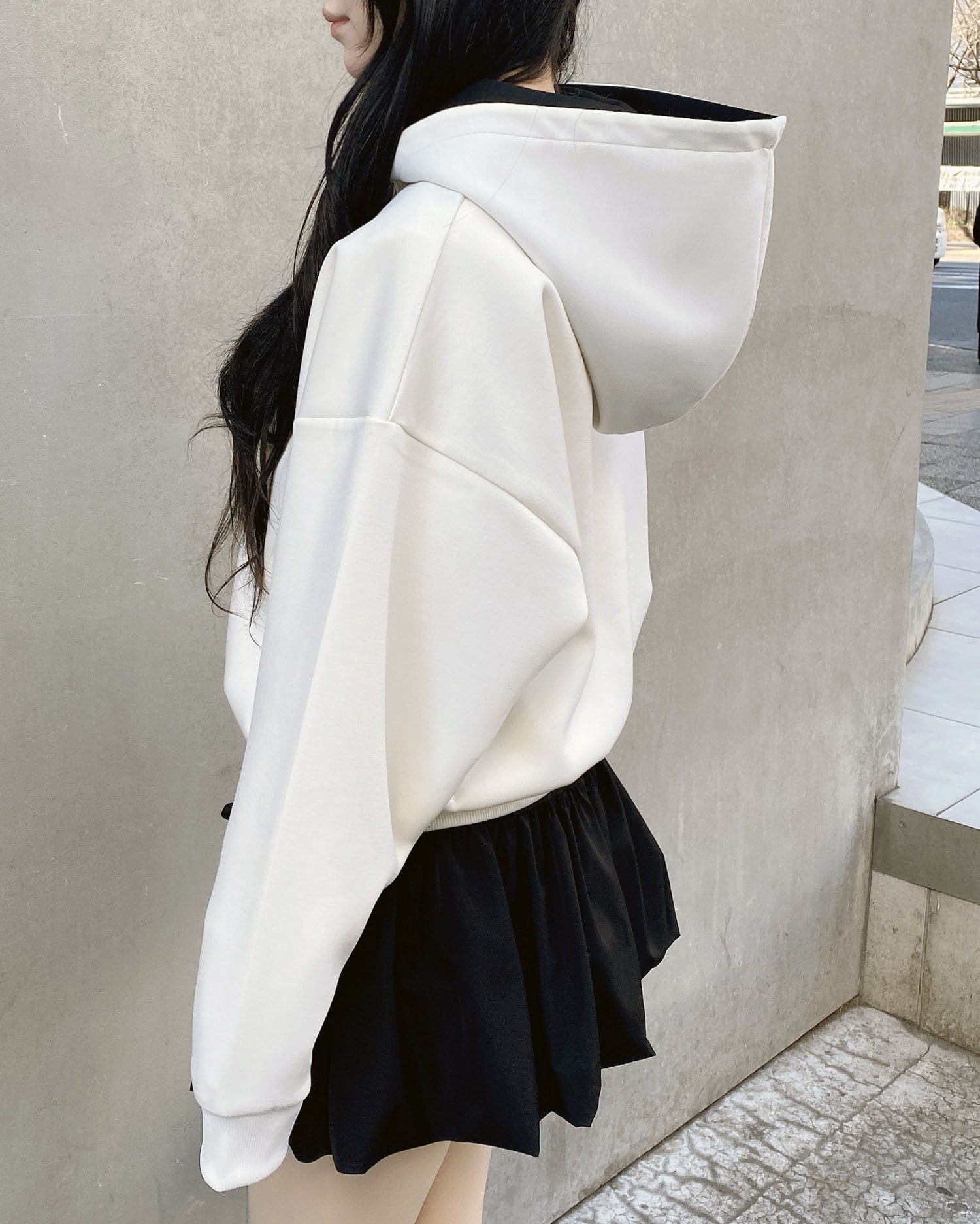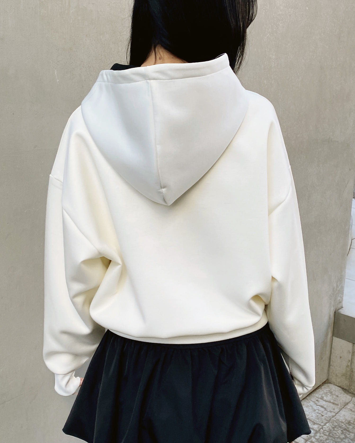 フード裏のバイカラーがスタイリッシュなアクセントになっています。