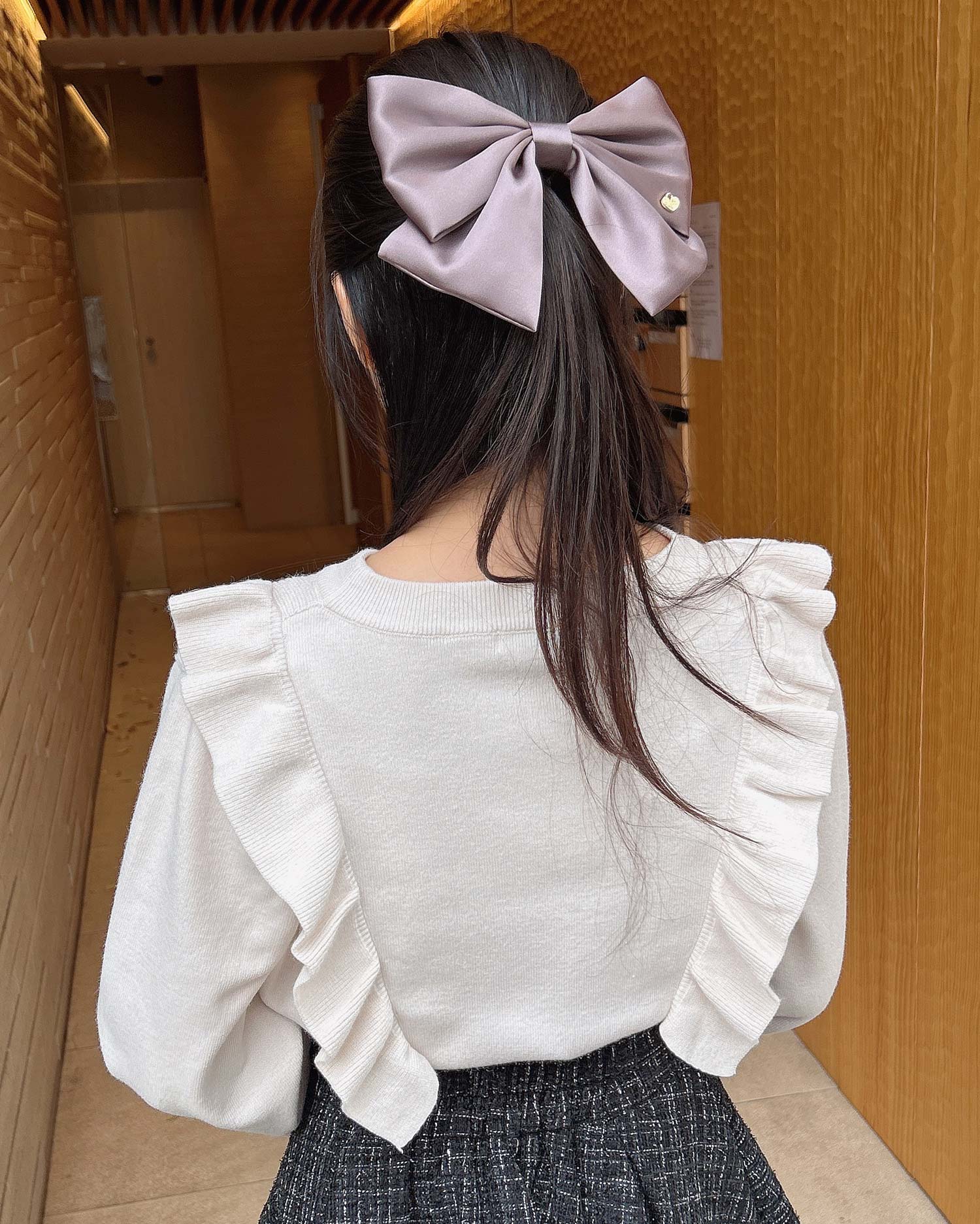 カチッと留められるバレッタはホールド力があるので崩れにくいのも◎。