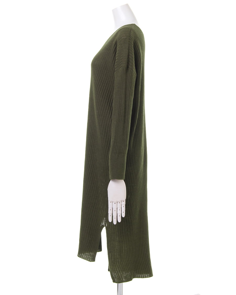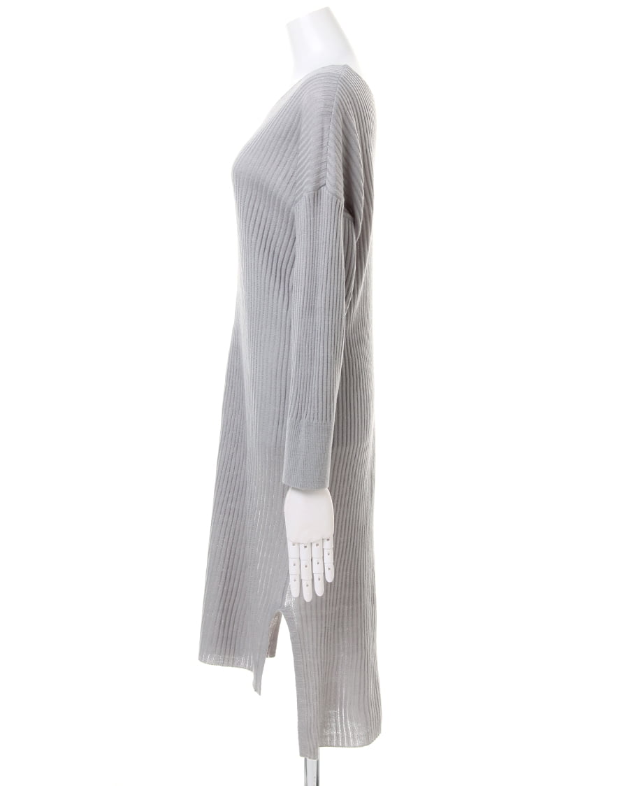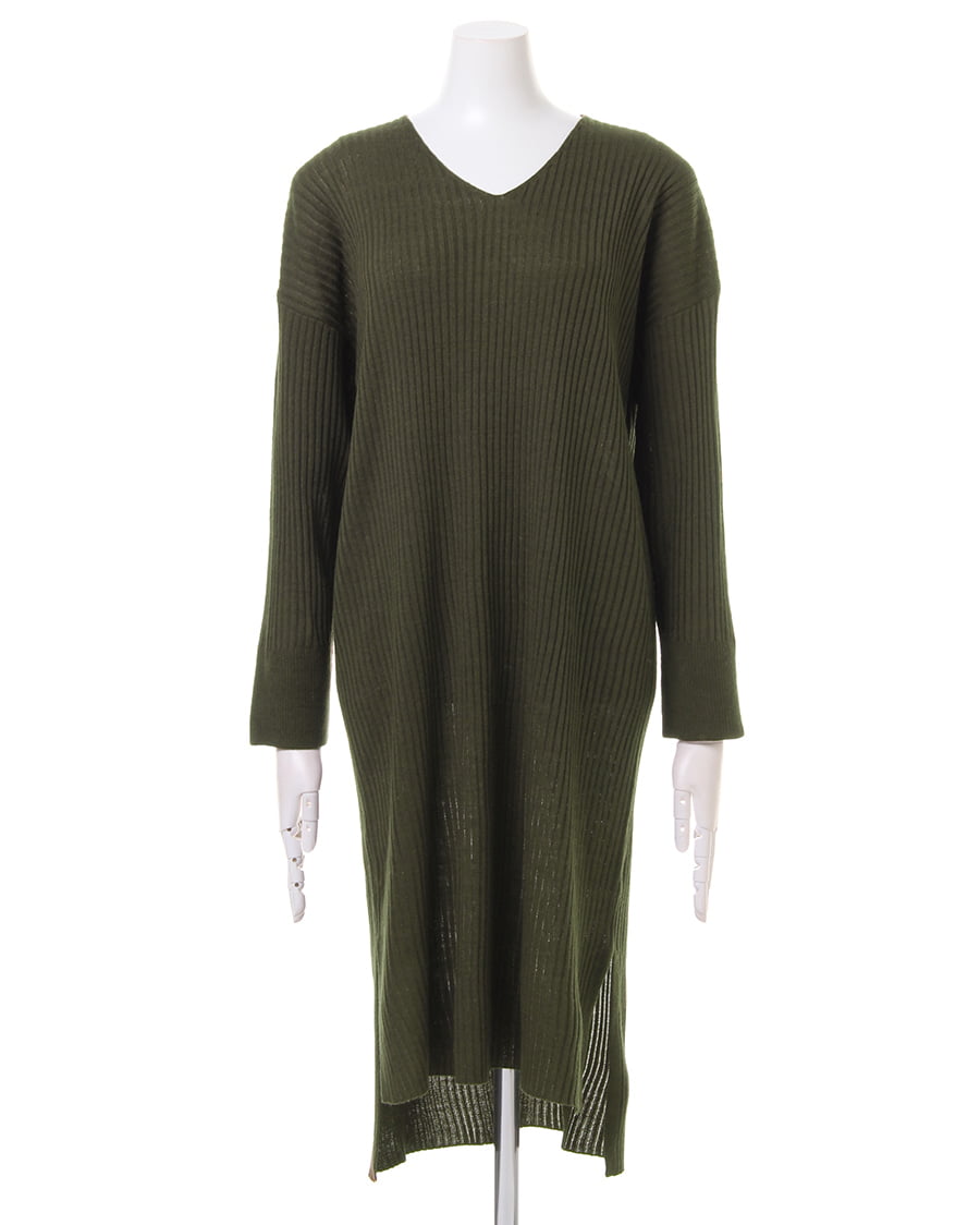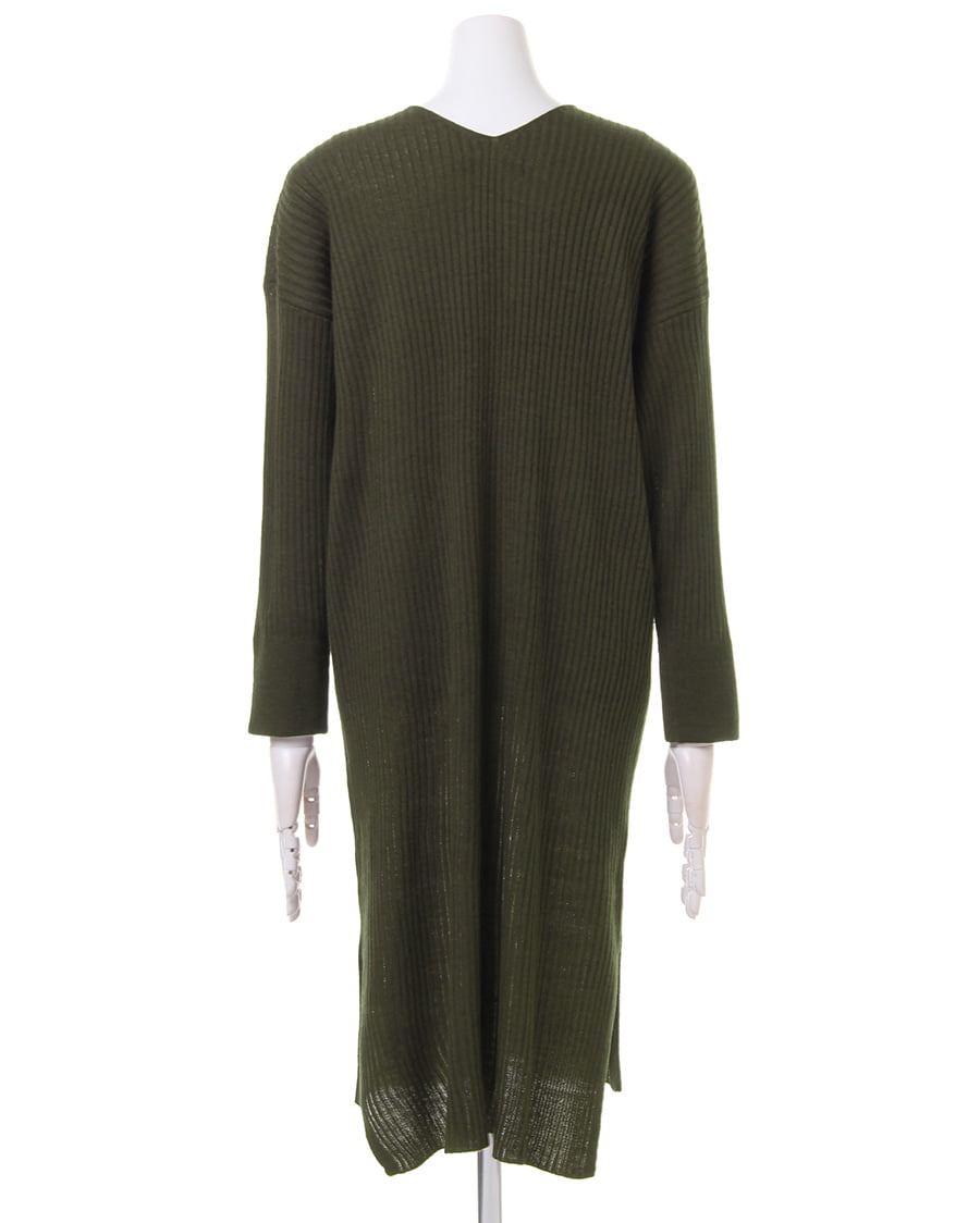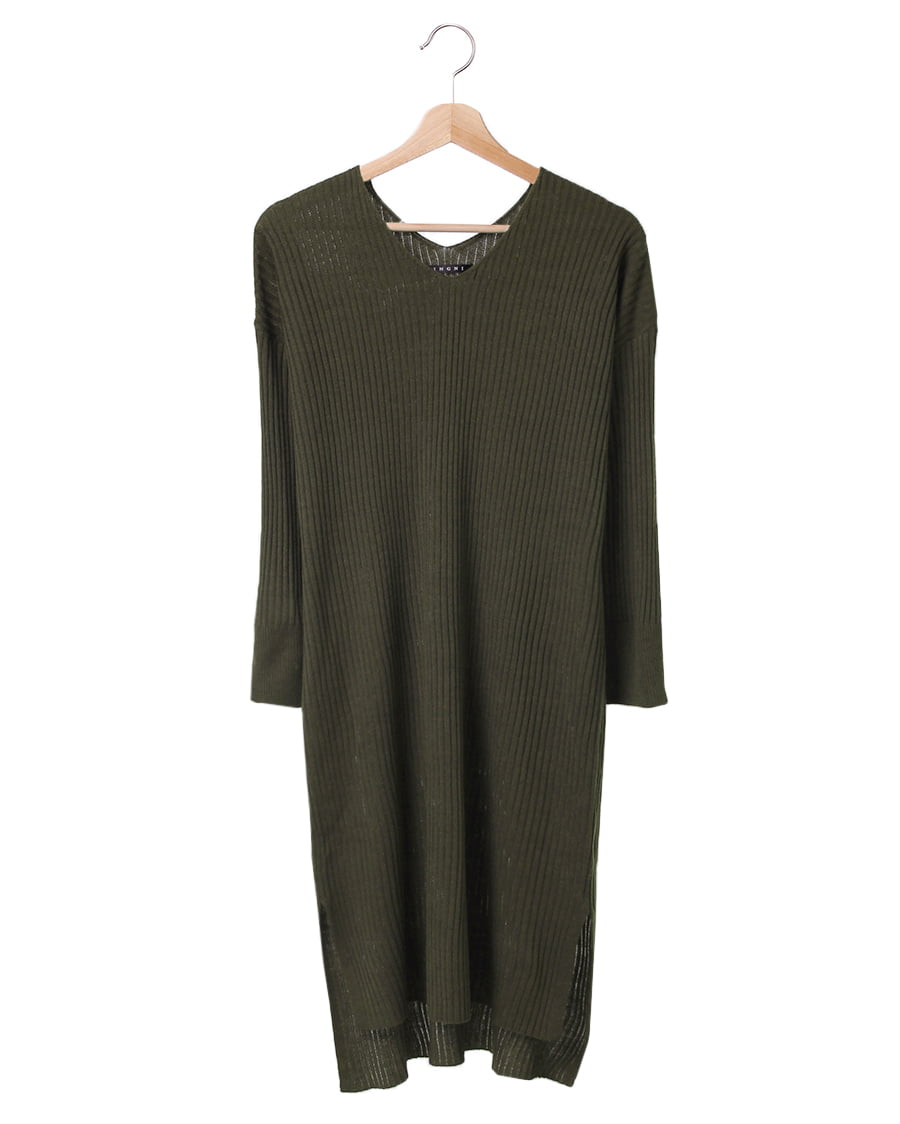 上品なリブが縦のシルエットを演出、前後差のある裾がエレガントなワンピース。すっきりミニマムな無駄のないデザインをベースに後ろ下がりの裾や、落とし気味の肩のシルエットが抜け感を演出します。さっと着るだけでボディラインをきれいにメイク、スタイルアップも期待できる計算されつくした一枚。Vネックが大人の女性らしさを演出、小物やシューズのアレンジで印象も変わります。