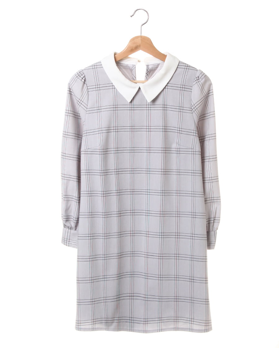 落ち感のあるデザインが上品なワンピースは落ち着いたチェック柄でこなれ感をプラス。胸元にダーツを入れることでフレアーのシルエットを強調するディテールに注目です。清楚な雰囲気のホワイトの襟部分が顔周りを明るく見せてくれるのもポイント。袖口とバック部分には動く度に輝きを放つパールビジューをトッピングしています。シワになりにくい薄手の生地ながらも裏地付きなので、安心して着られます。