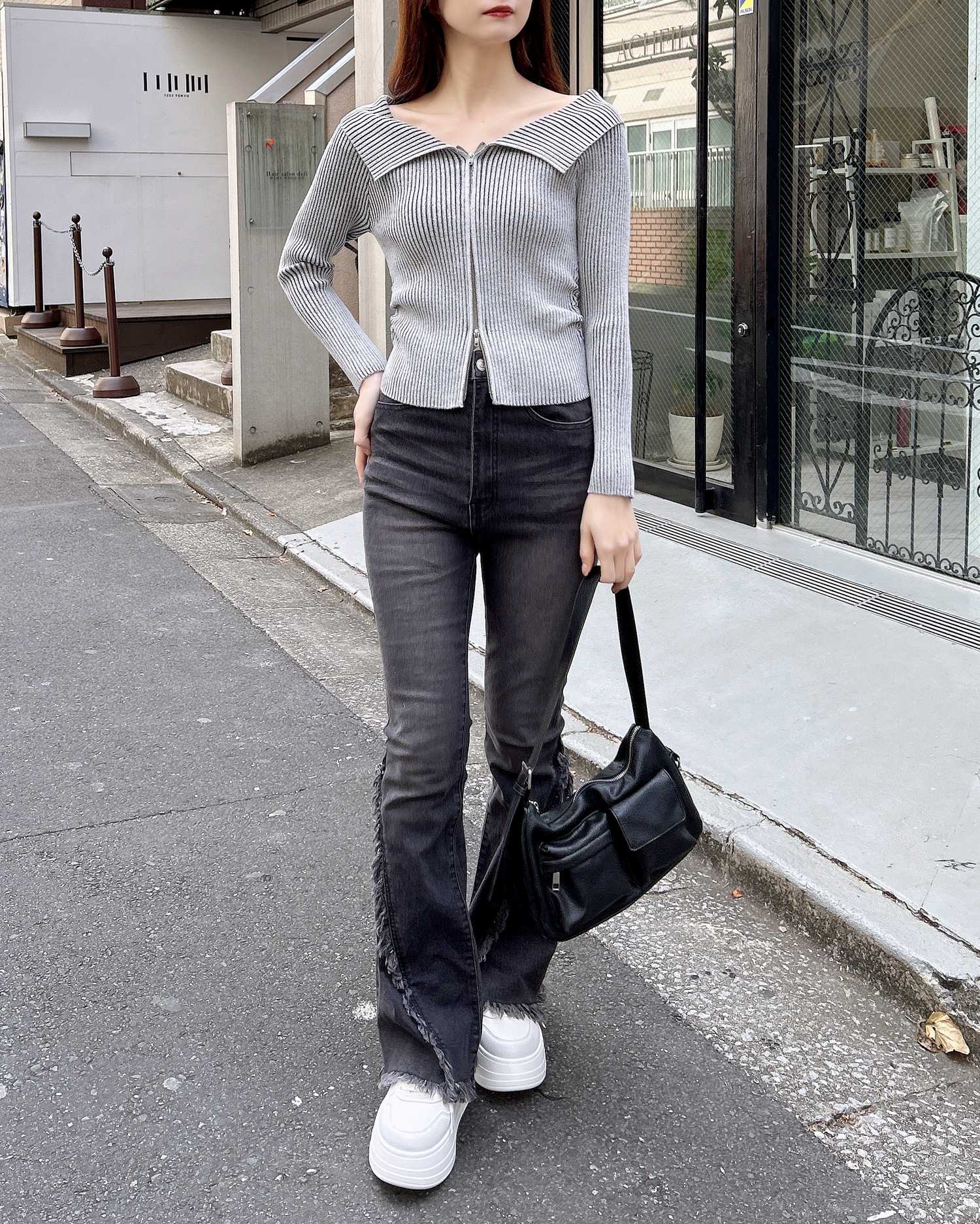 トレンドのショート丈トップスにもバランス良く合わせられます。