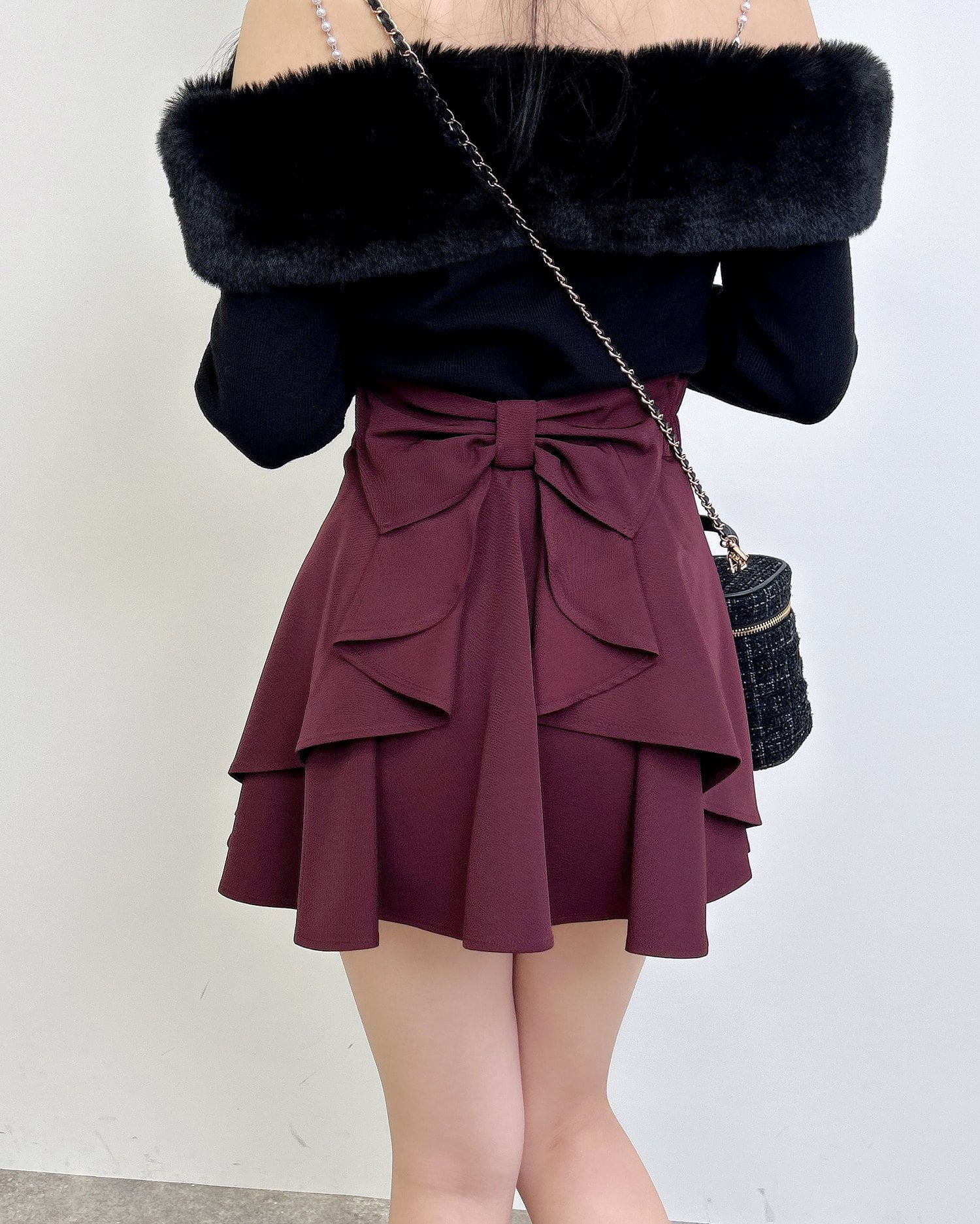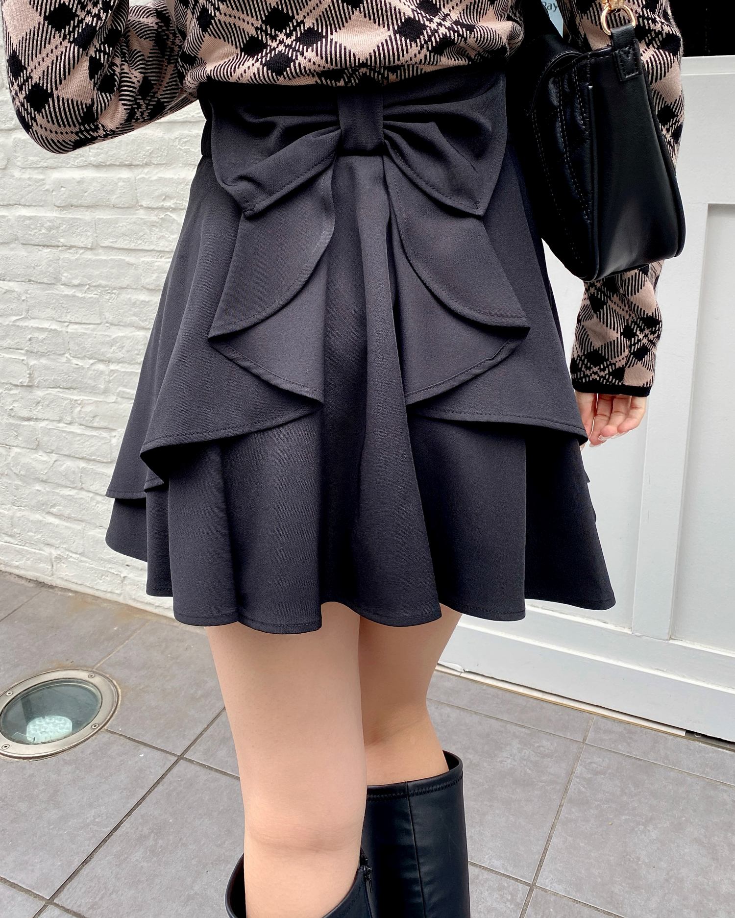後ろに大胆にあしらわれたリボンがポイントのフレアスカパン。