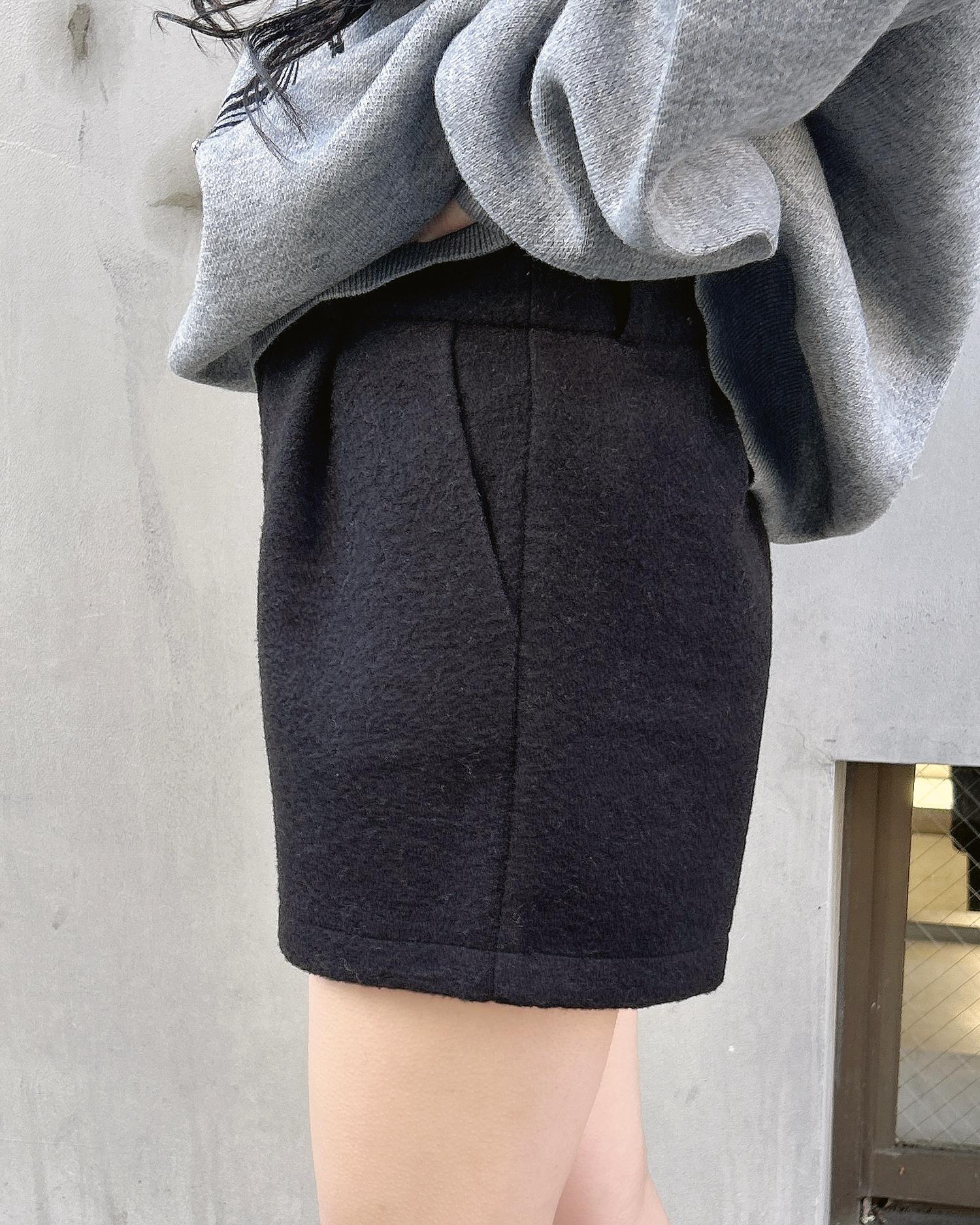 ウエスト下に入れたタックからほんのり広がるシルエットで美脚効果も◎。
