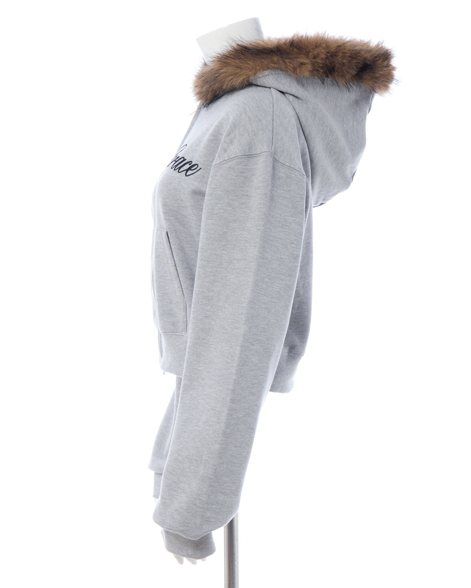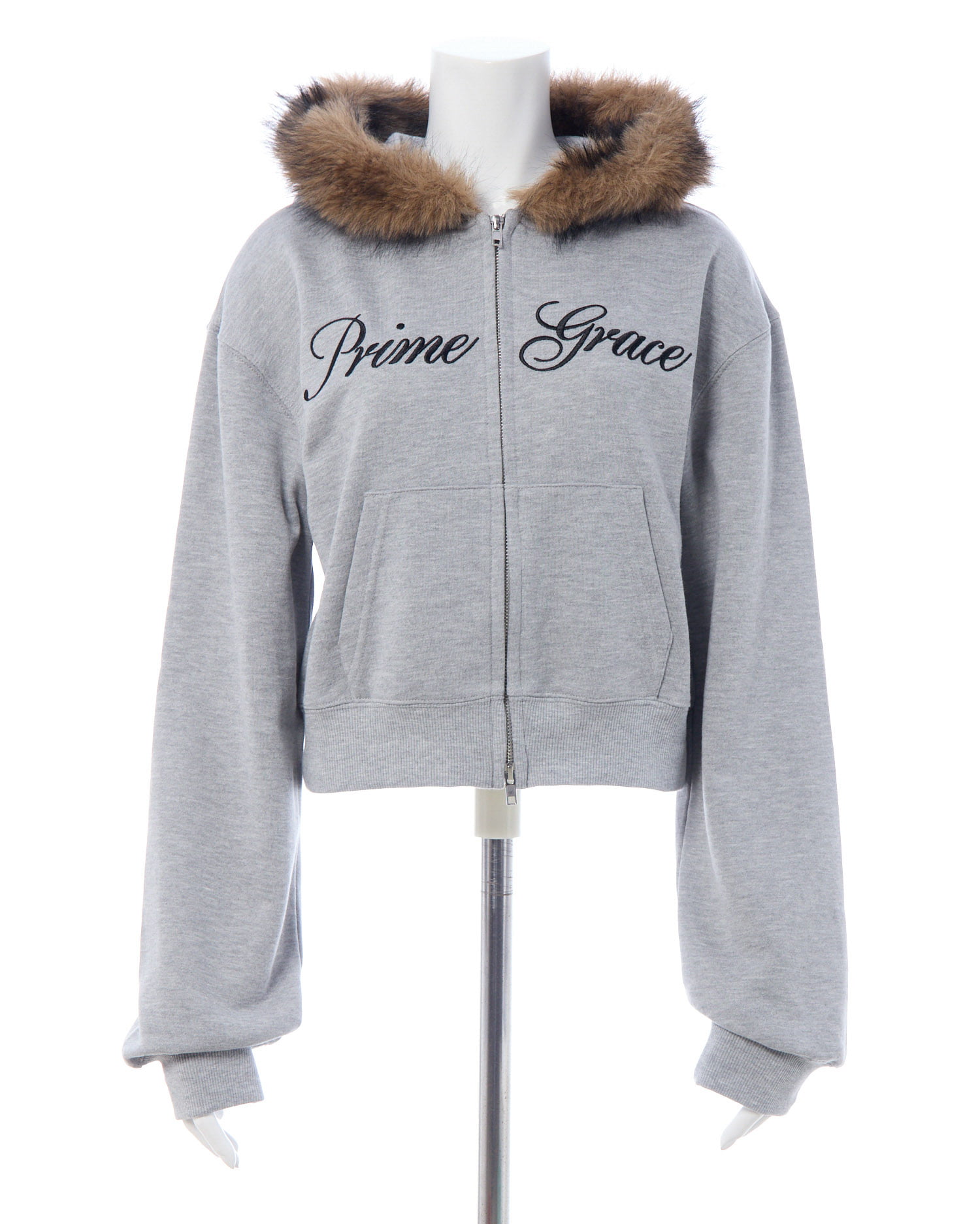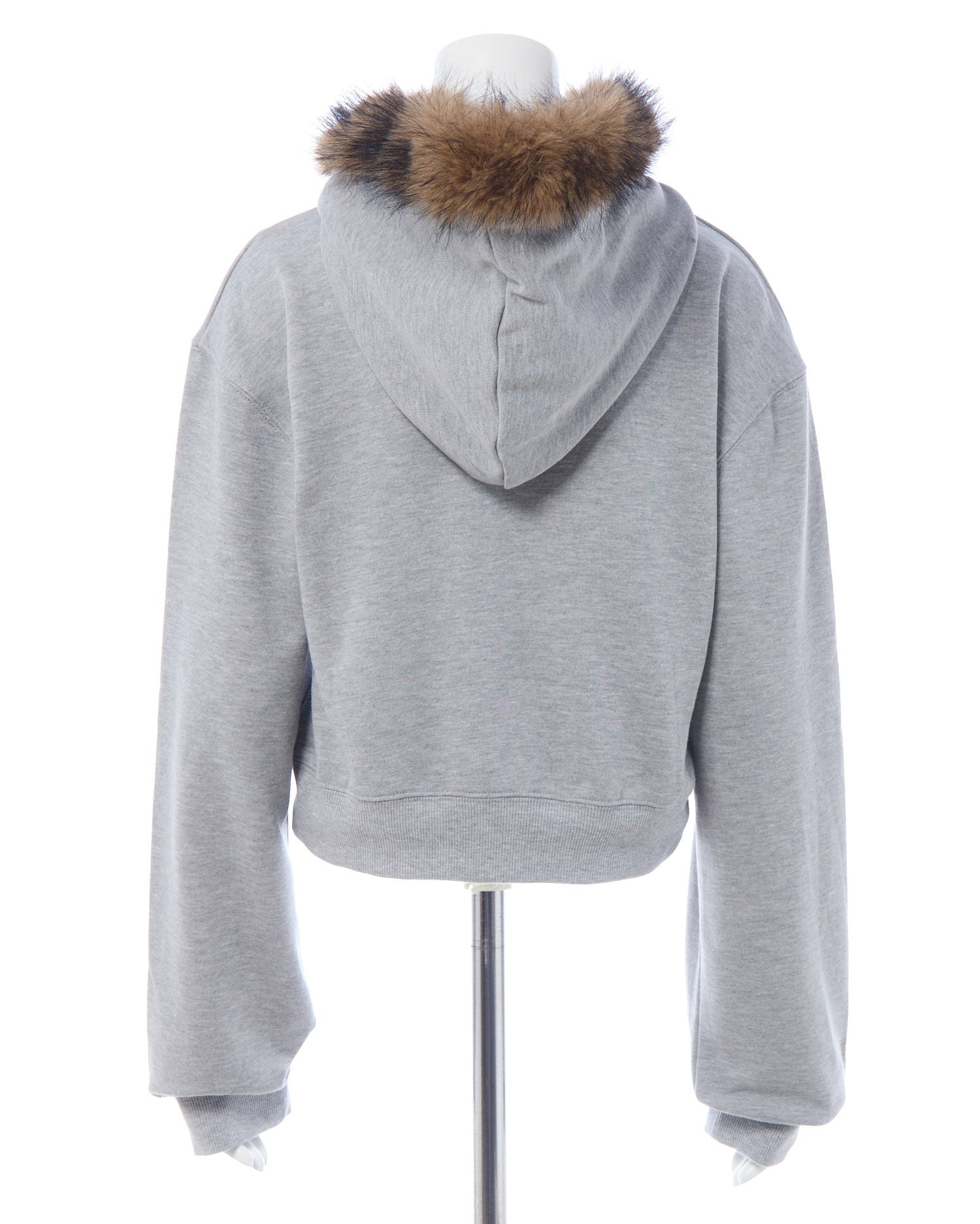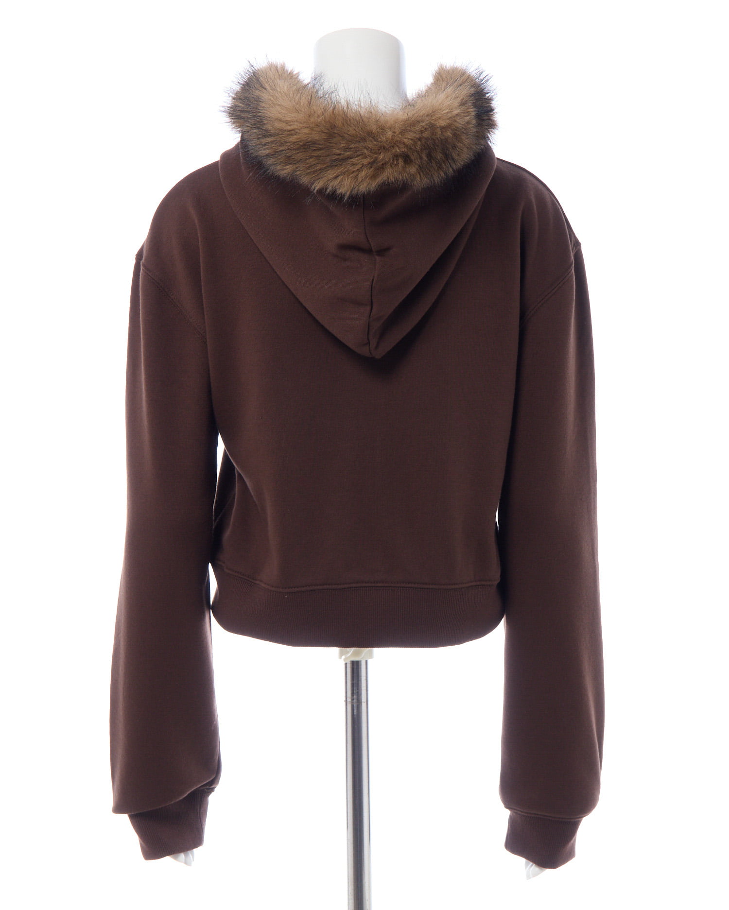 フード部分にフェイクファーをあしらって季節感をプラスしたパーカー。