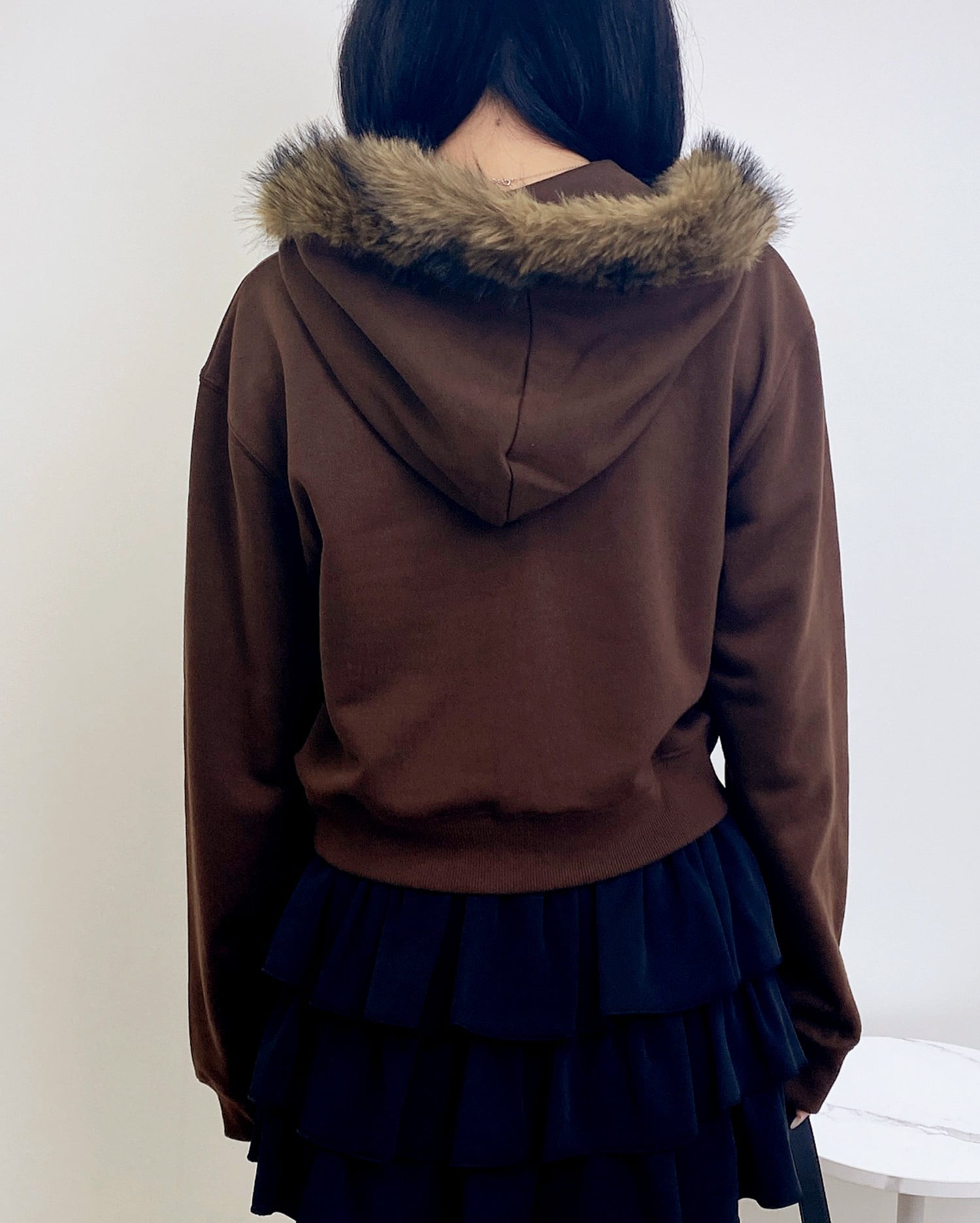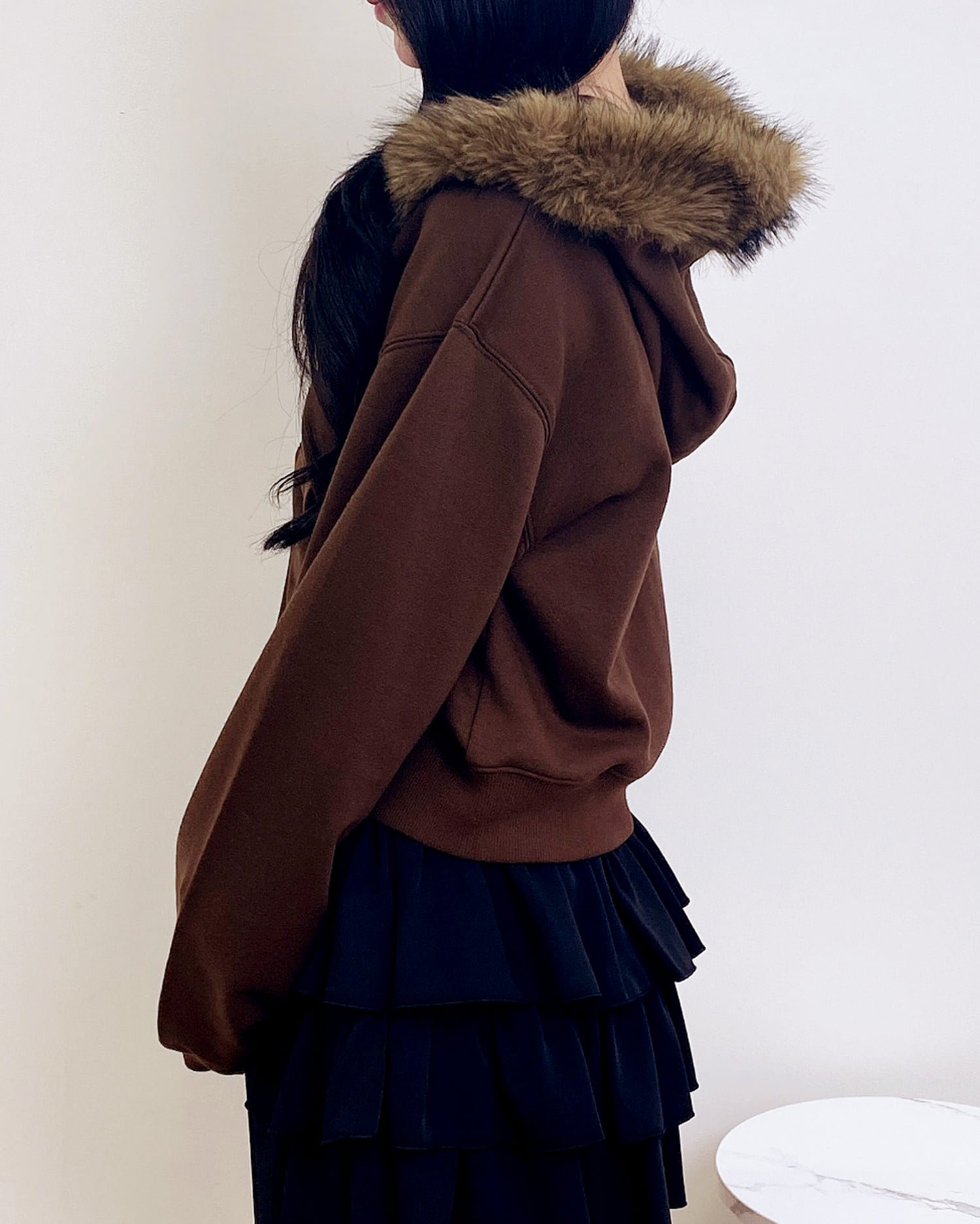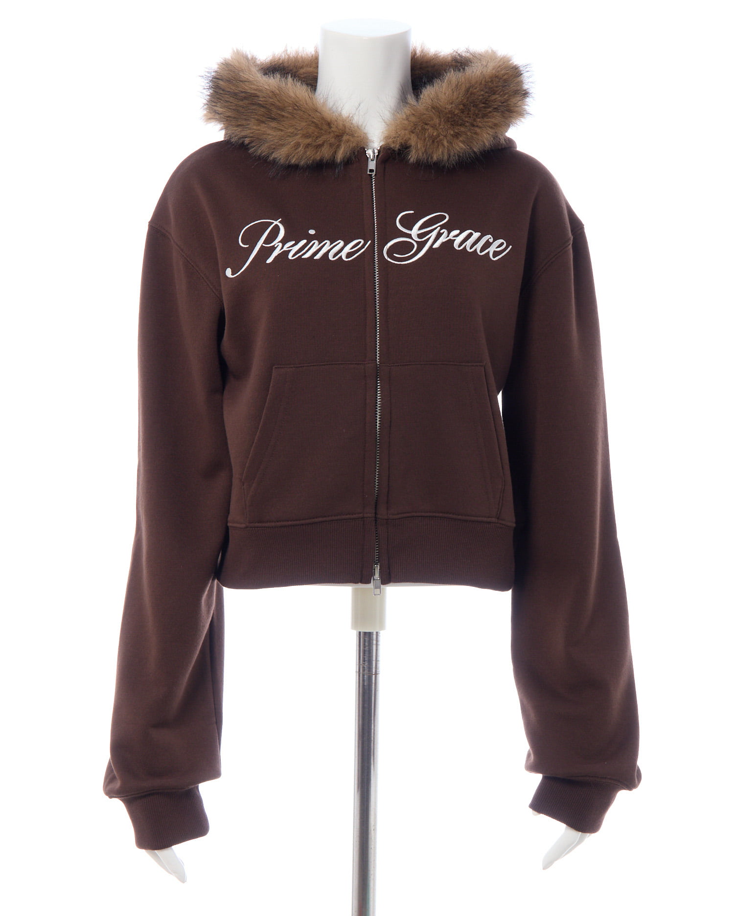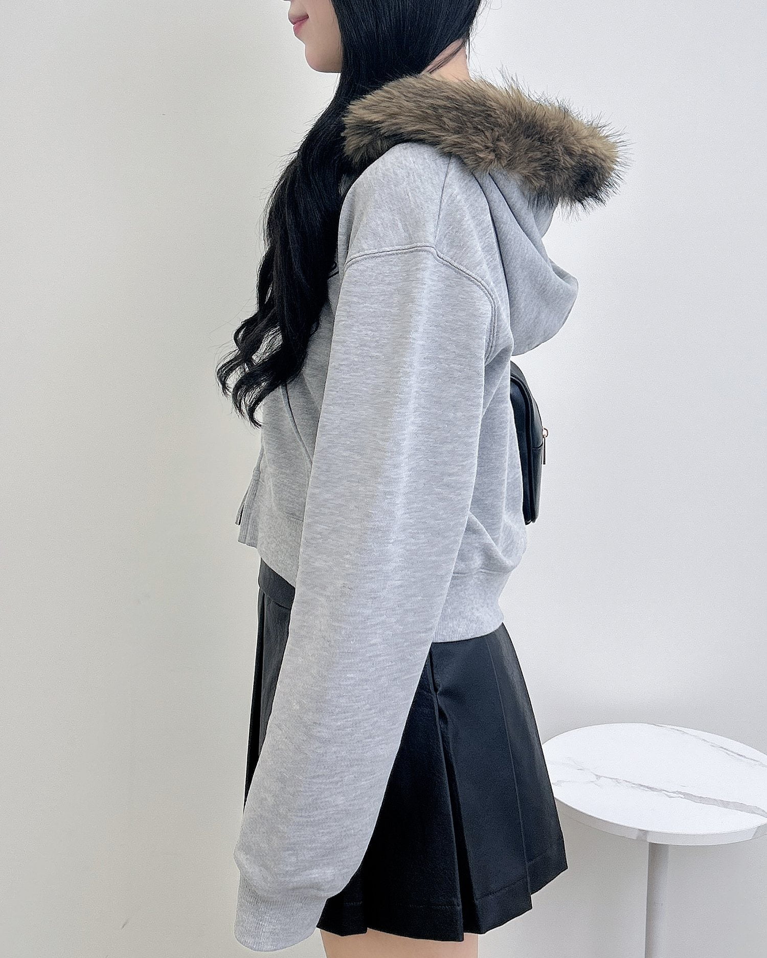 フード部分にフェイクファーをあしらって季節感をプラスしたパーカー。