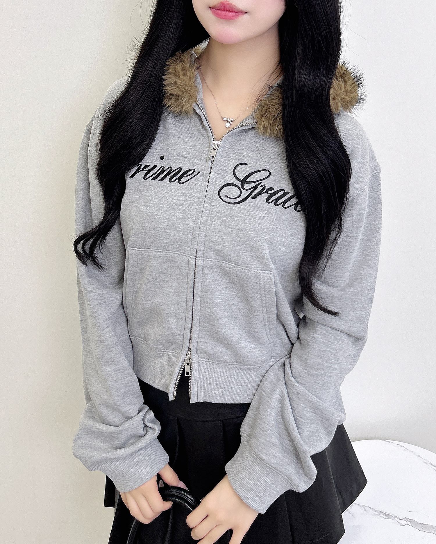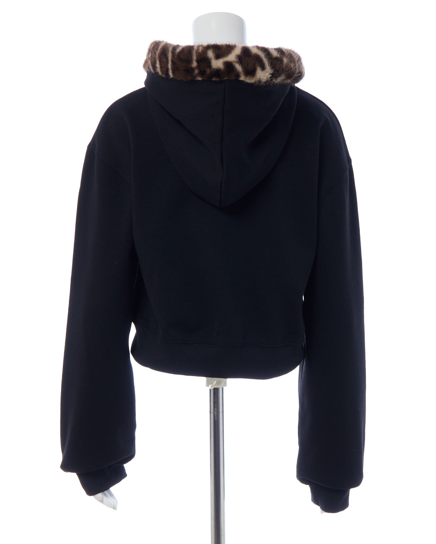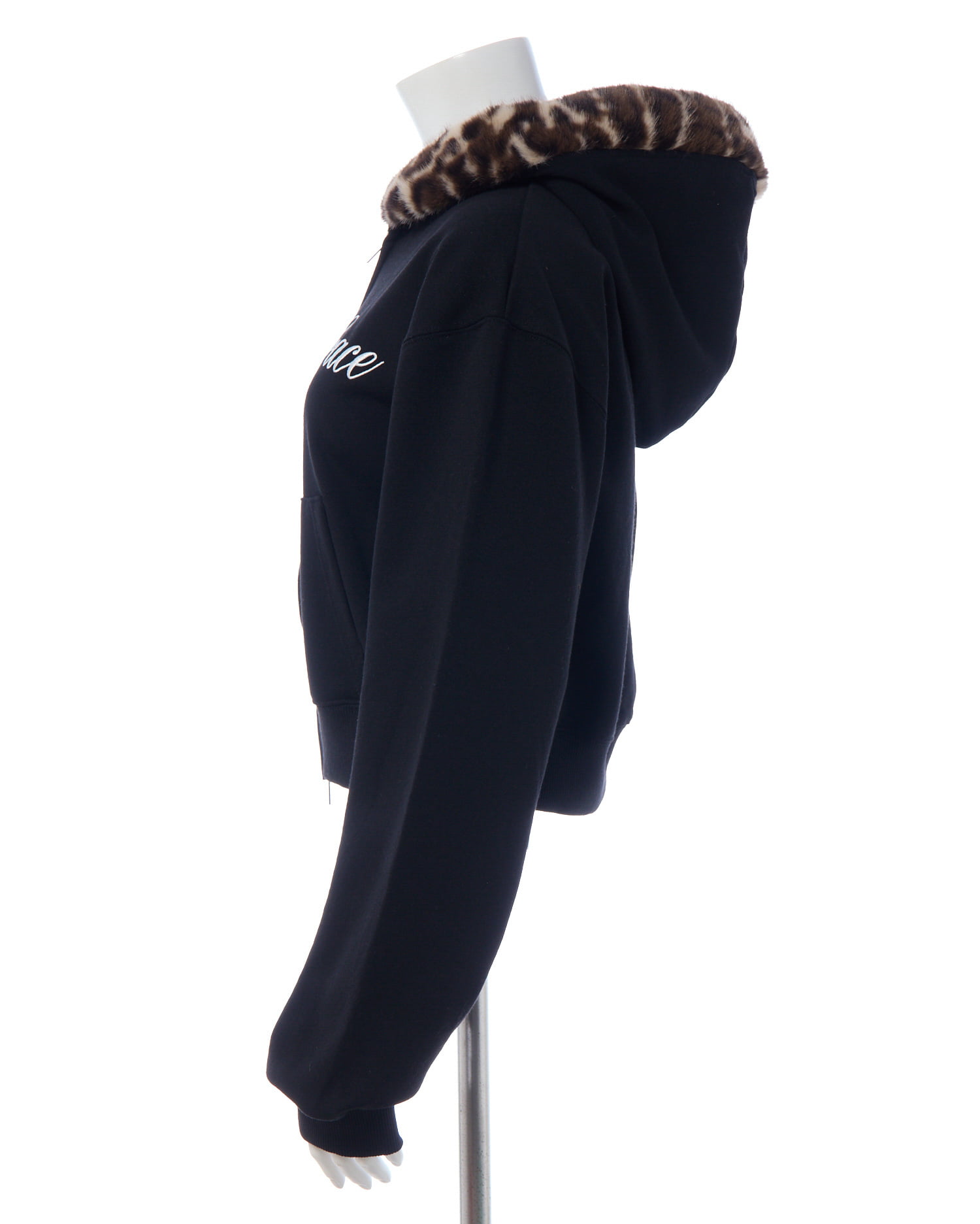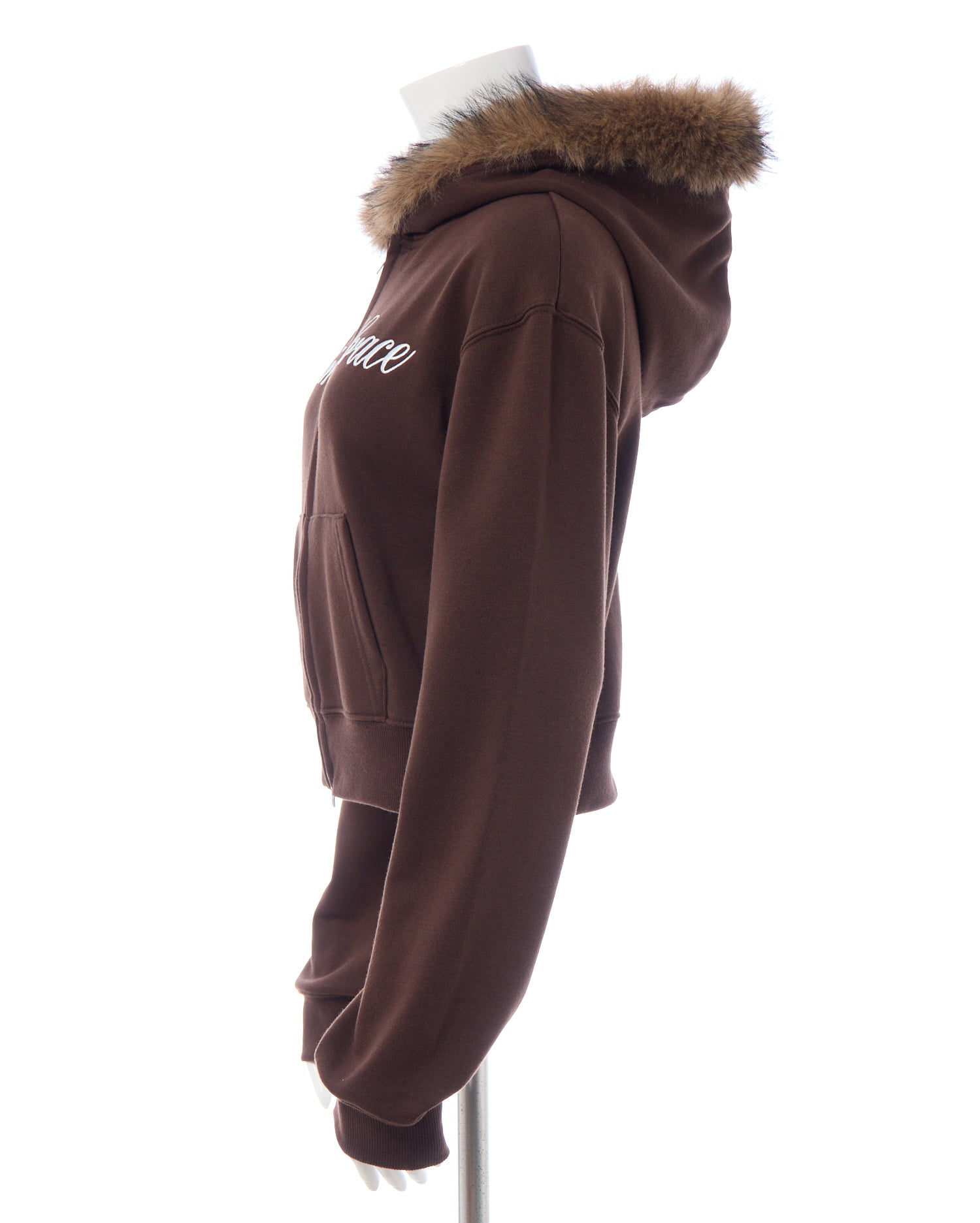 フード部分にフェイクファーをあしらって季節感をプラスしたパーカー。