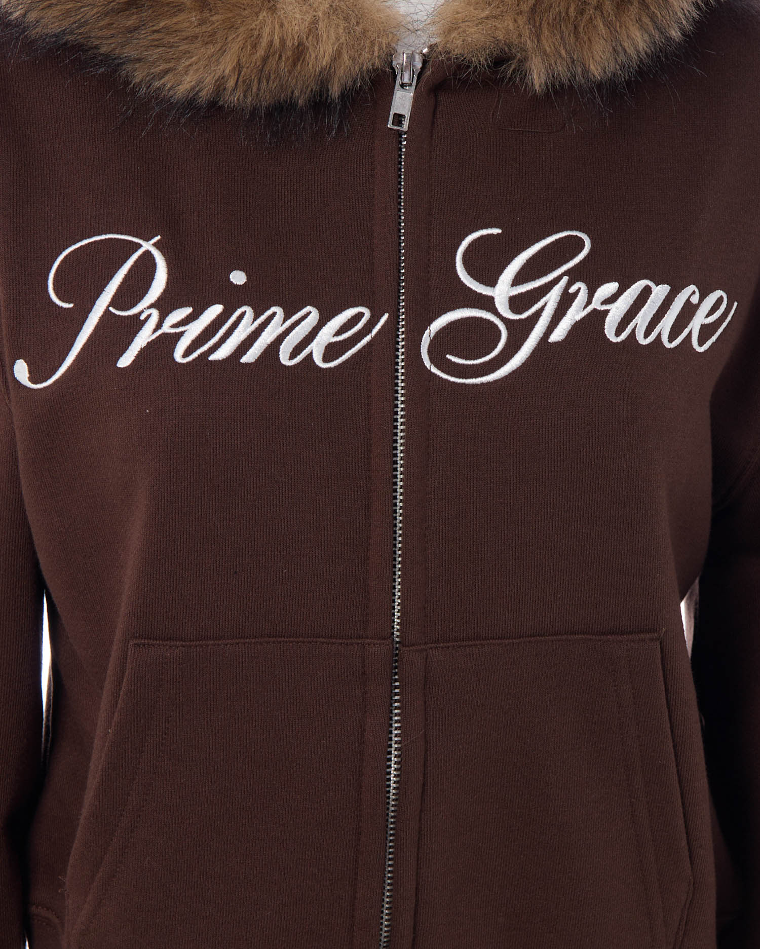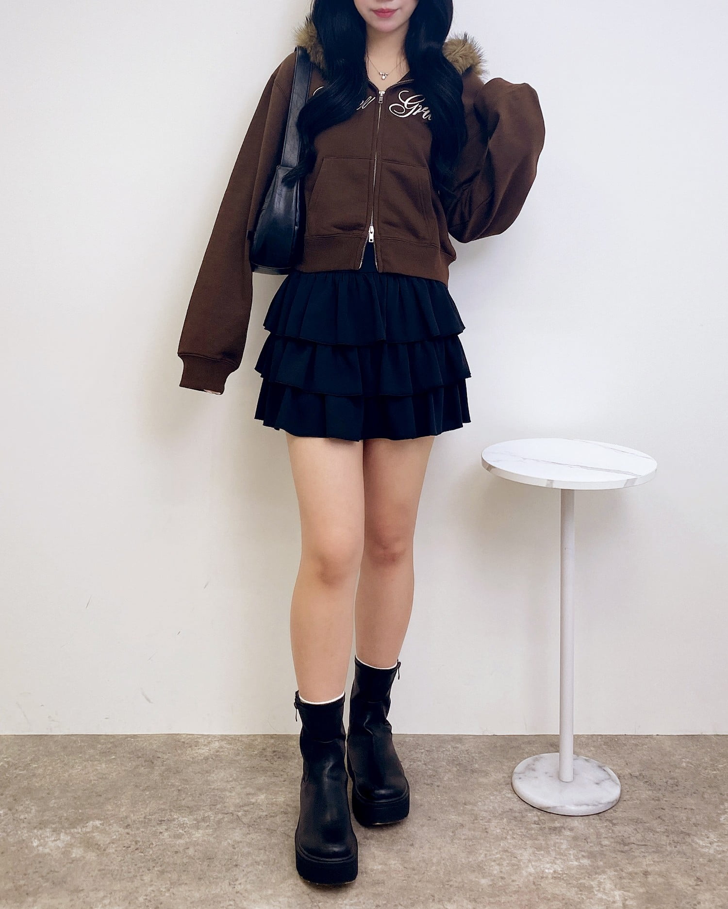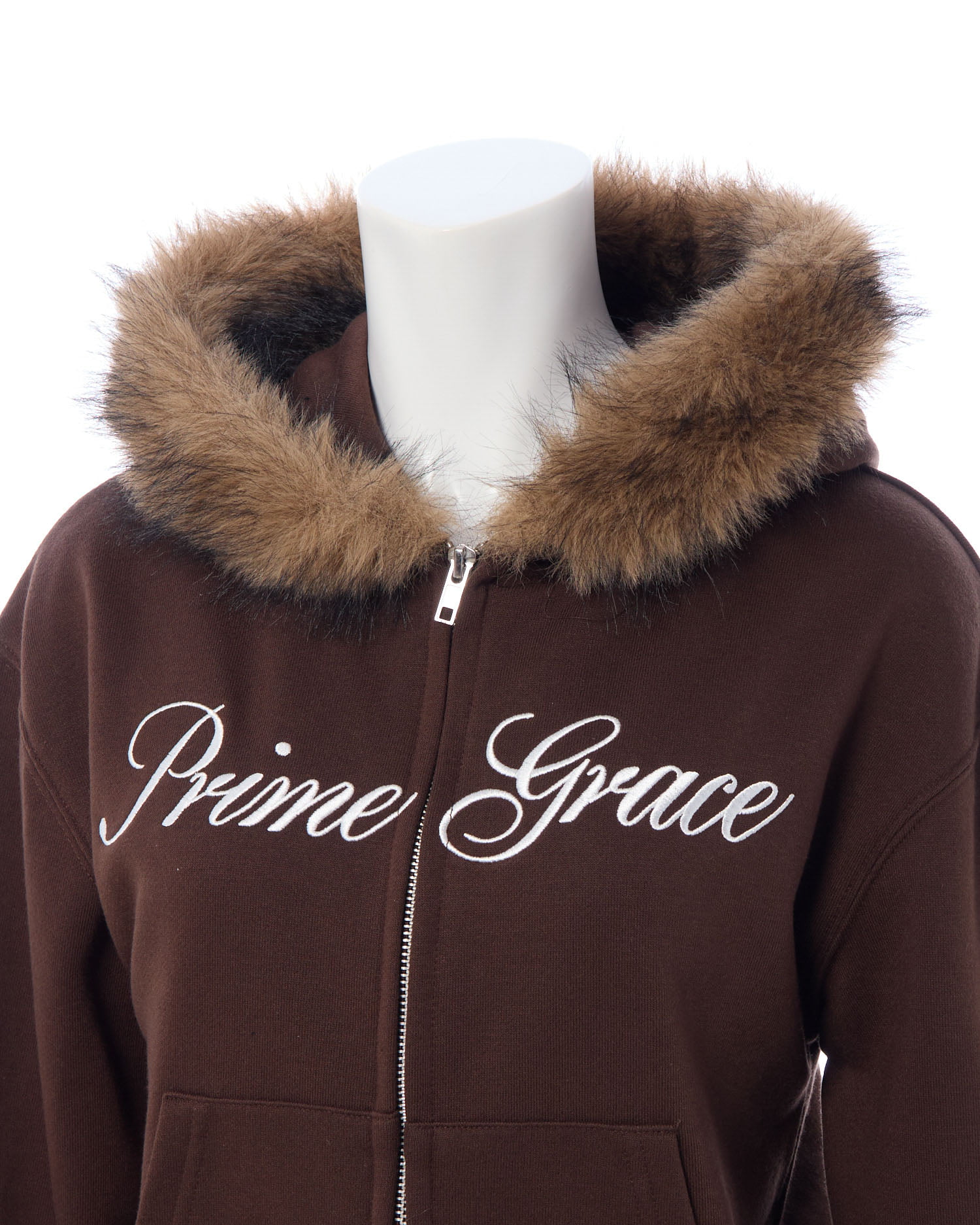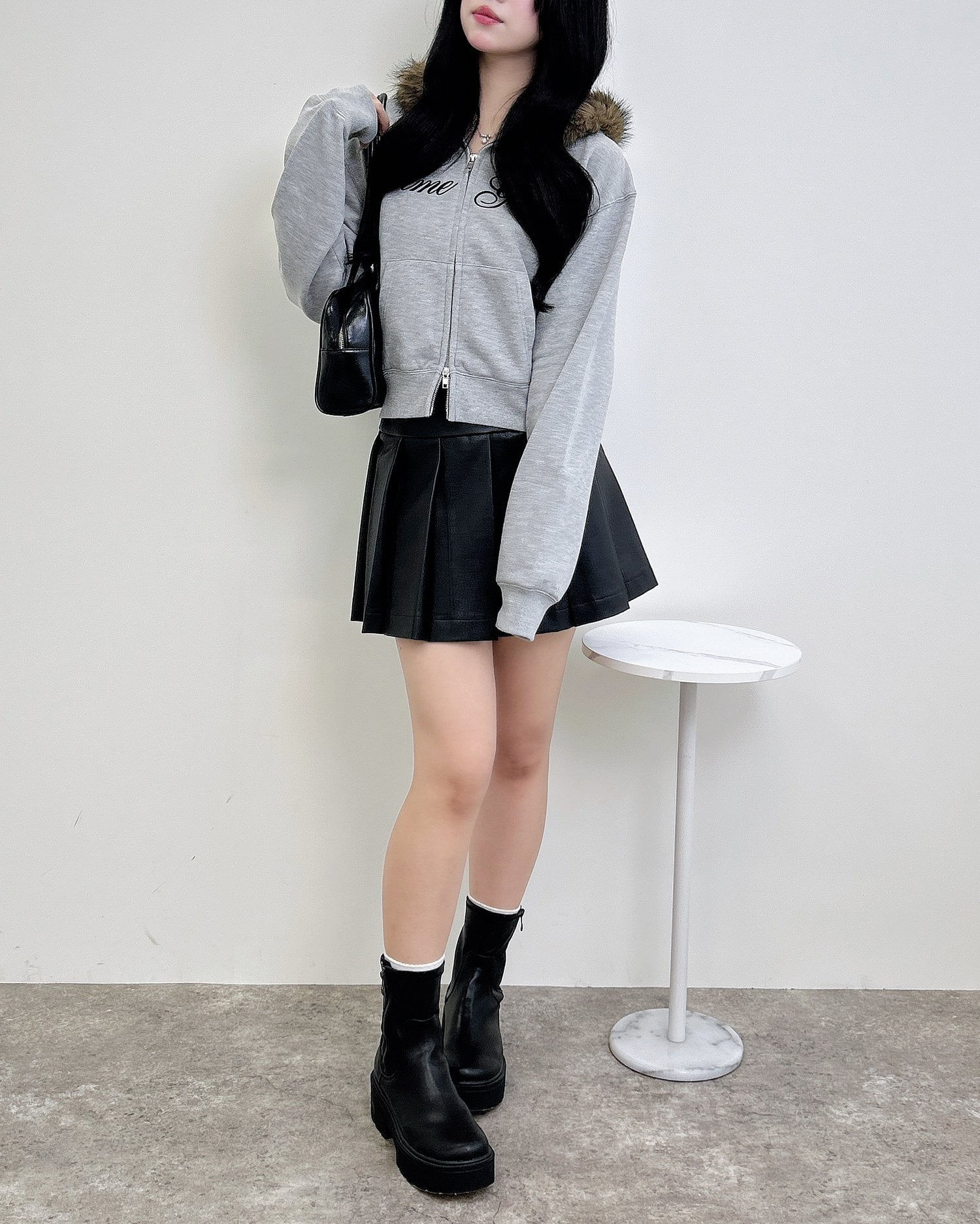 フード部分にフェイクファーをあしらって季節感をプラスしたパーカー。