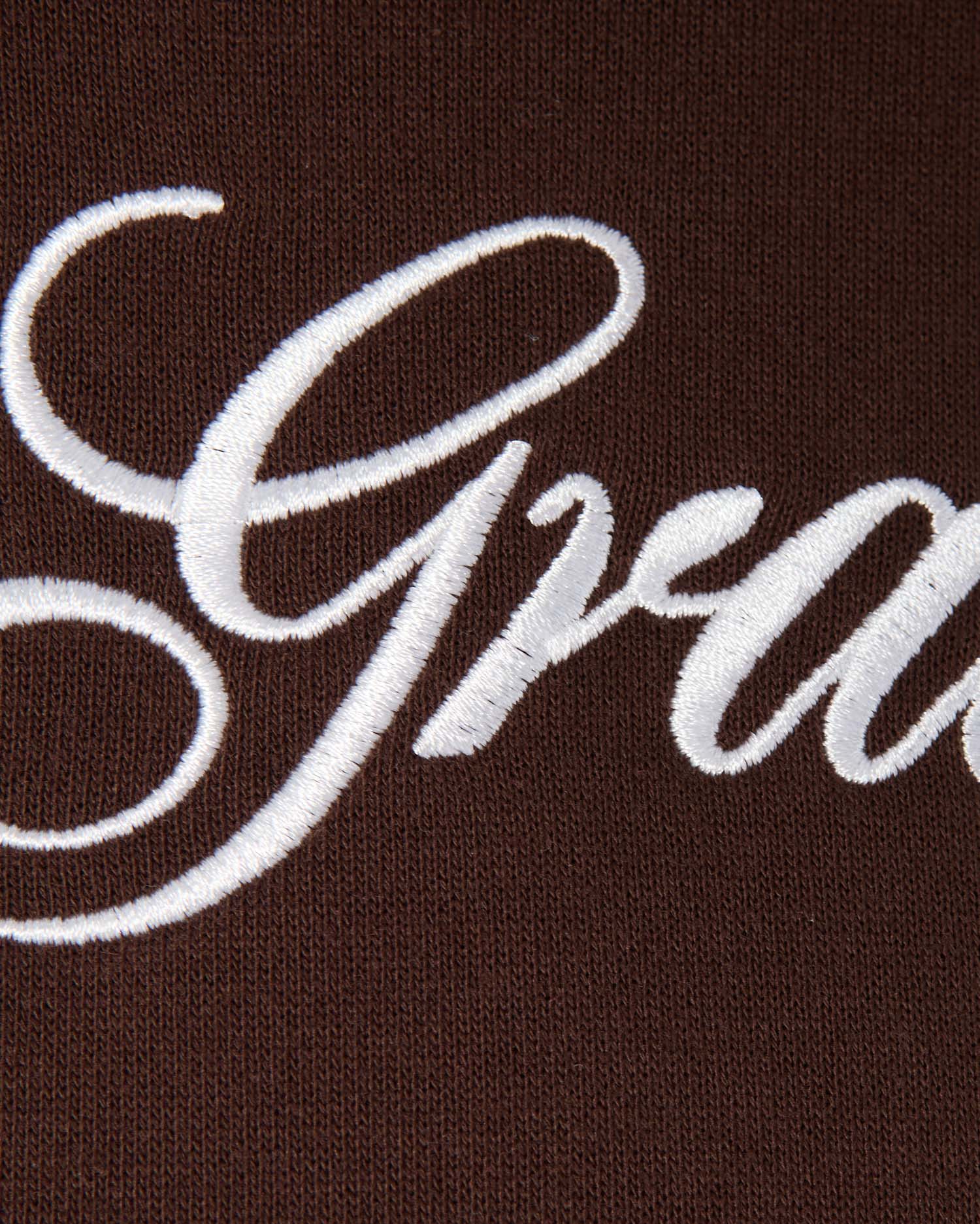 フロントの流れるような筆記体の刺繍ロゴがスタイリッシュ。