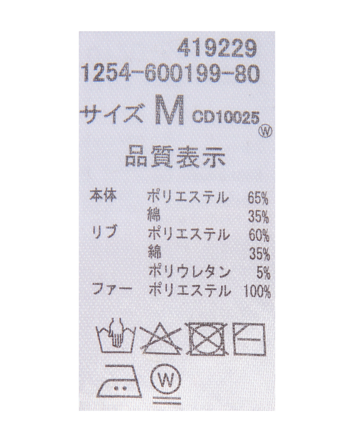原産国 中国 本体 ポリエステル65% 本体 綿35% リブ ポリエステル60% リブ 綿35% リブ ポリウレタン5% ファー ポリエステル100%