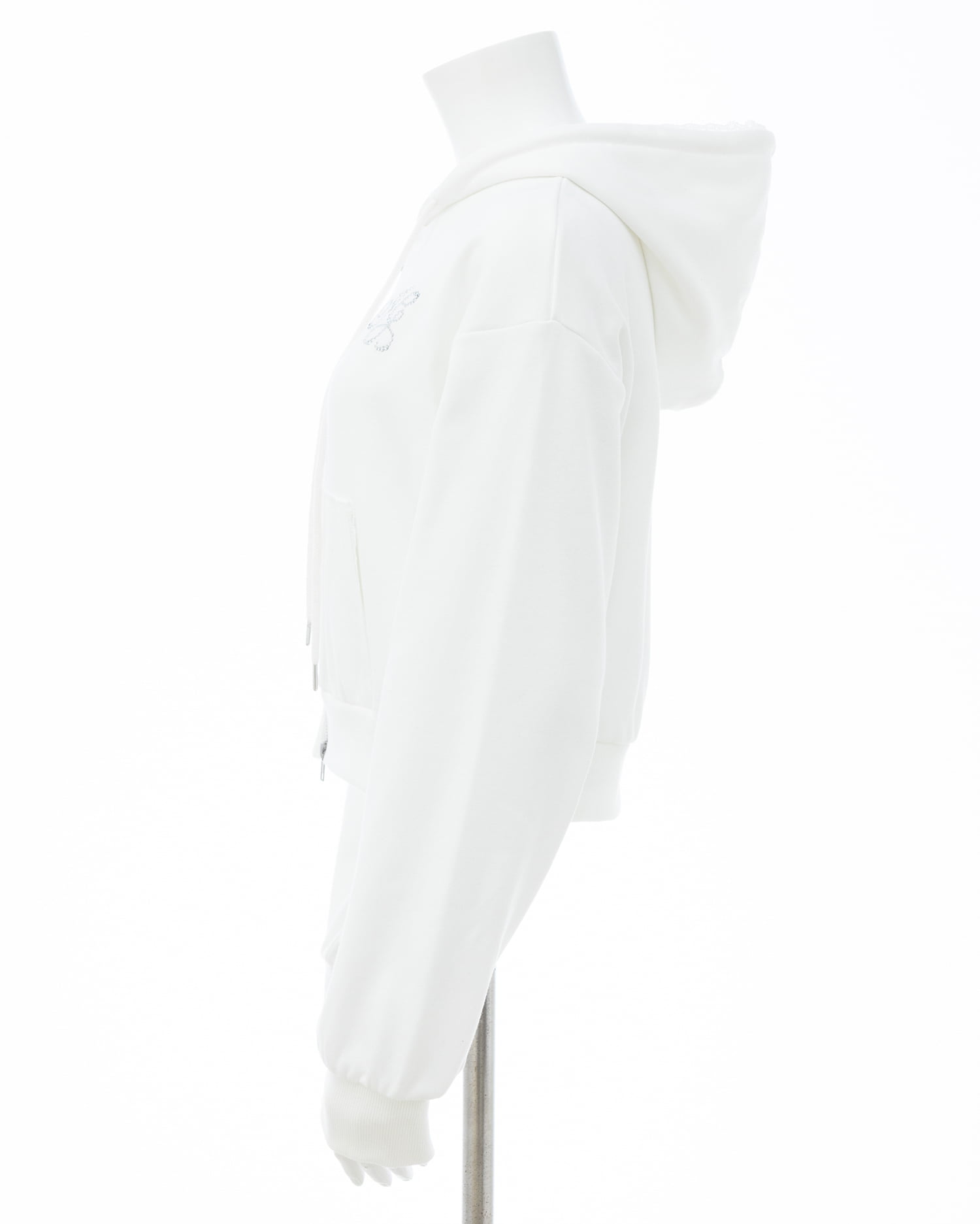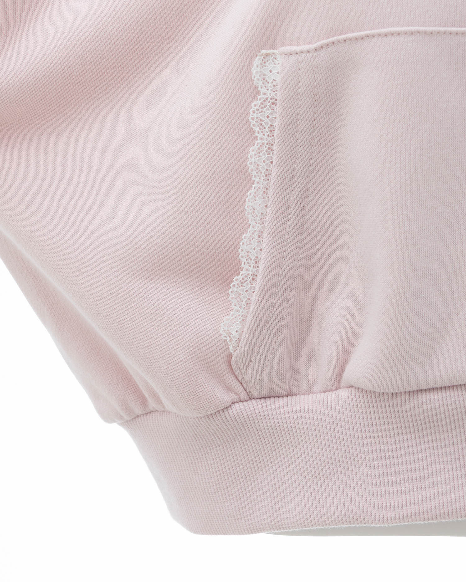 フードやポケット部分にレースをあしらって