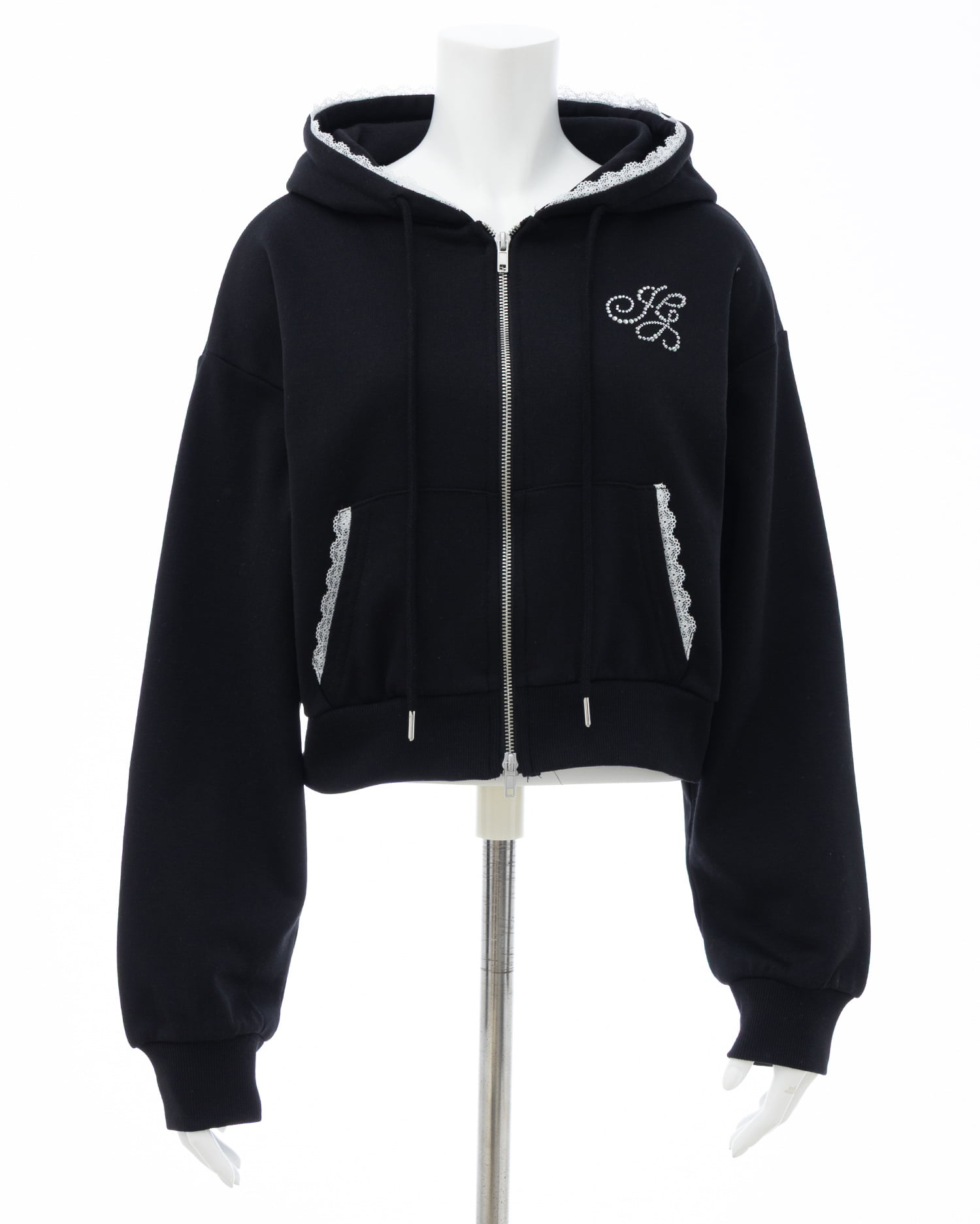 【あざとかわいい♡レースつきショートジップパーカー】