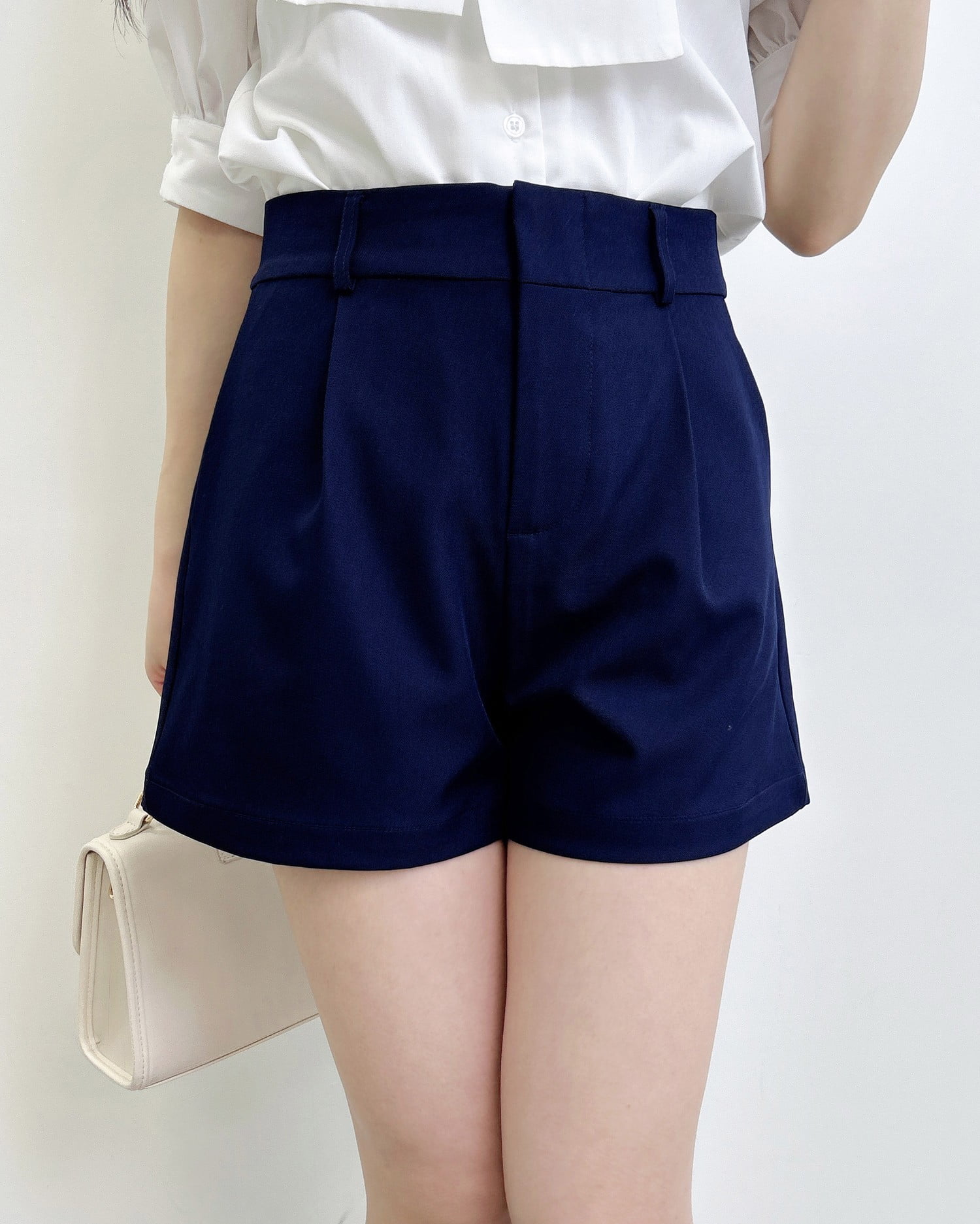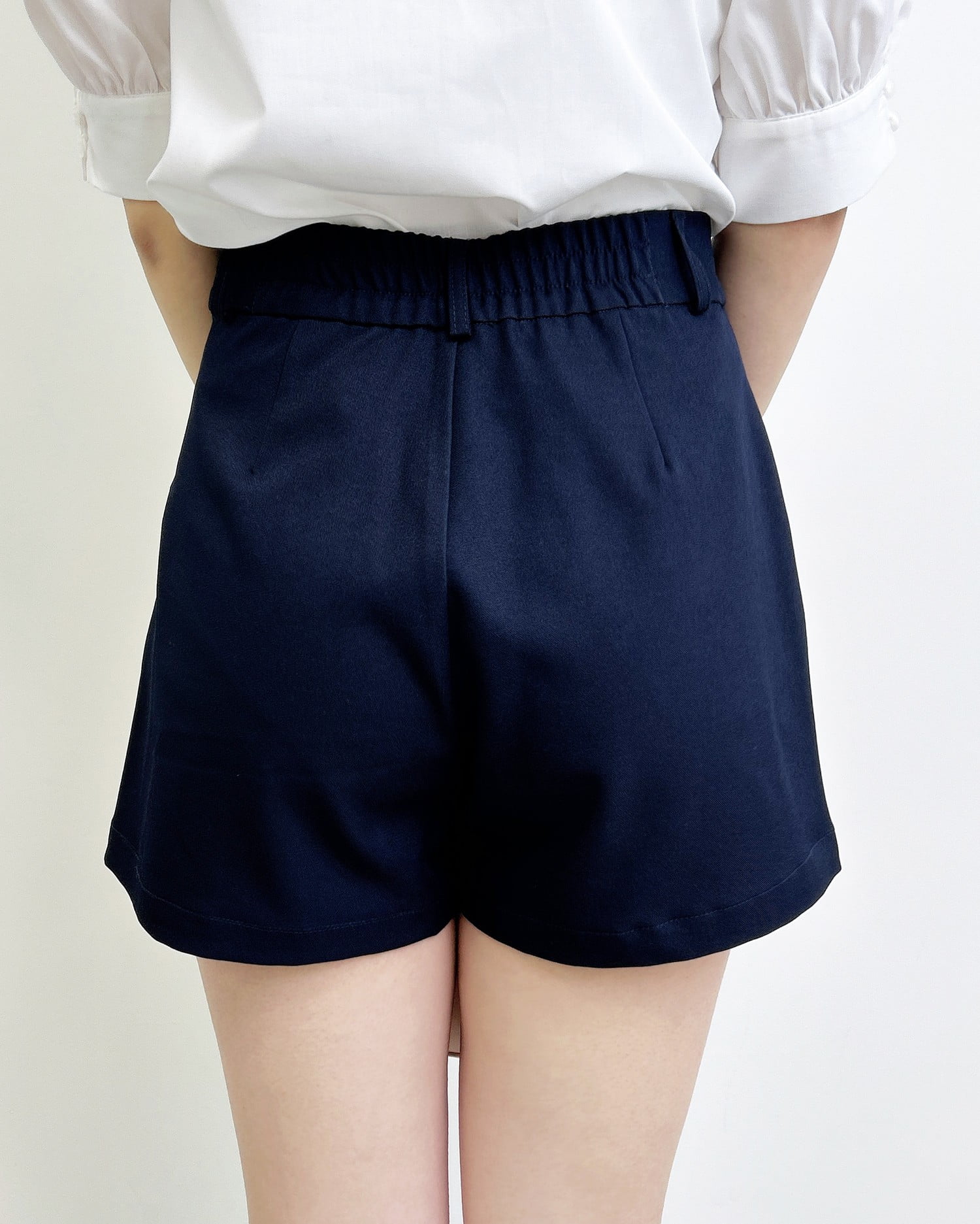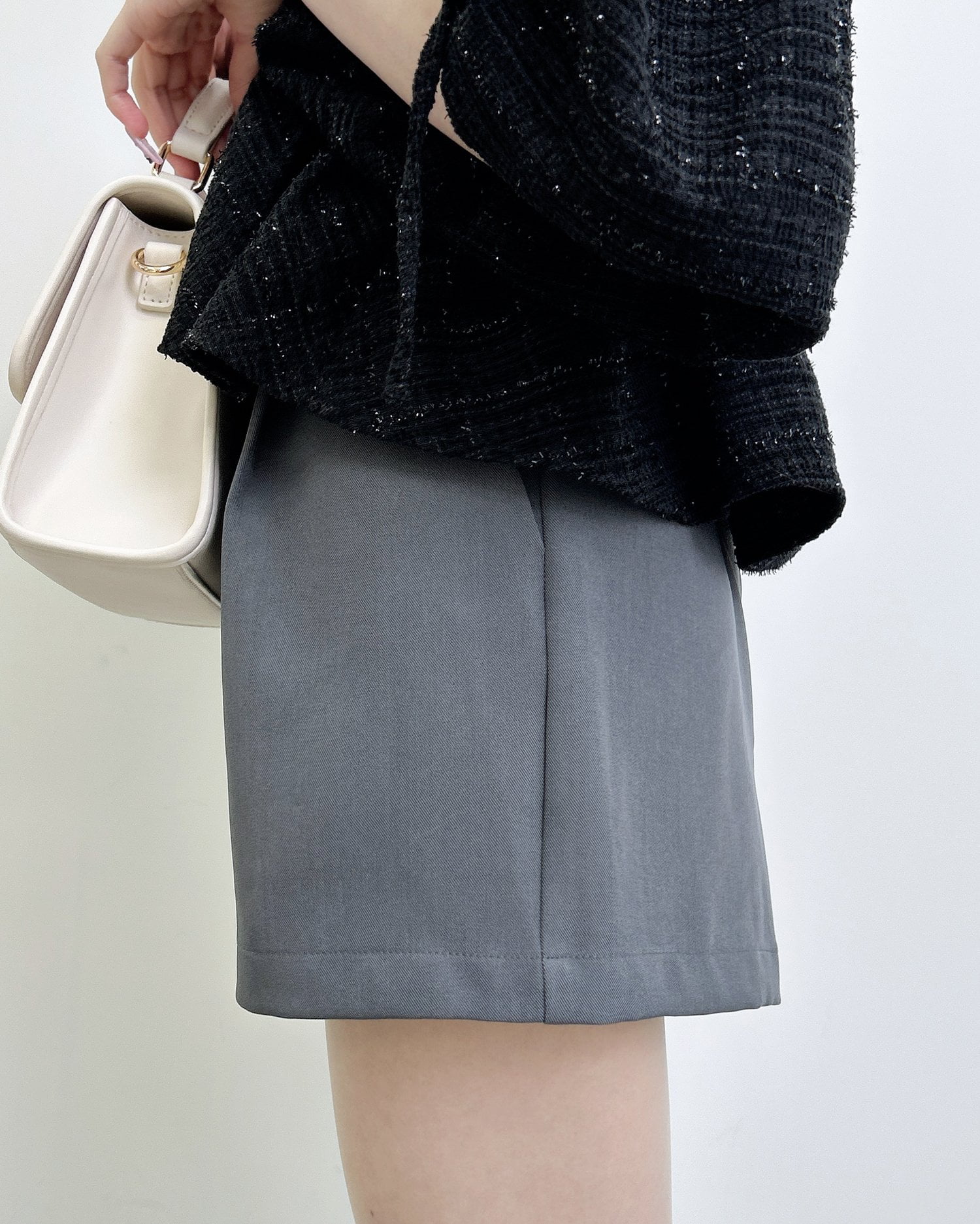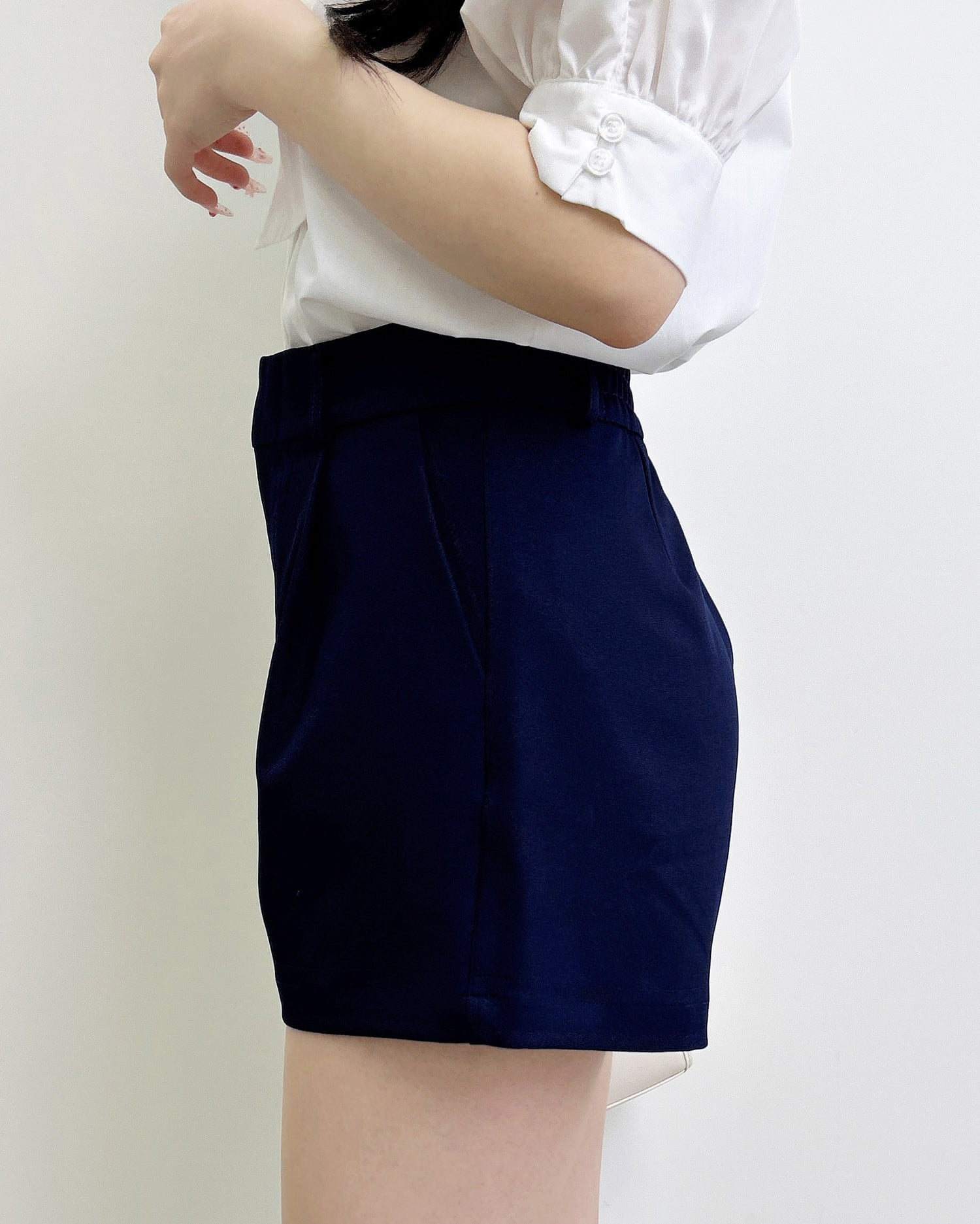大人っぽく合わせられるキレイめ素材のショートパンツ。