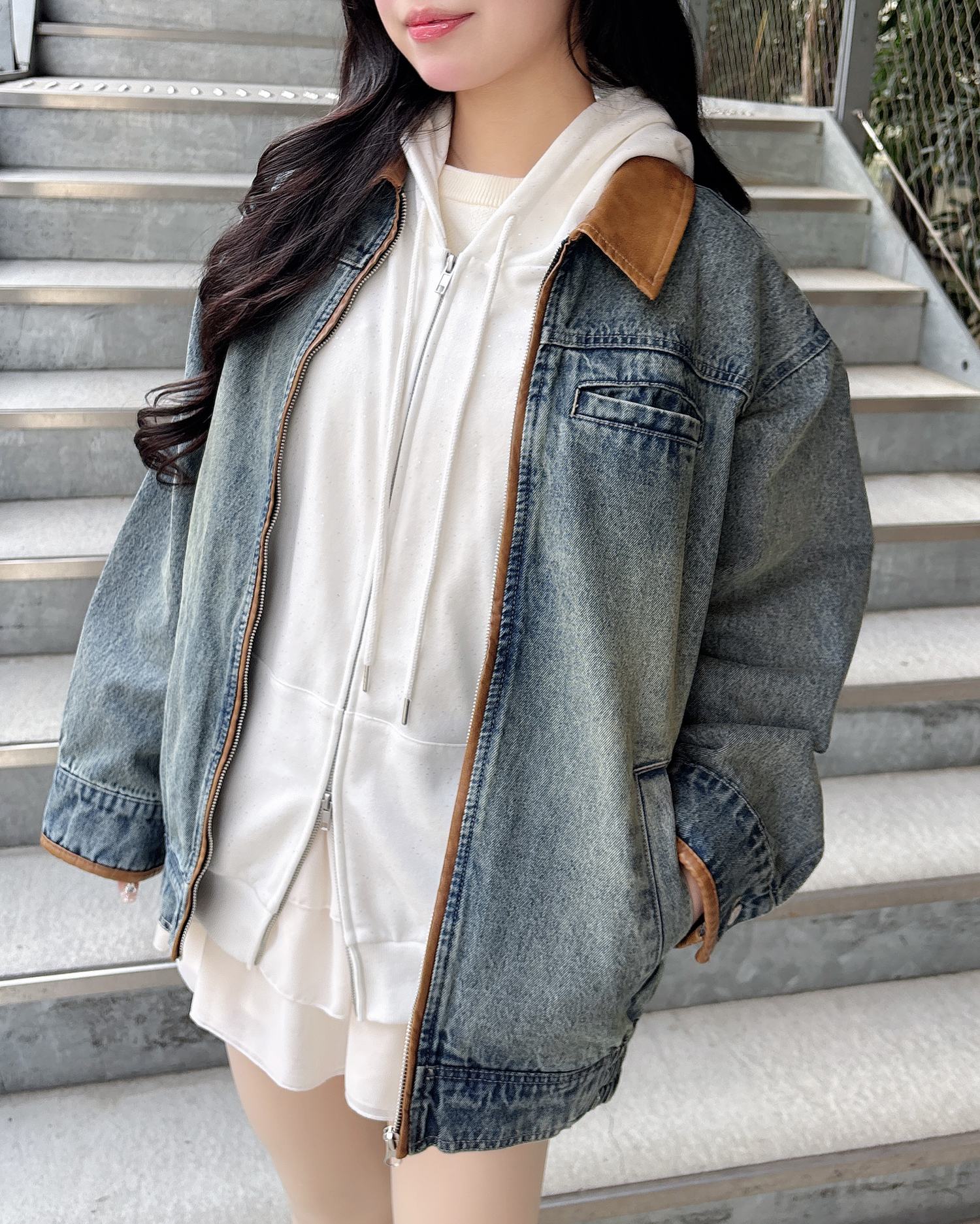 オーバーサイズなので厚手のニットやスウェットの上にも羽織れます。