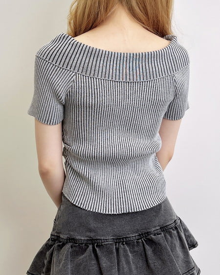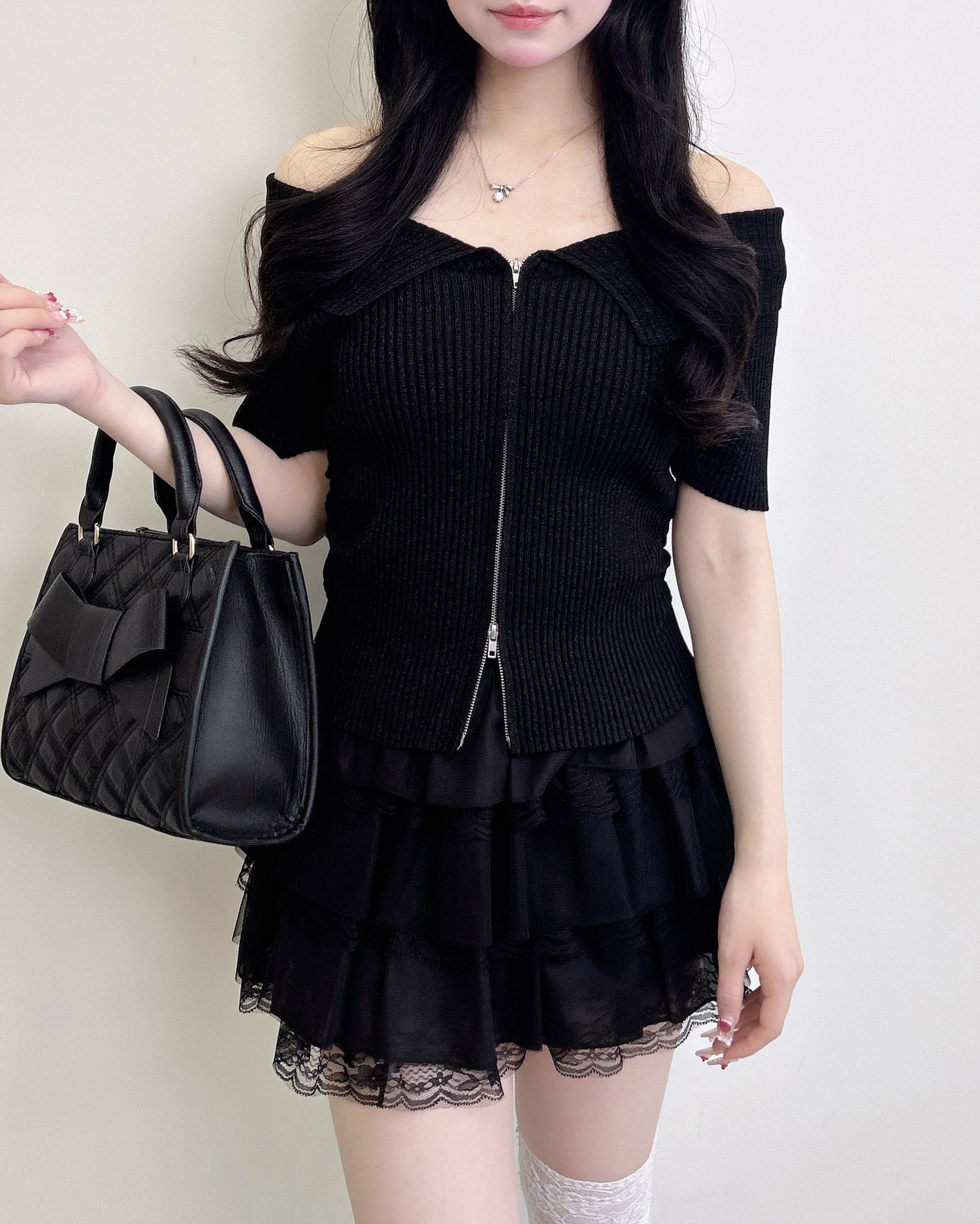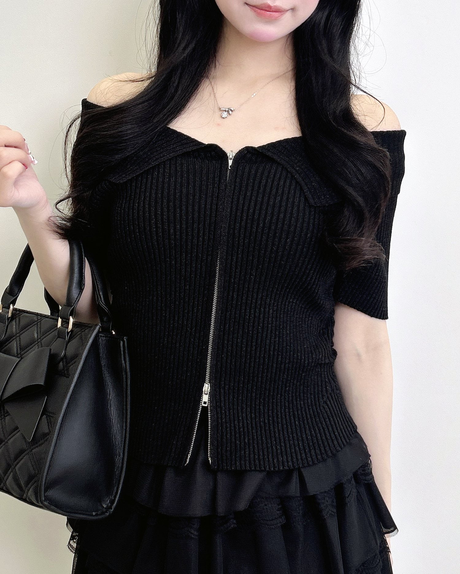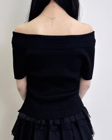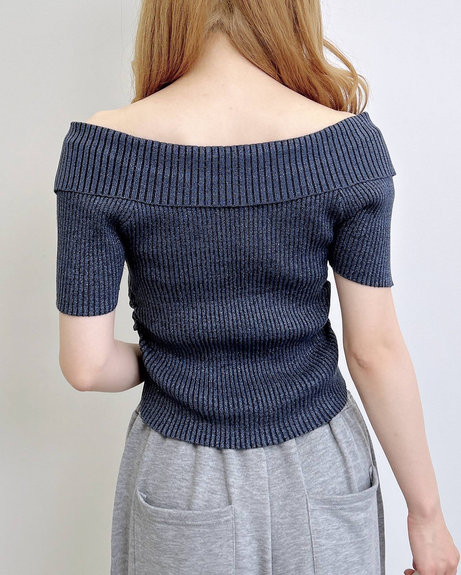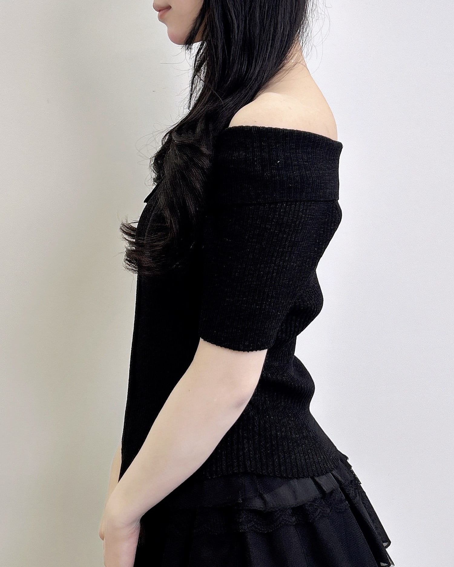 デコルテラインをキレイに見せてくれるトレンドのオフショルダーデザインです。