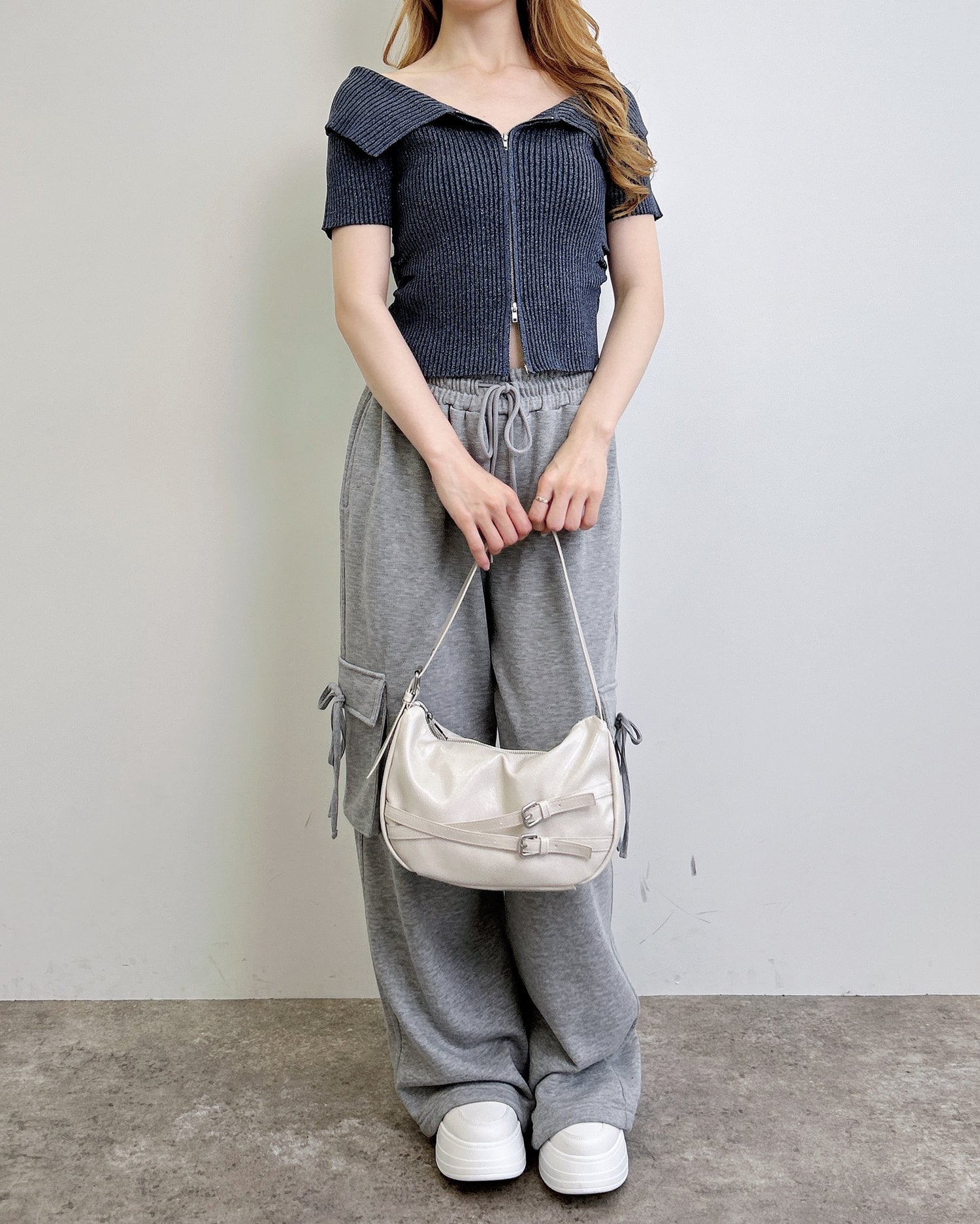 サイドにギャザーを入れることでメリハリのあるシルエットに仕上げています。