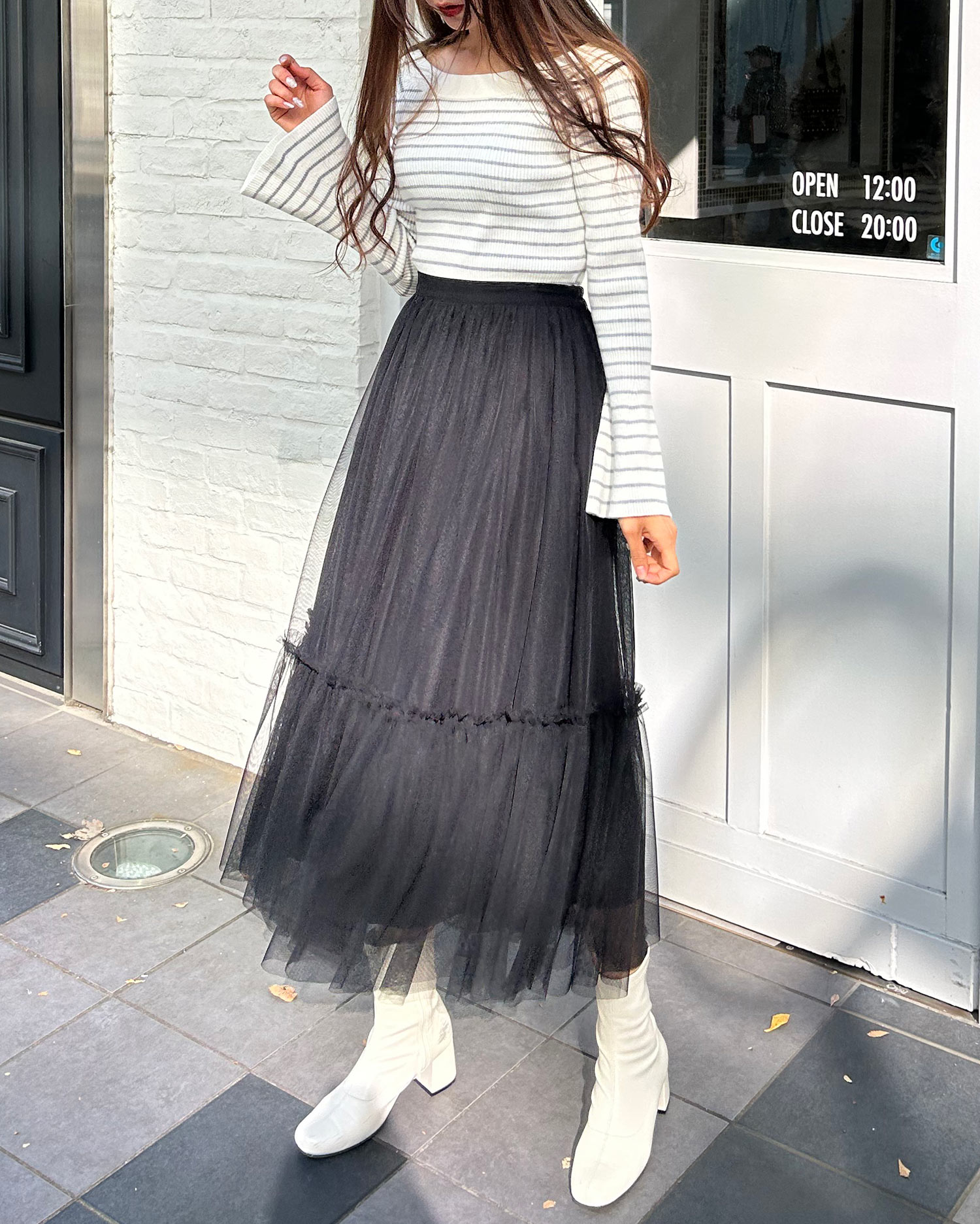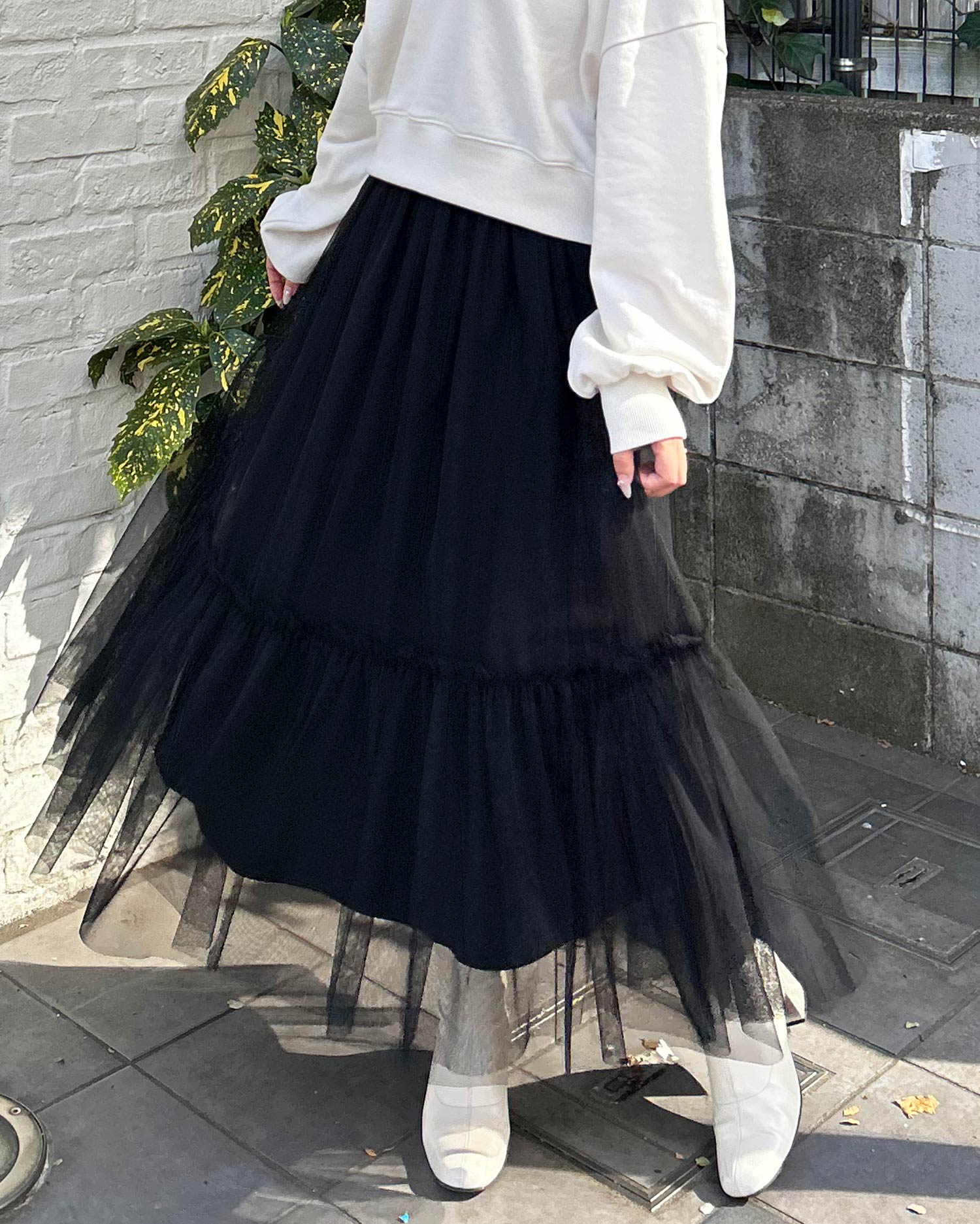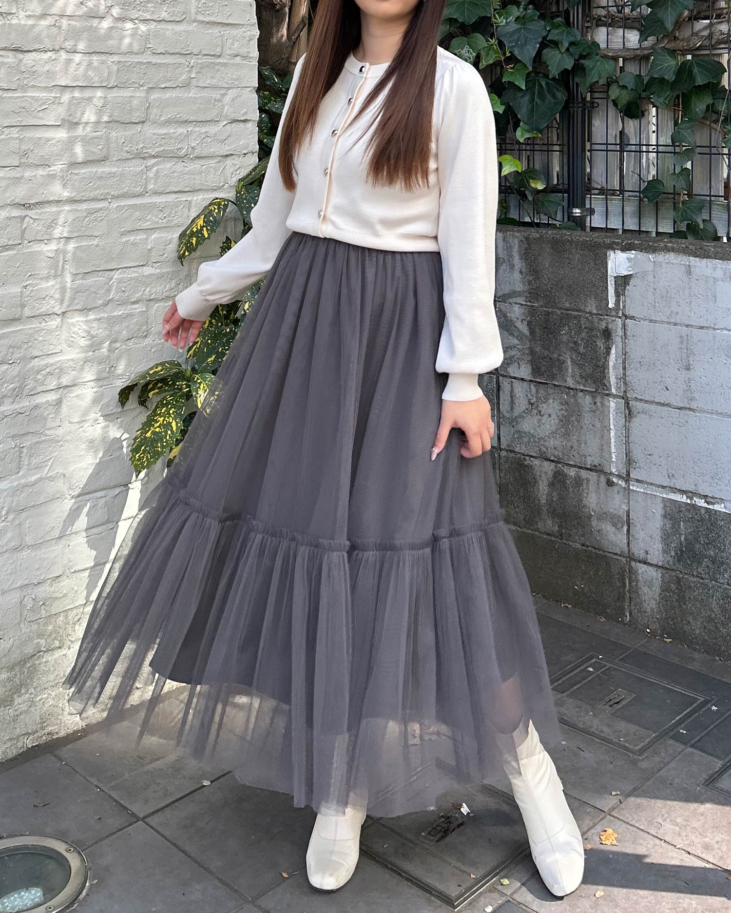 【ふんわり軽やかで愛らしい。存在感のあるフェミニンなチュールスカート】