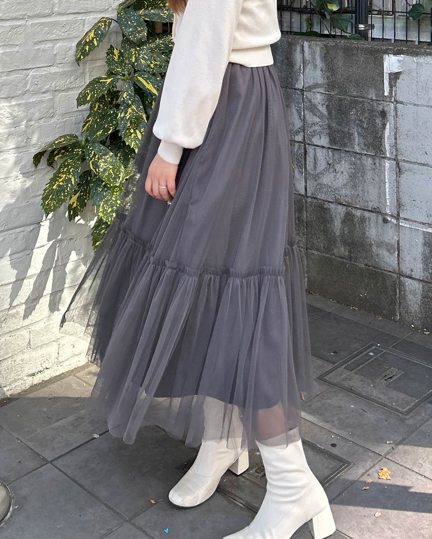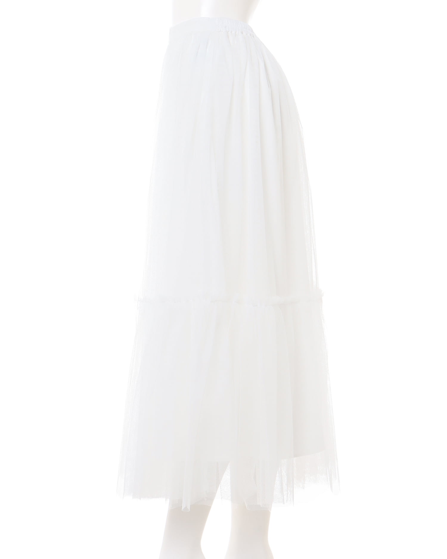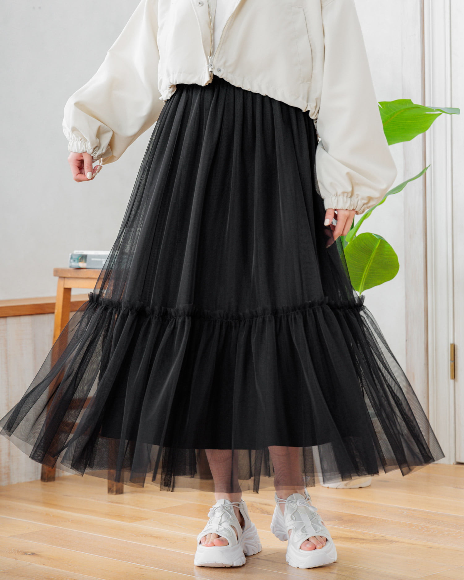 ・トレンド感のあるティアードデザインが華やかな印象の、大人かわいいチュールスカートです。