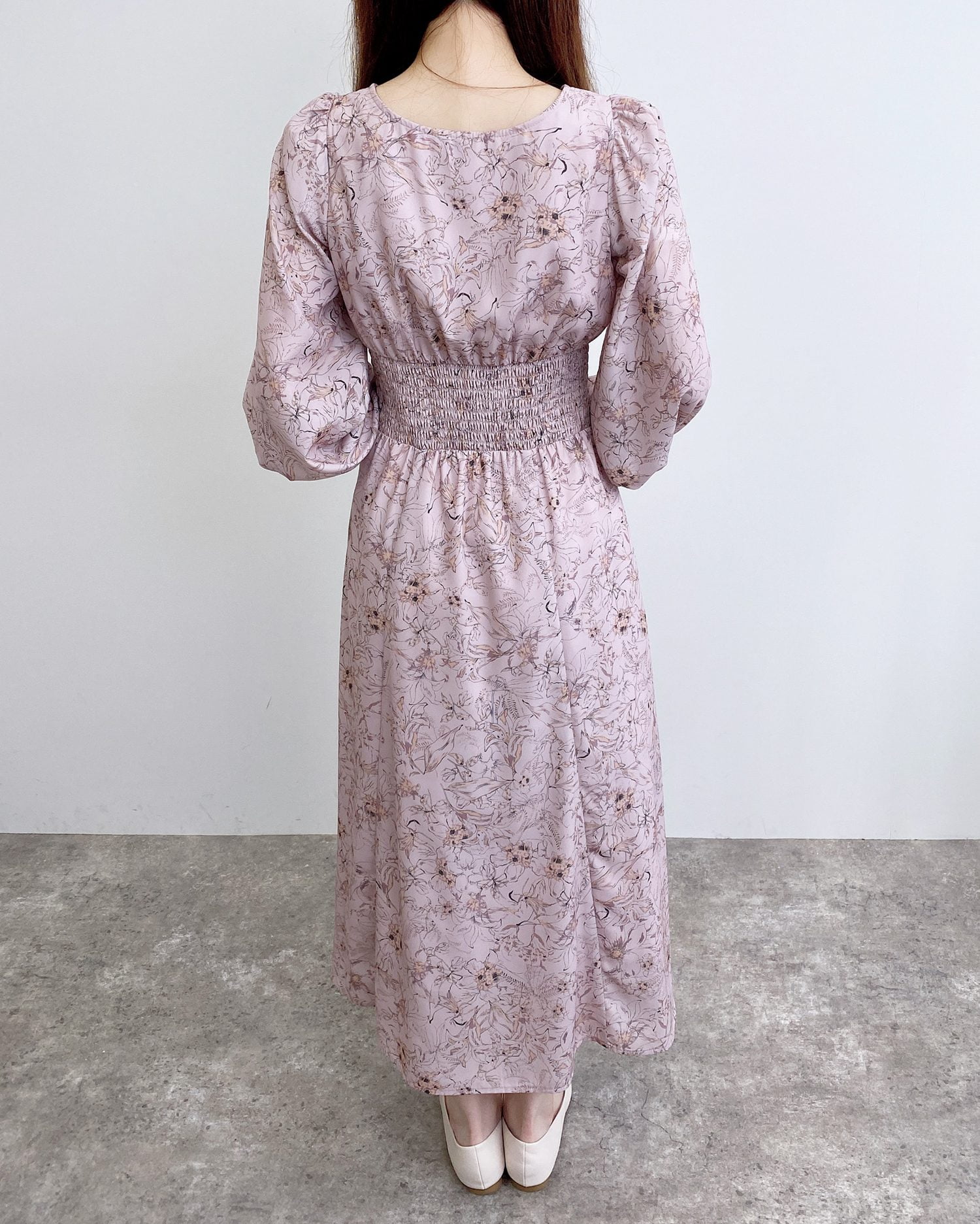 長袖にロング丈のワンピでも軽やかな生地感とウエストシャーリングで細見え間違いなし♡