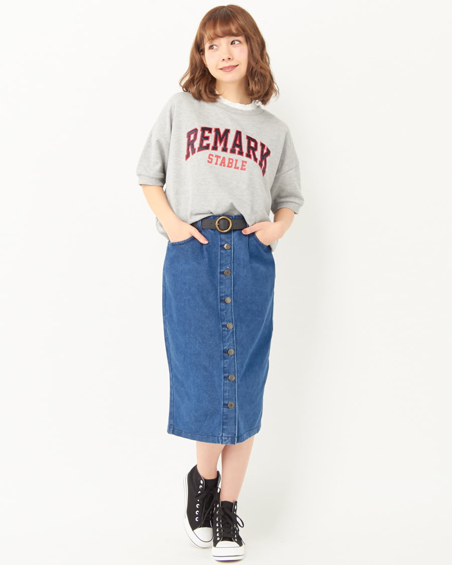 カレッジロゴ/スウェットトップスとベルト付き前ボタン/ナロースカートのSET☆