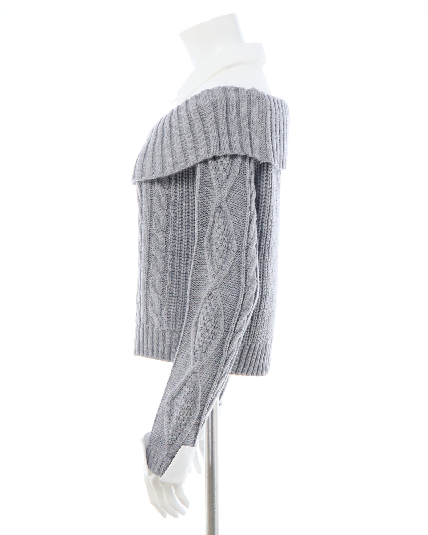 シャツレイヤード風オフショルニットからケーブル編みバージョンが登場!