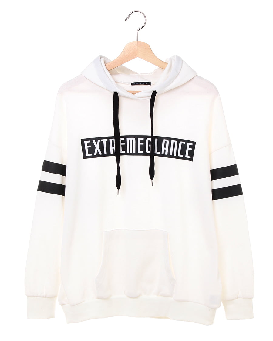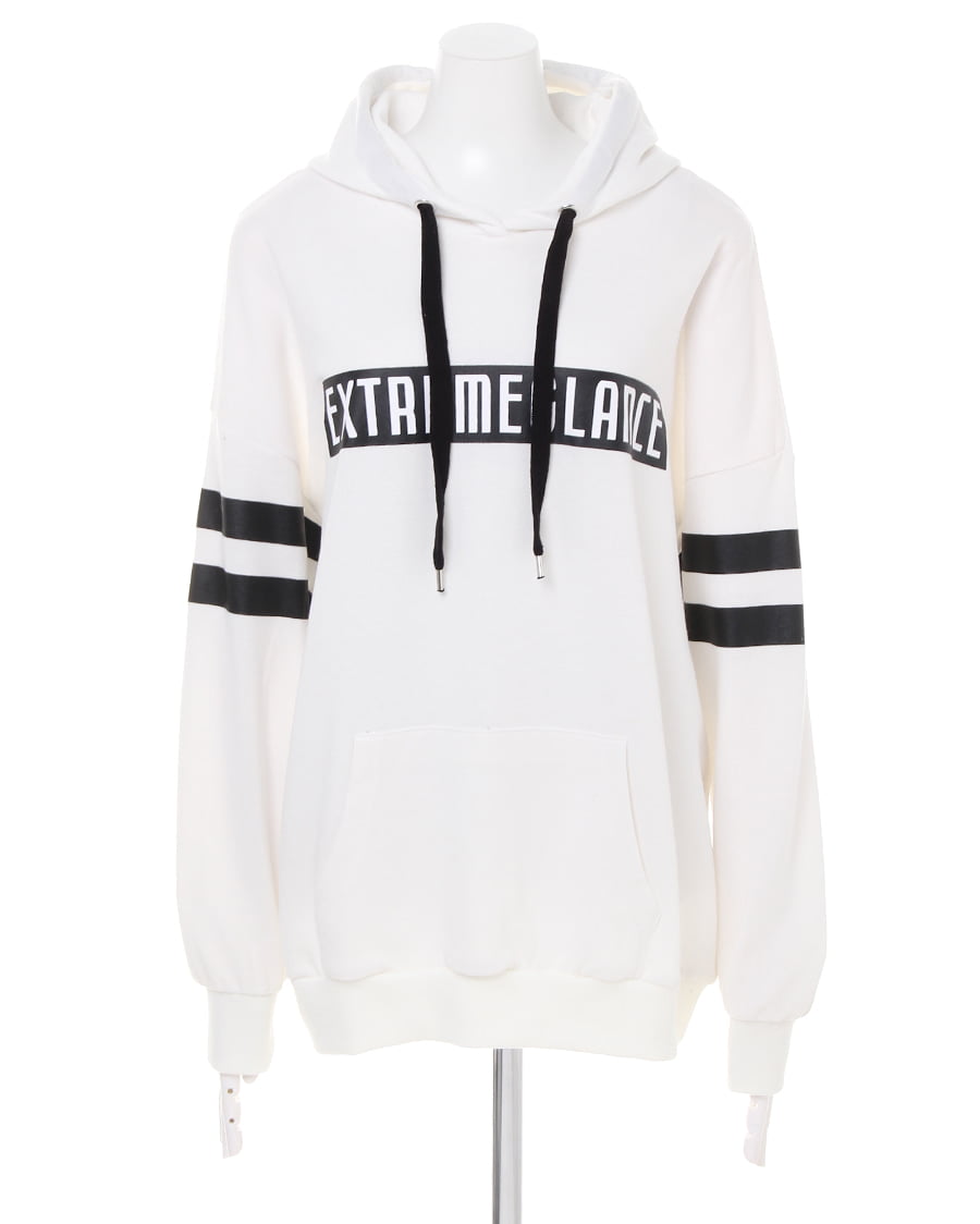 • INGNI(イング) 袖ラインボックスロゴチュニックパーカー オフホワイト/クロ