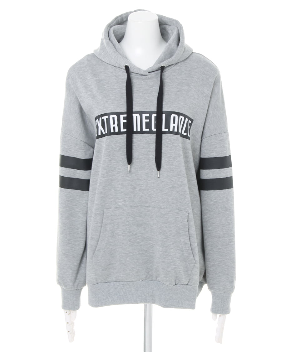袖ラインボックスロゴチュニックパーカー