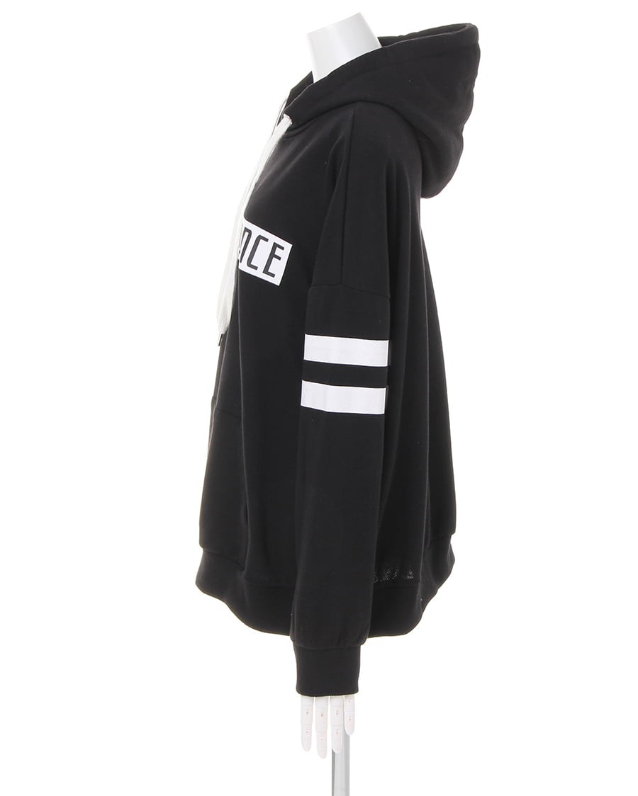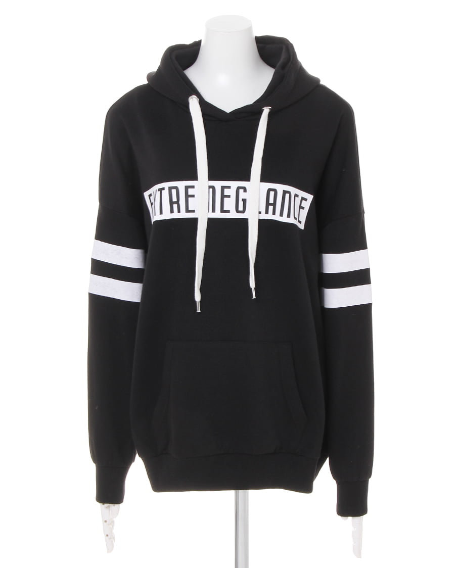 • INGNI(イング) 袖ラインボックスロゴチュニックパーカー クロ/オフホワイト