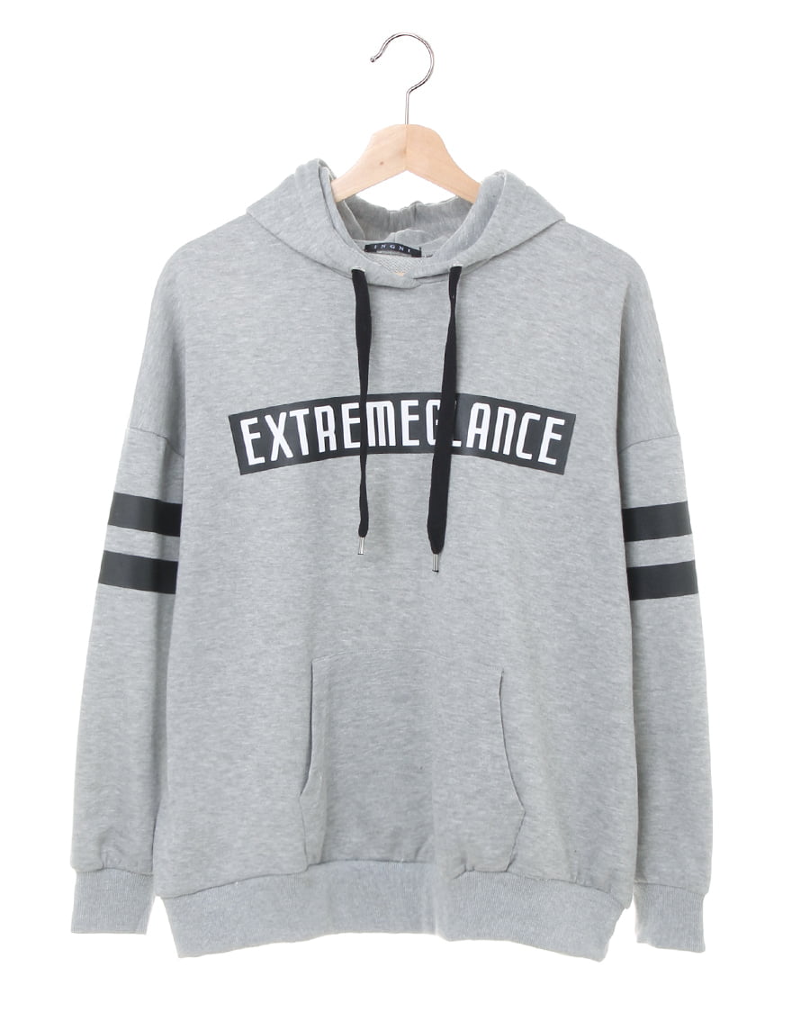• INGNI(イング) 袖ラインボックスロゴチュニックパーカー グレー/クロ