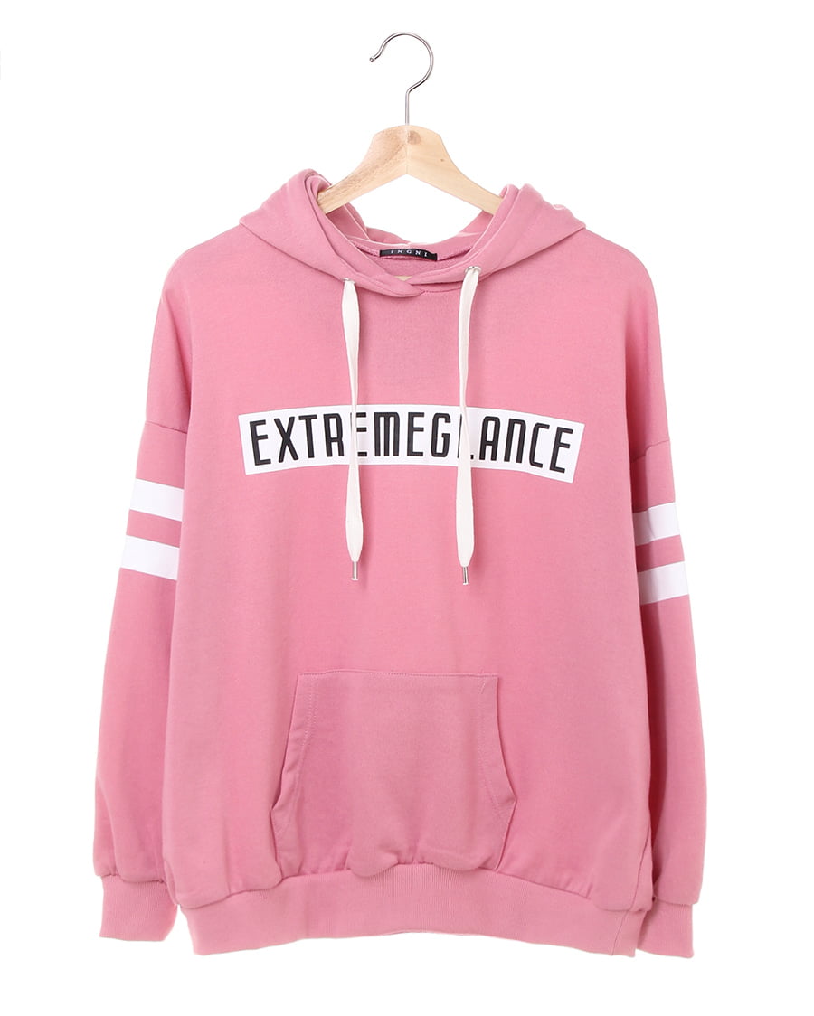 • INGNI(イング) 袖ラインボックスロゴチュニックパーカー コーラルピンク