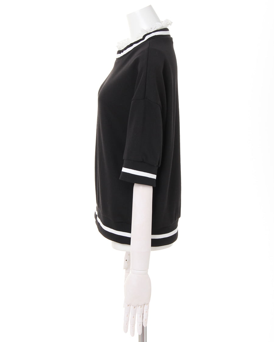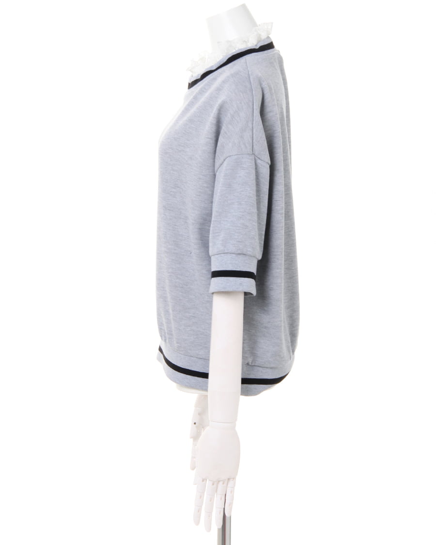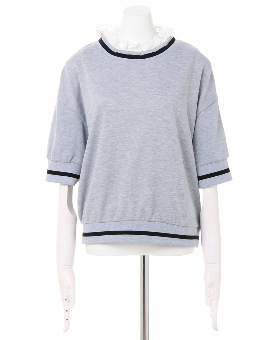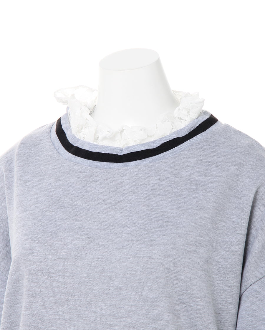 着るだけで旬のレイヤード風スタイルが決まる優秀トップス。繊細なレースとスウェット生地の異素材ミックスがこなれ感を演出。柔らかくて伸縮性のあるスウェット素材はリラクシーな着心地を実現。ボディラインをゆったりと包み込むシルエットが自然な体型カバーも叶えます。首元や袖、裾のラインにも注目。人気のスポーティ感のあるスタイルにもおすすめです。