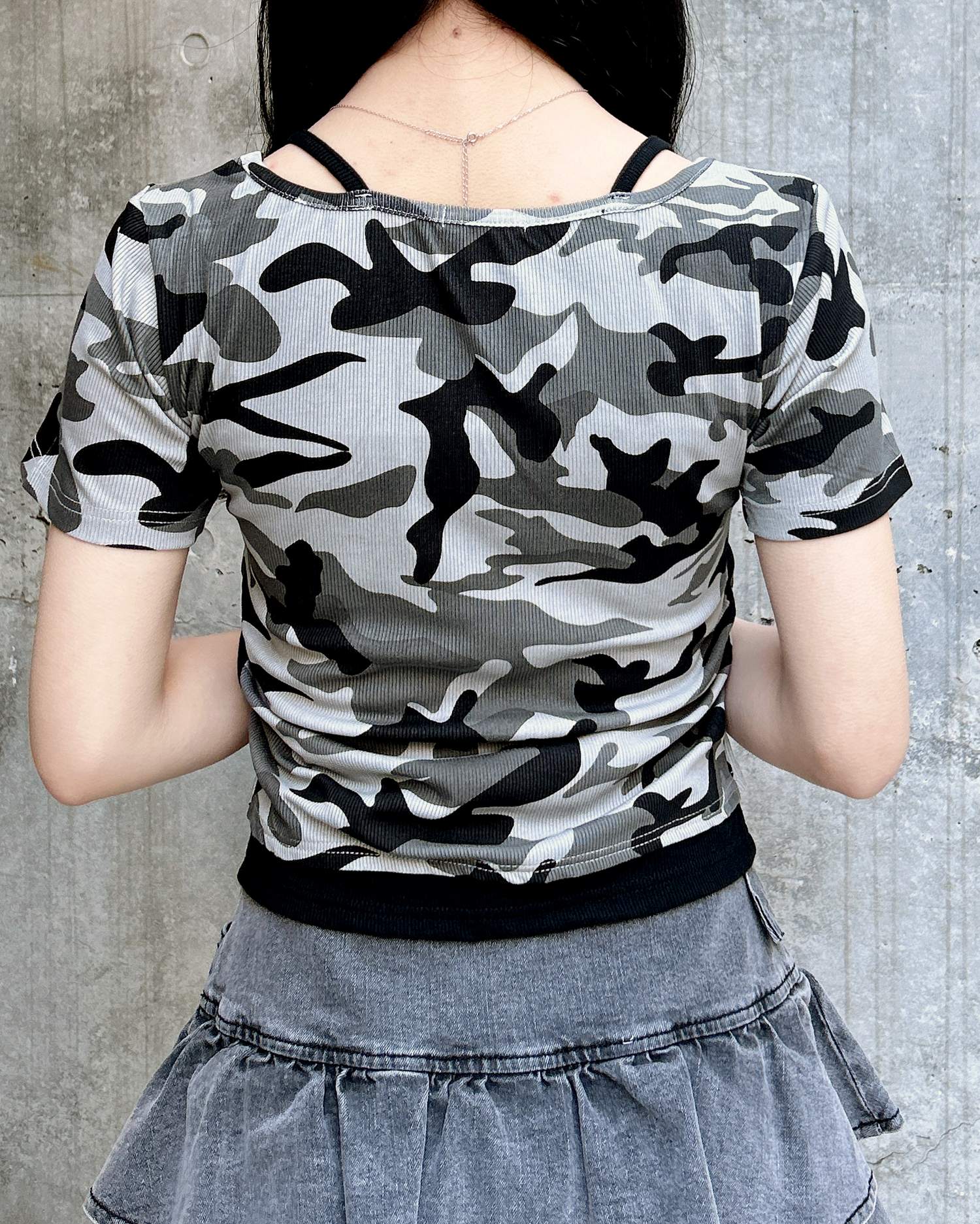 キャミソールとTシャツを重ねたかのようなドッキングデザインが◎