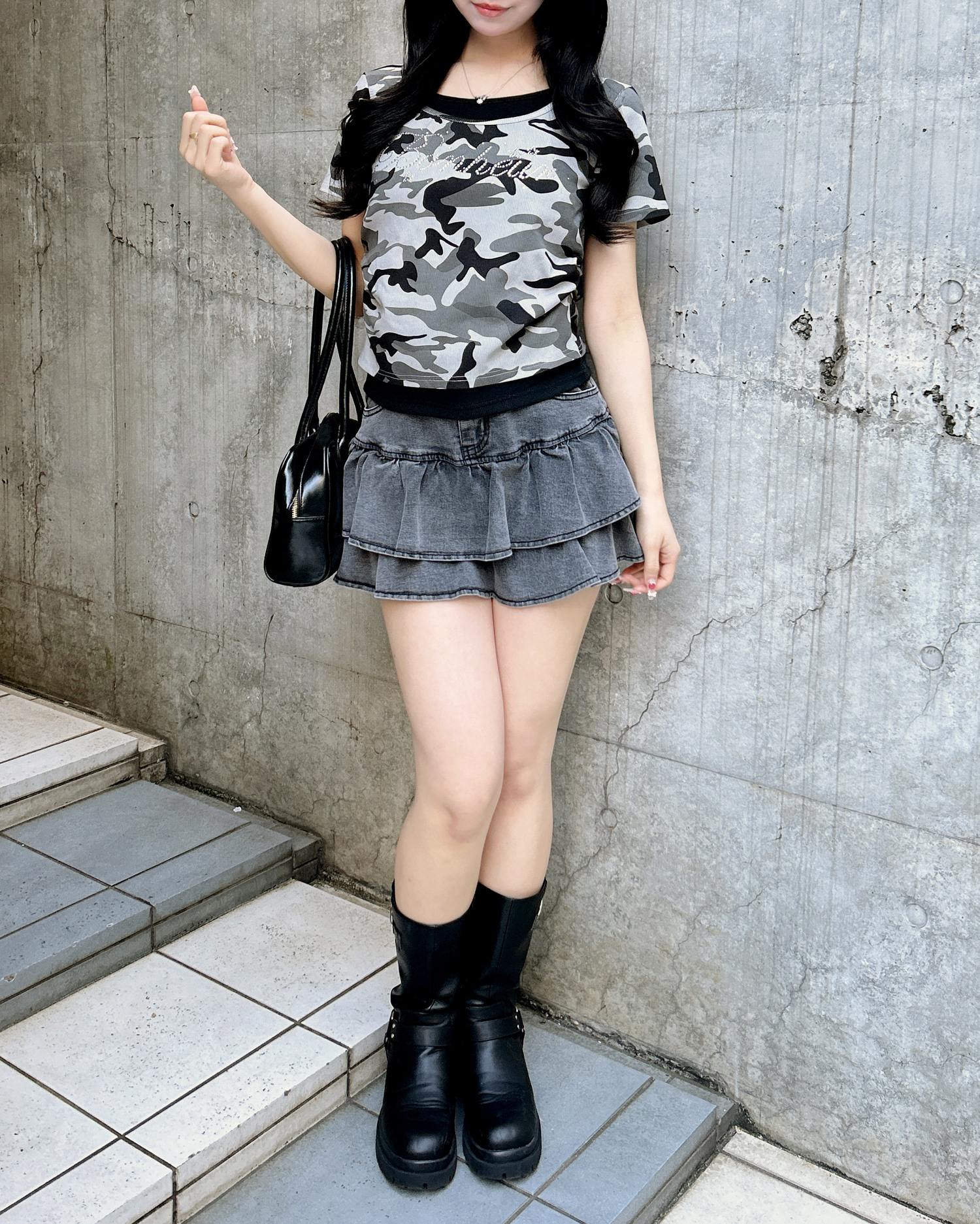 クール&スタイリッシュな迷彩柄にラインストーンをプラス。
