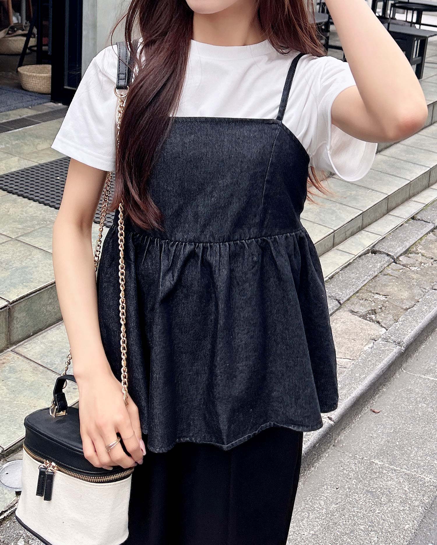 インパクト抜群の大きなリボンが可愛いデニムキャミソール。