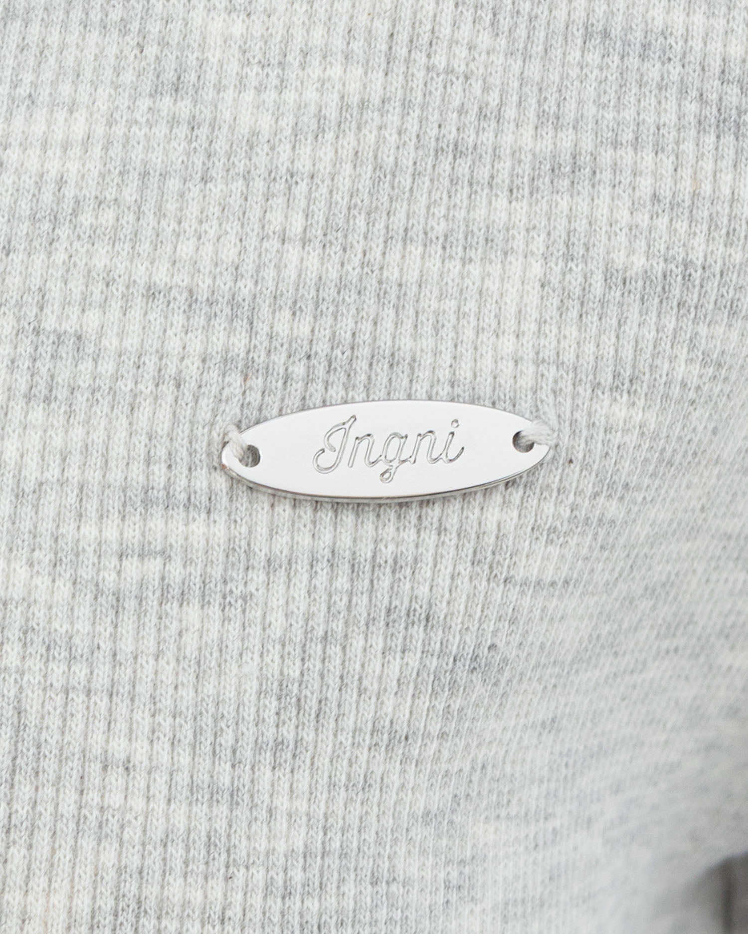 胸元にあしらったブランドネーム入りのプレートがアクセントに。