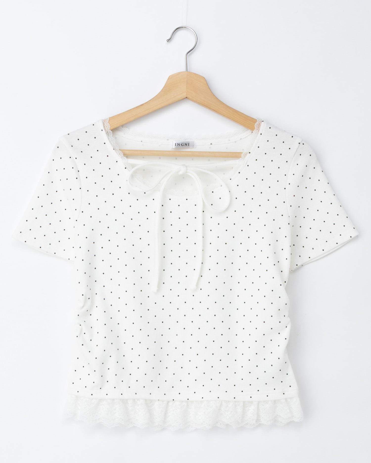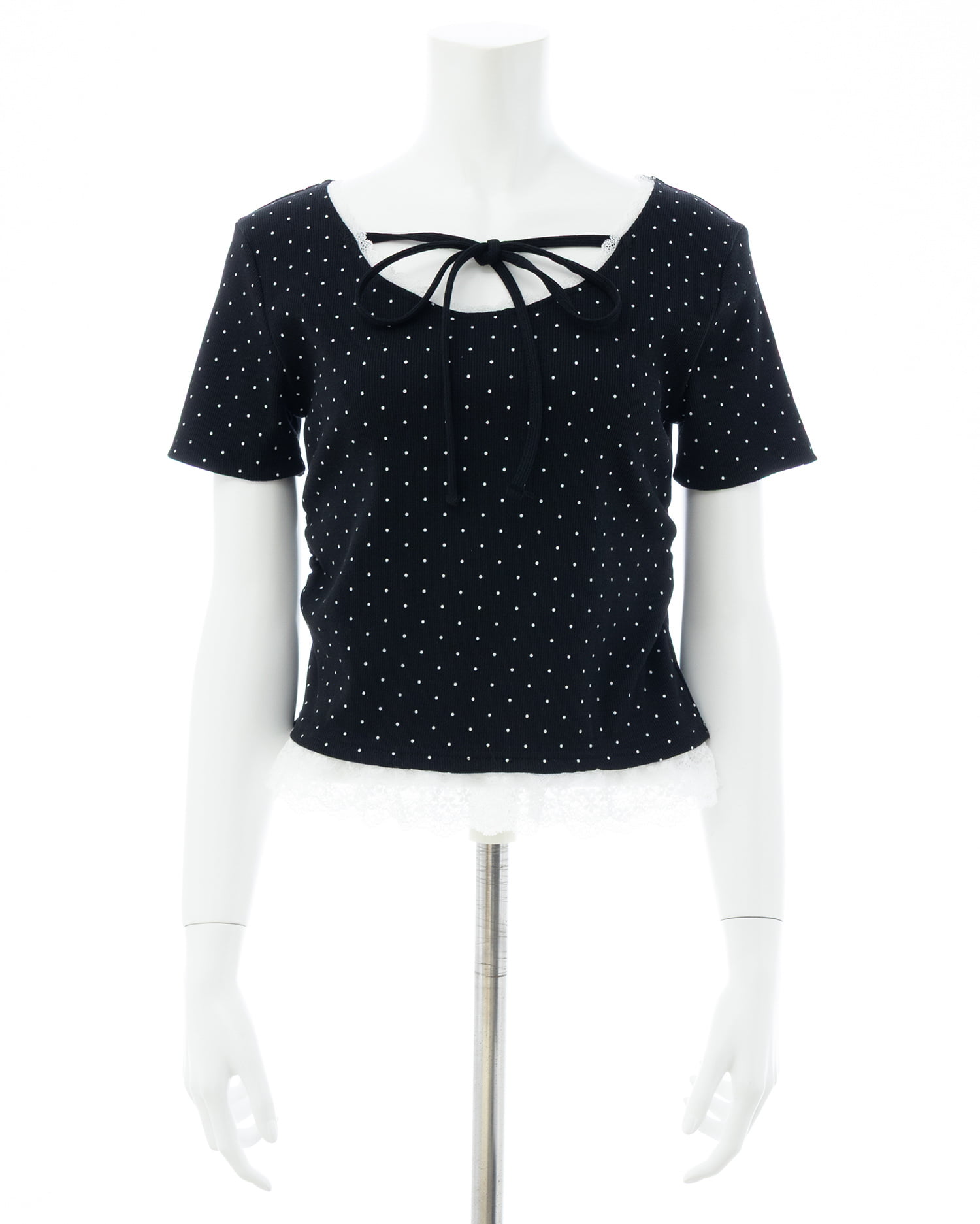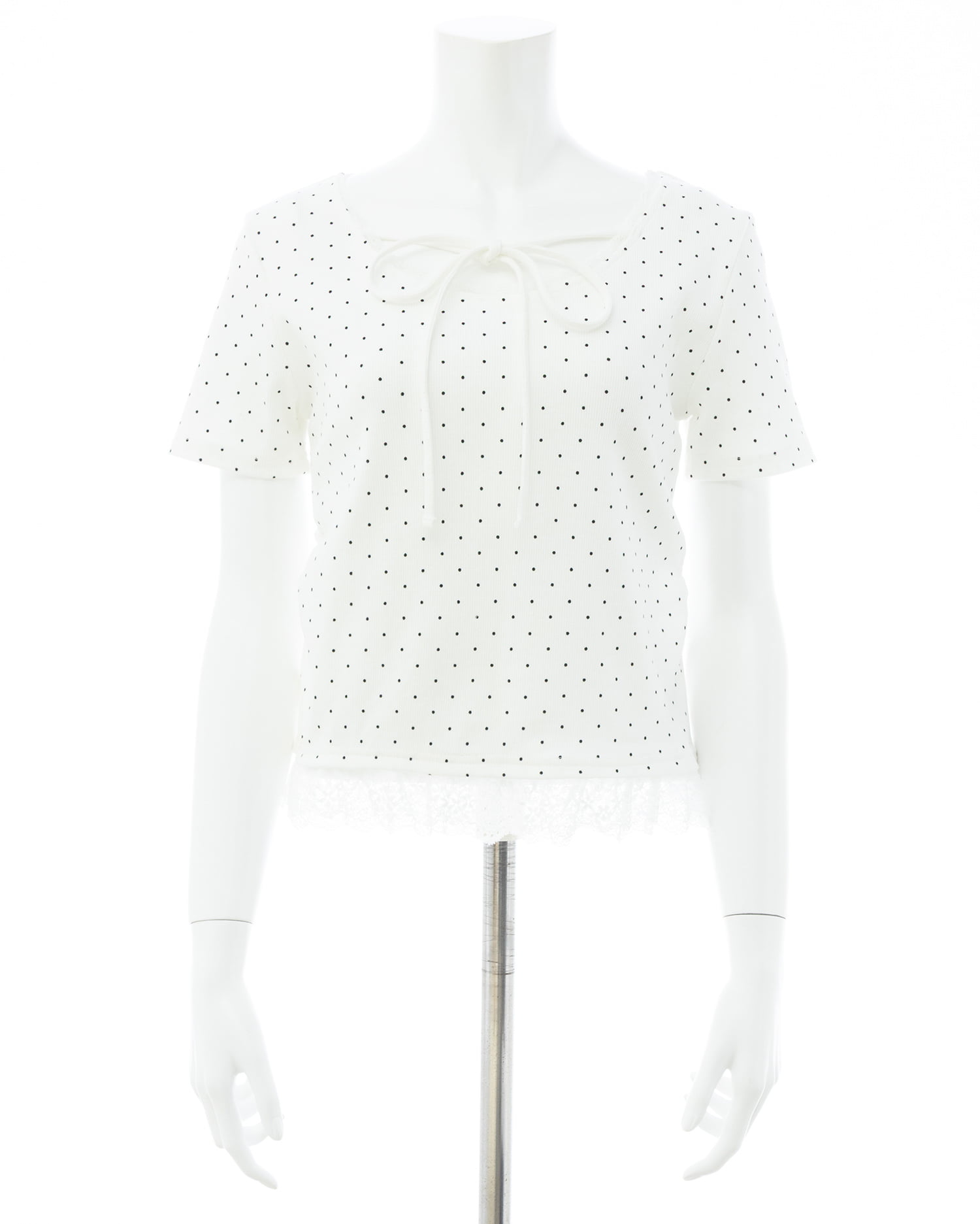 レース使いでカジュアルなカットソーをレディなアイテムに。