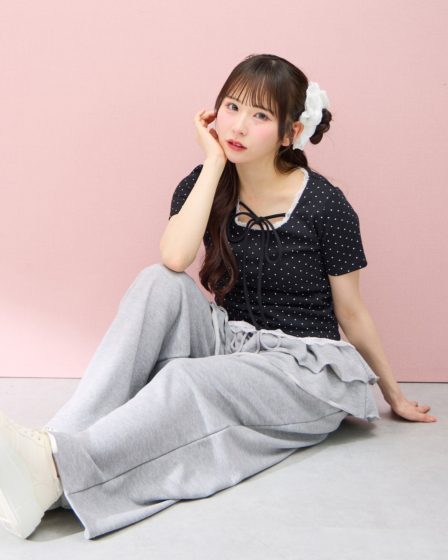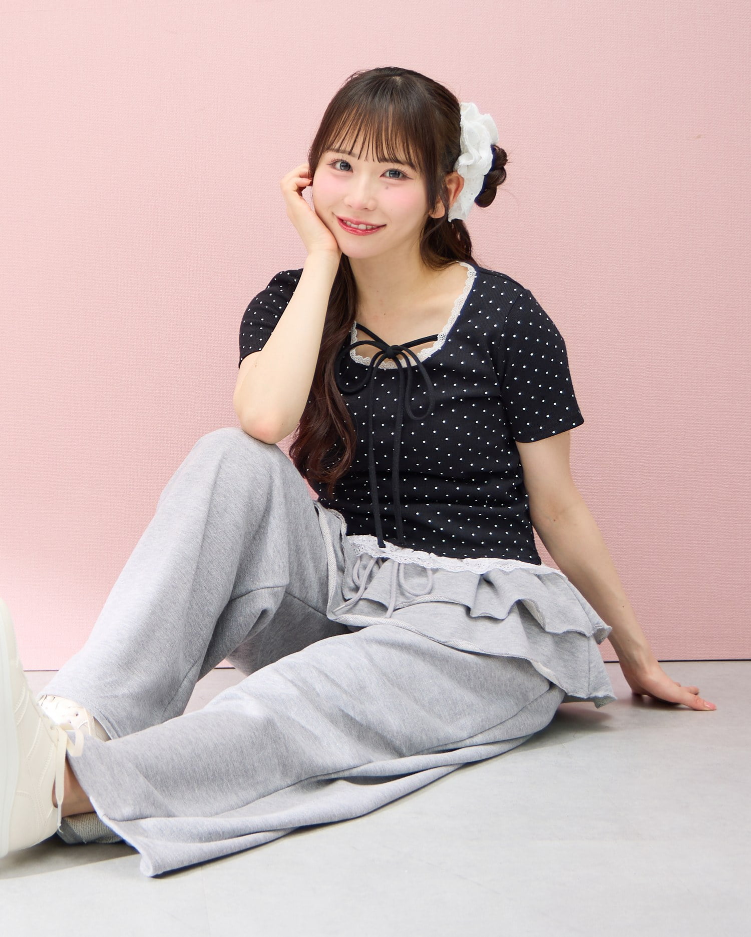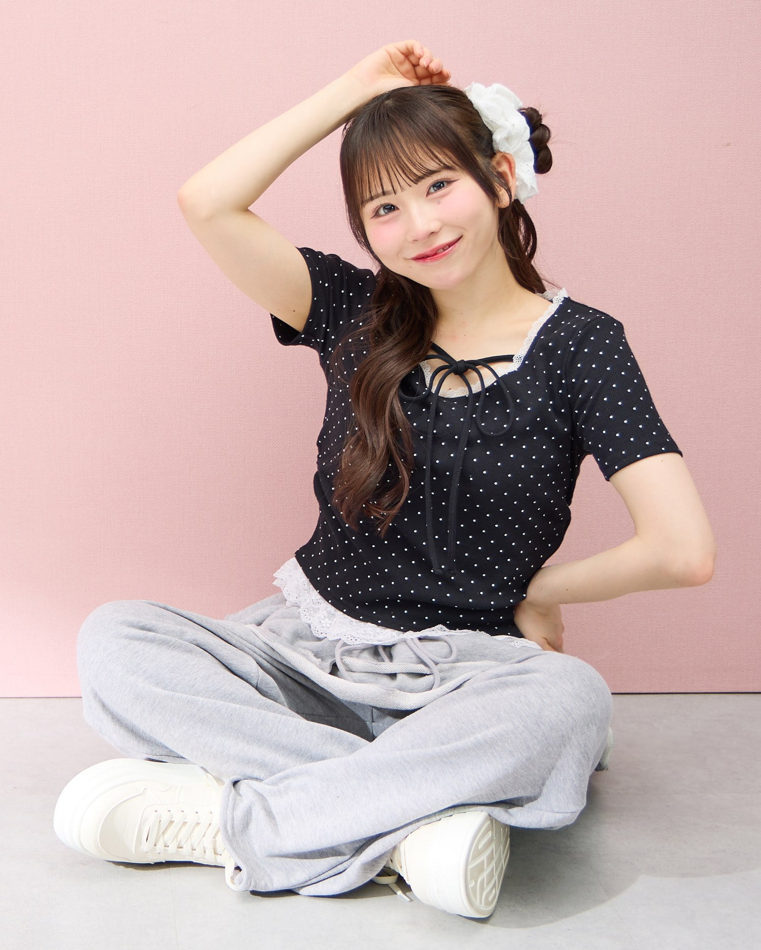 レース使いでカジュアルなカットソーをレディなアイテムに。