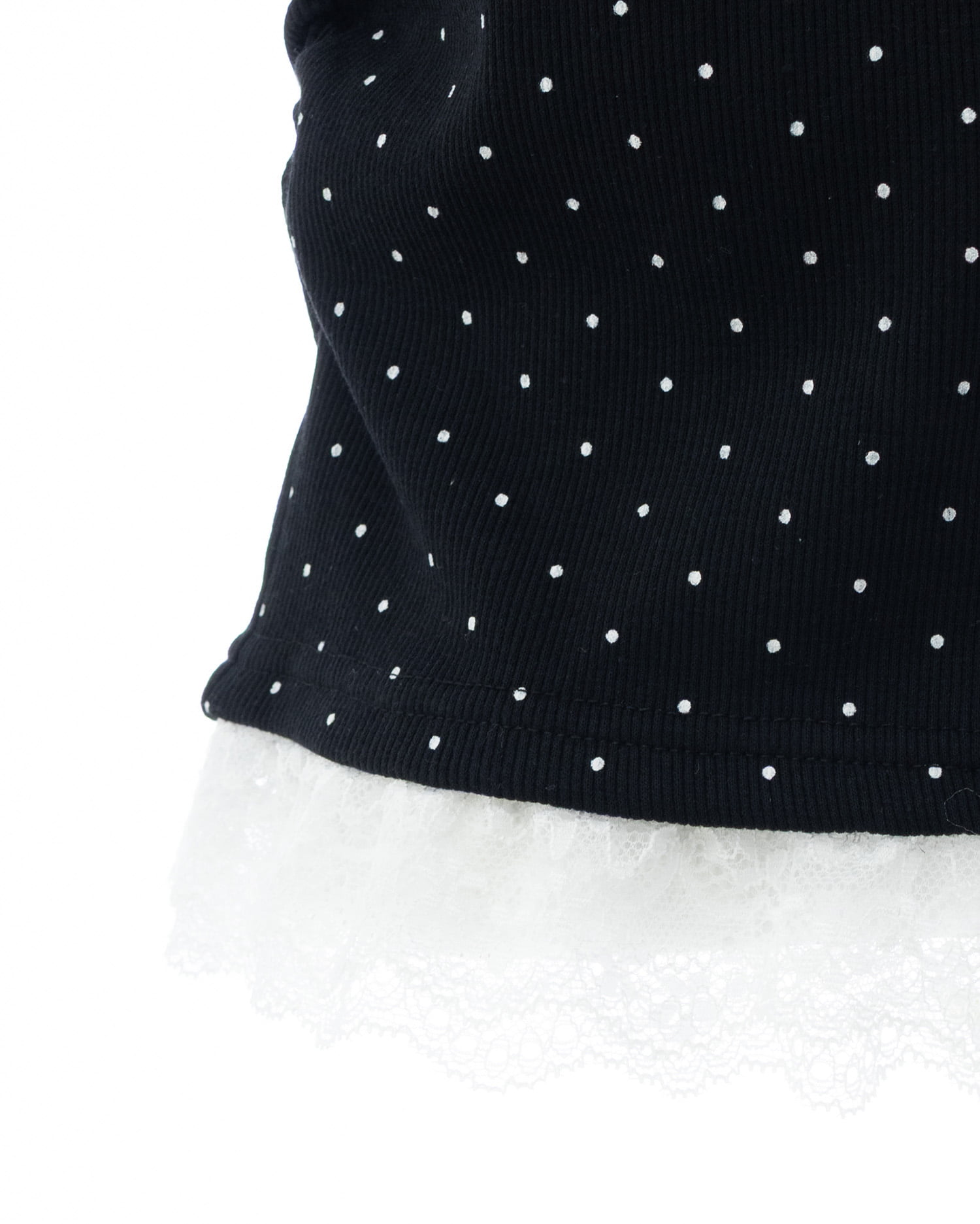 ネックラインや裾には繊細なレースをあしらってアクセントにしています。