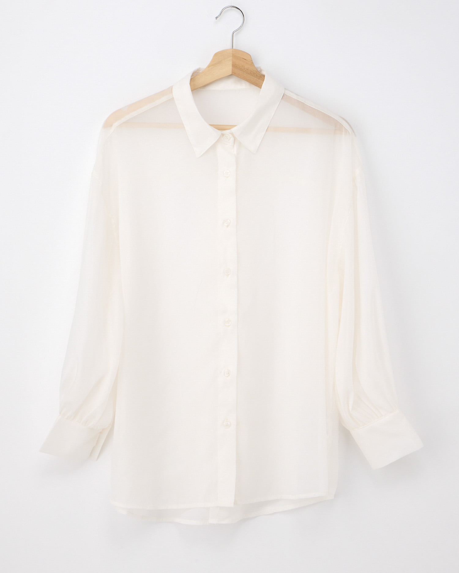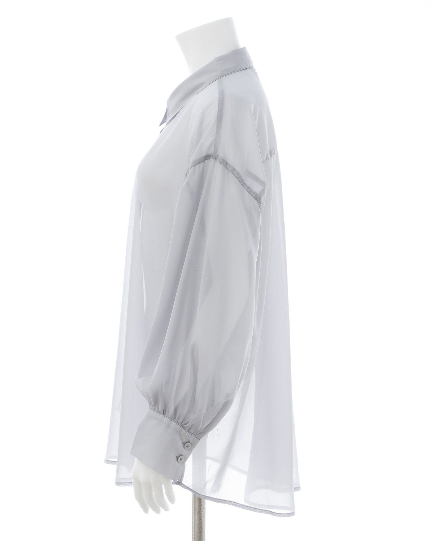 ほんのり光沢のある生地で仕立てたシアーシャツです。
