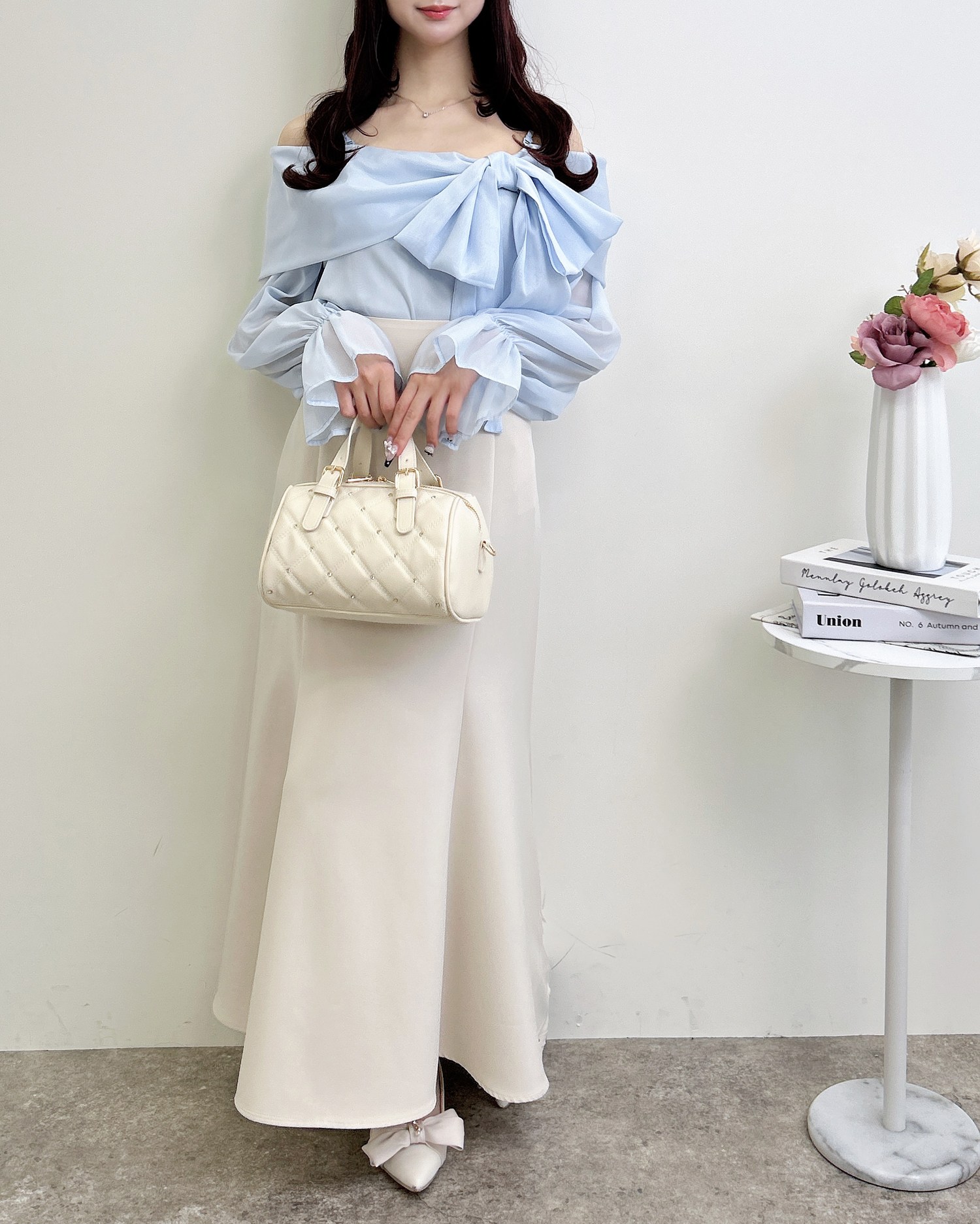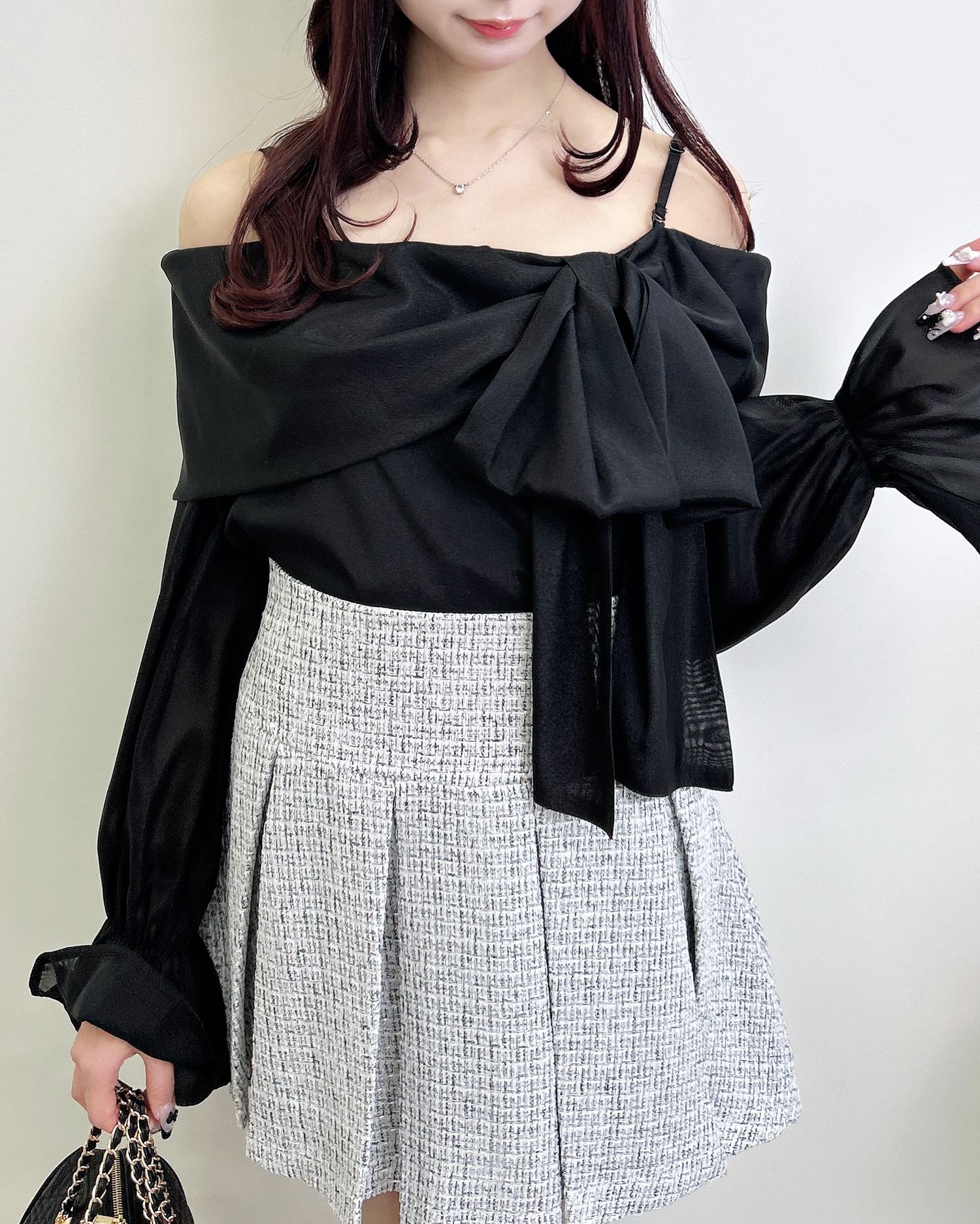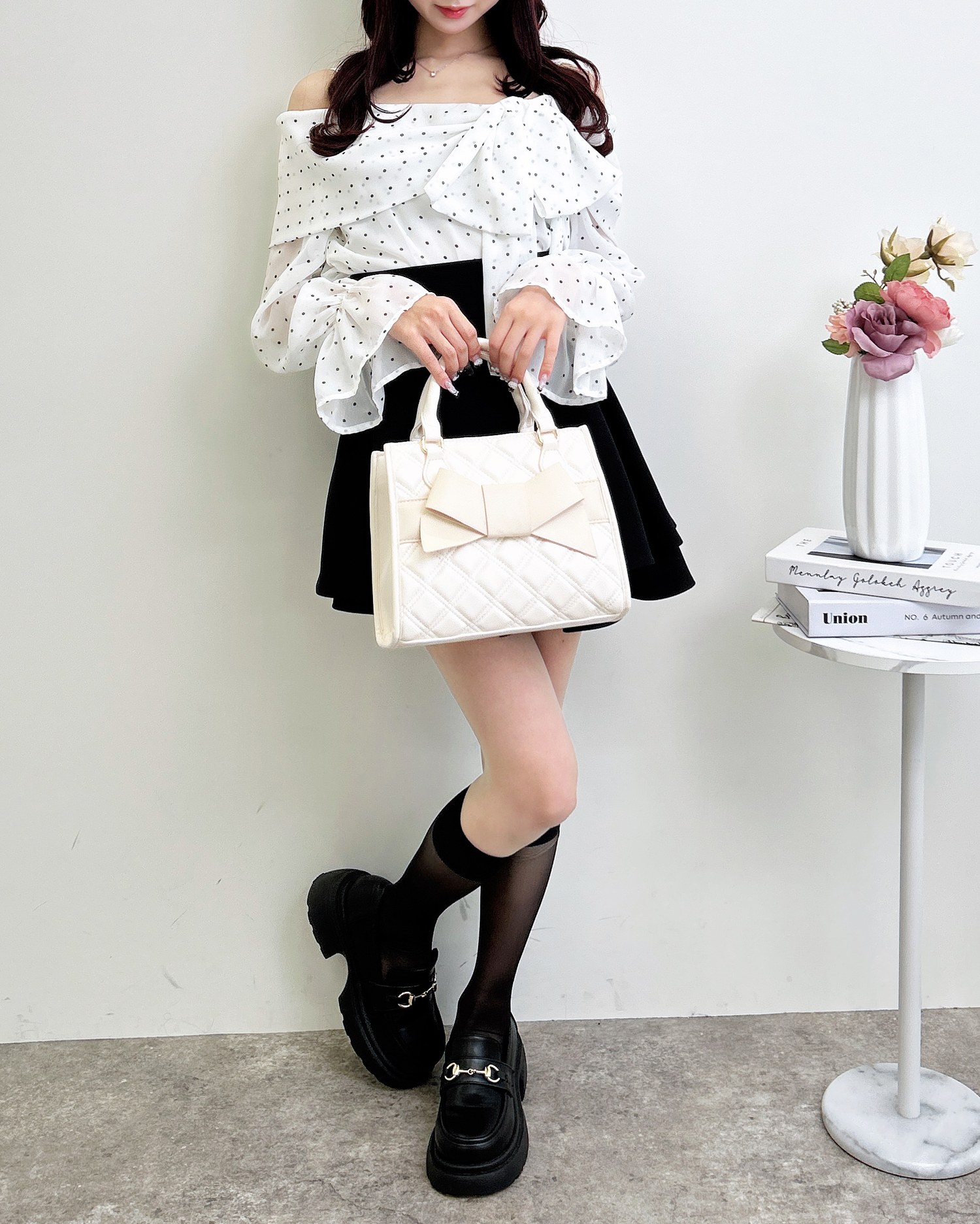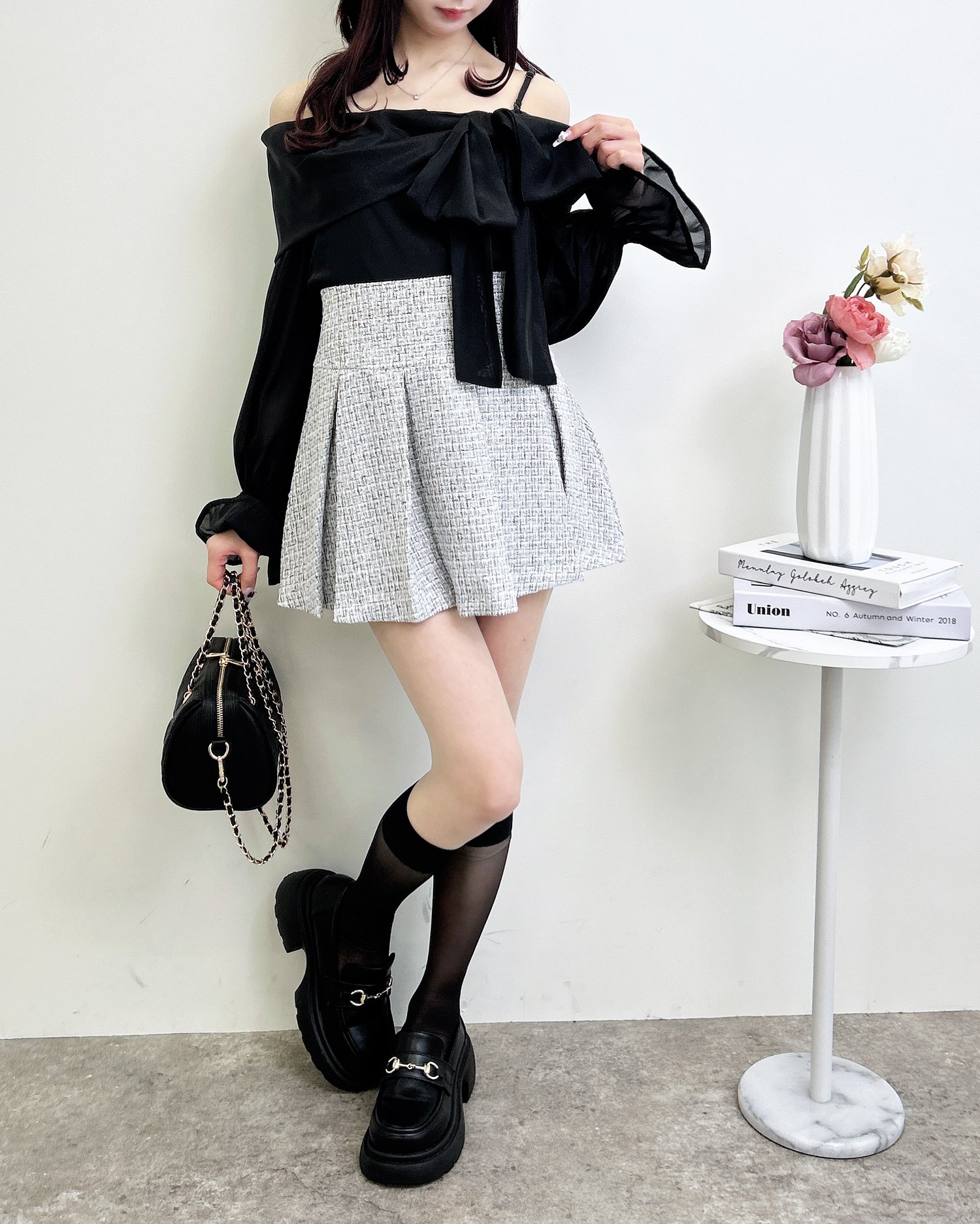 ミニスカートと合わせて、とことんガーリーなスタイリングを楽しむのも◎