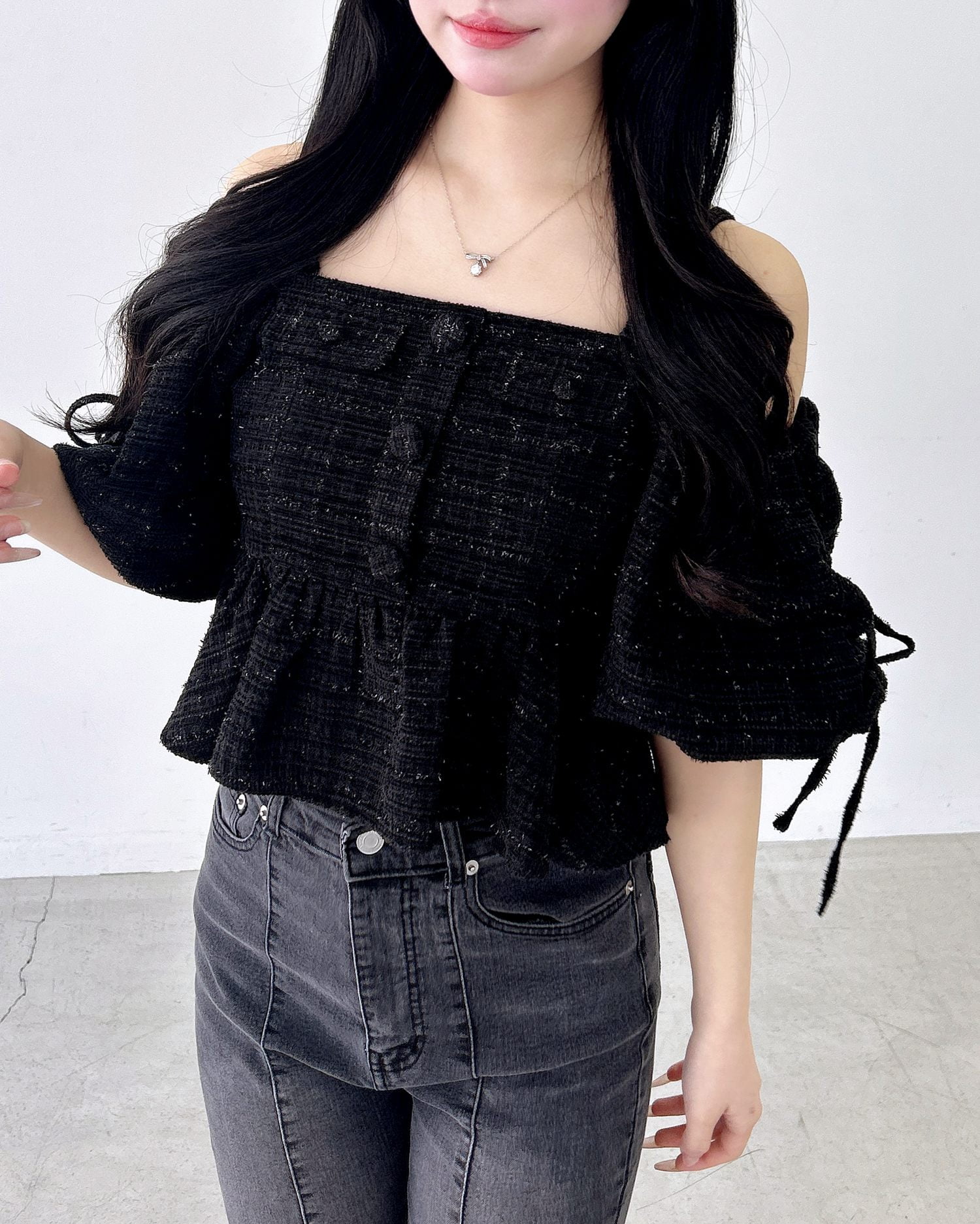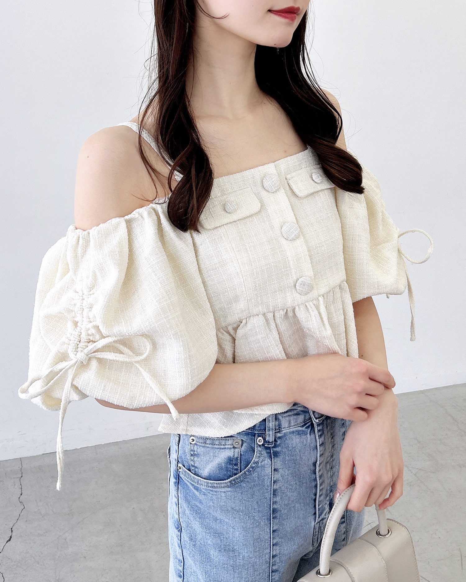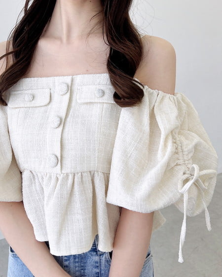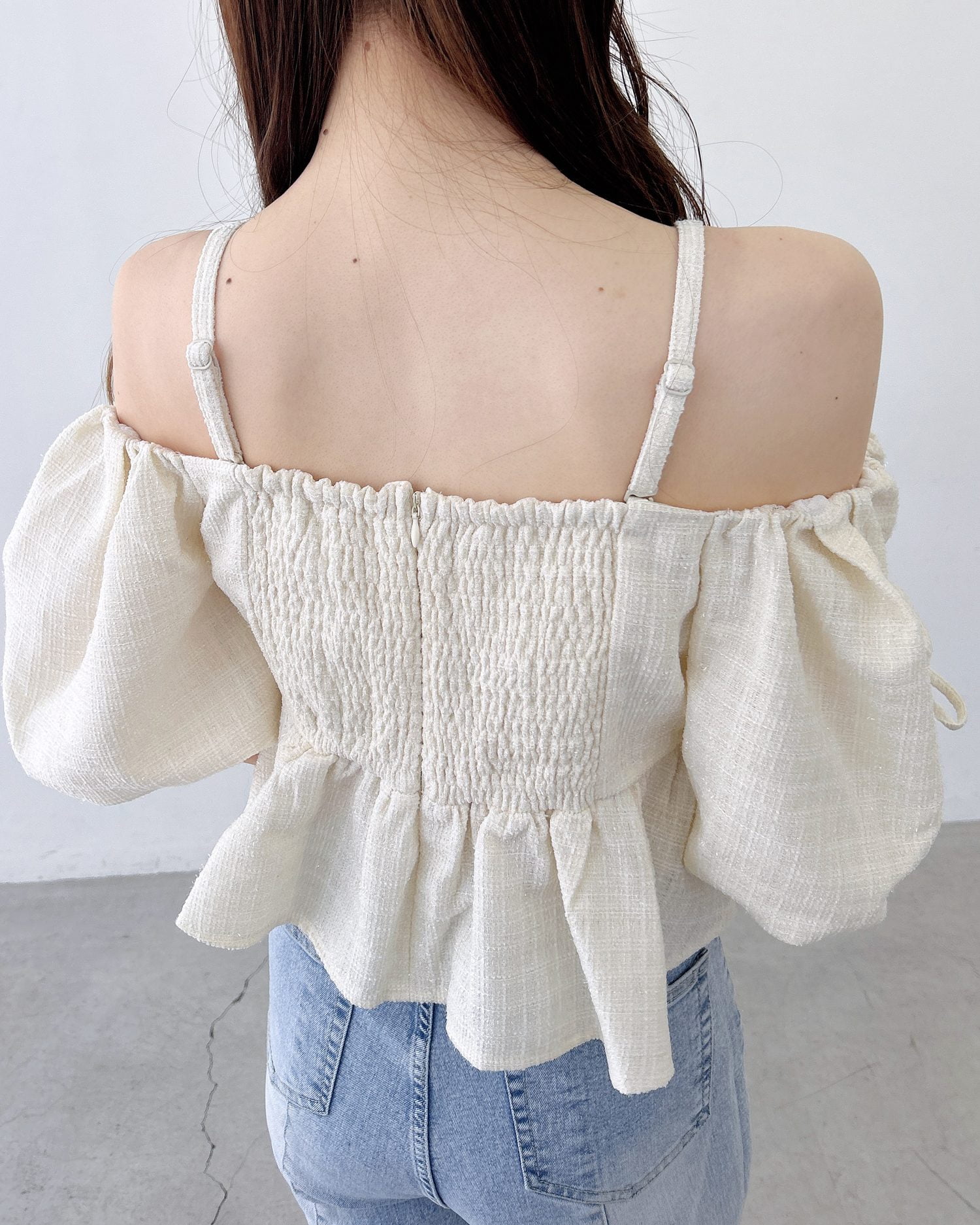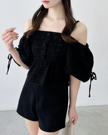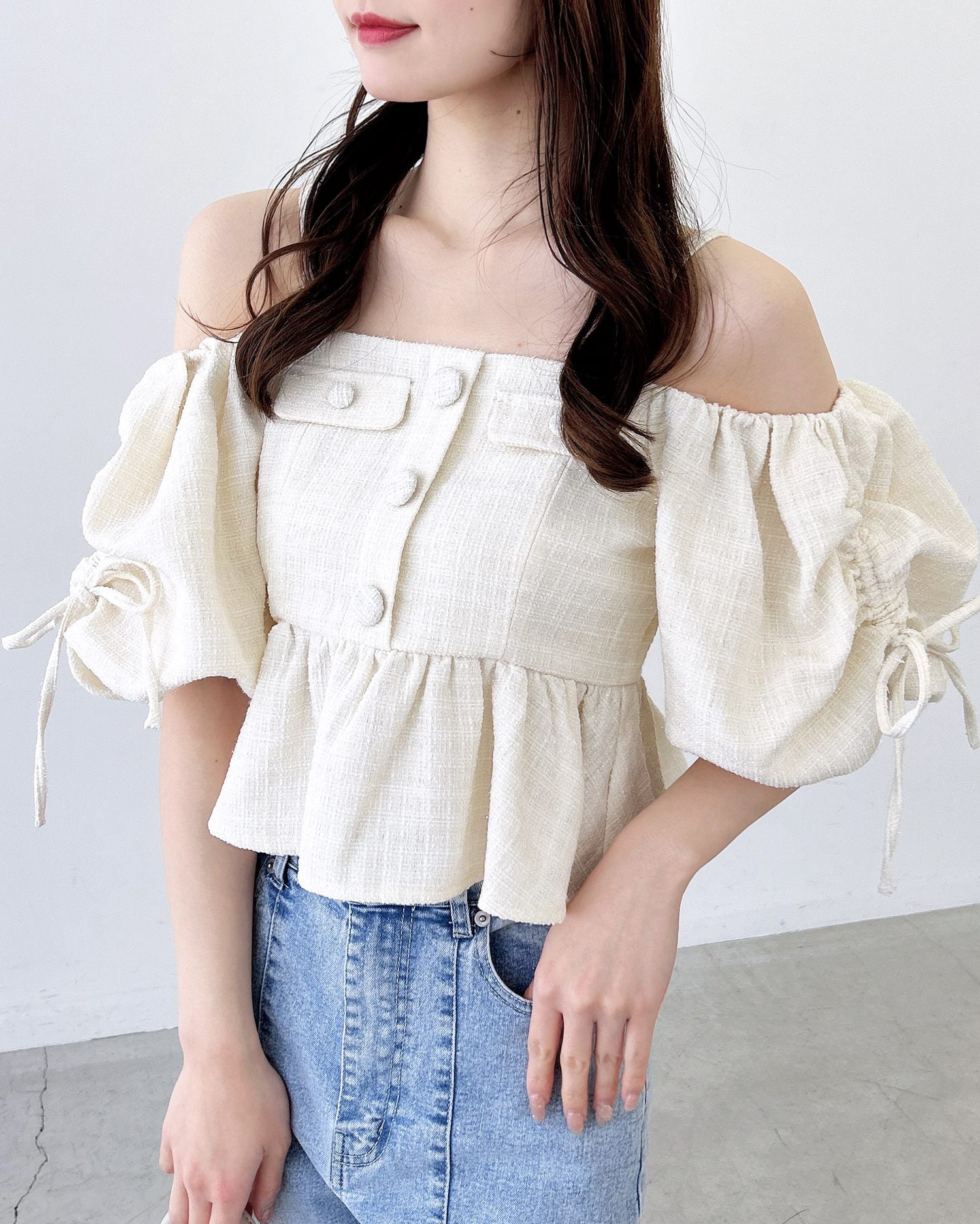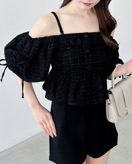 【超高見え♡ツイードペプラムオフショルブラウス】