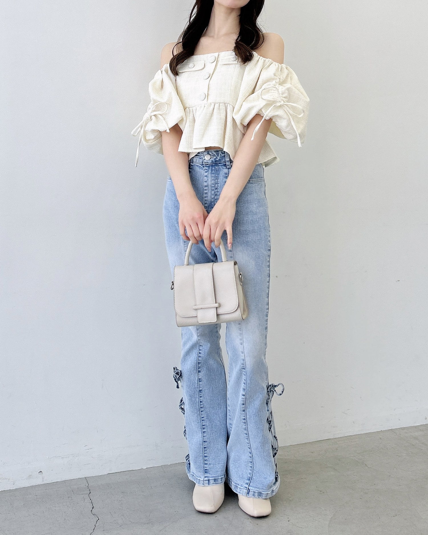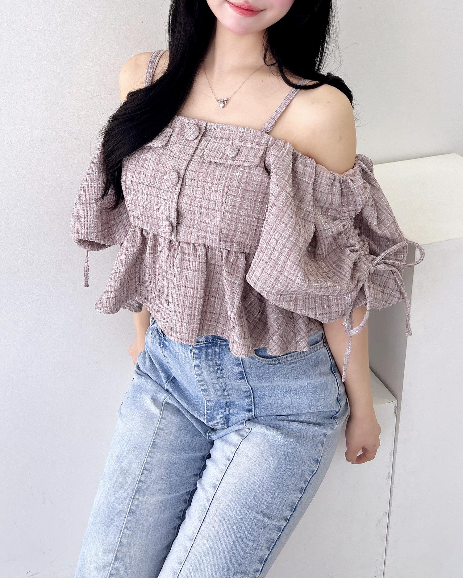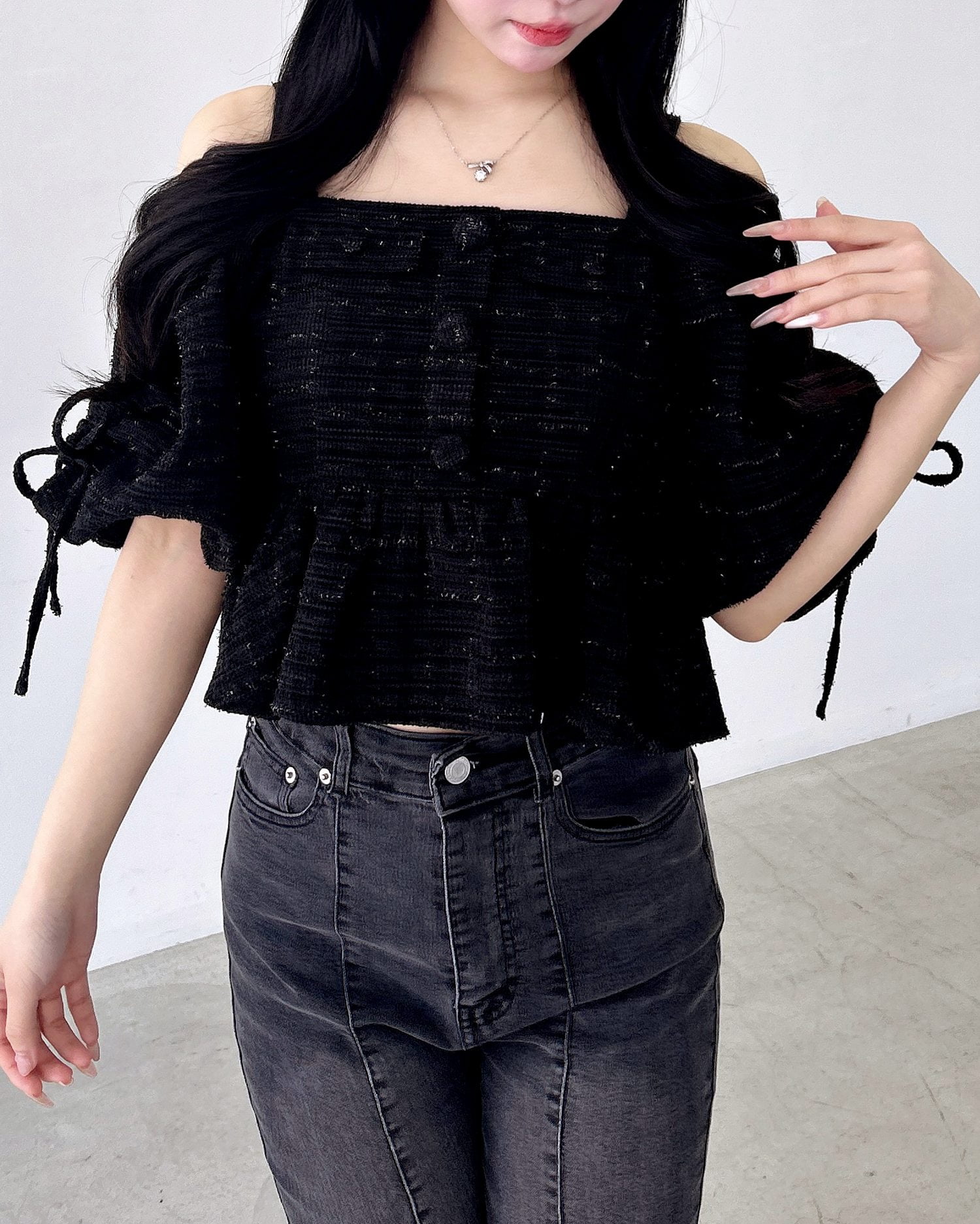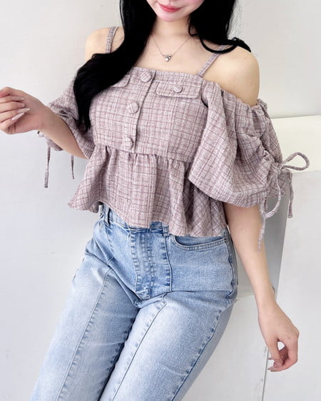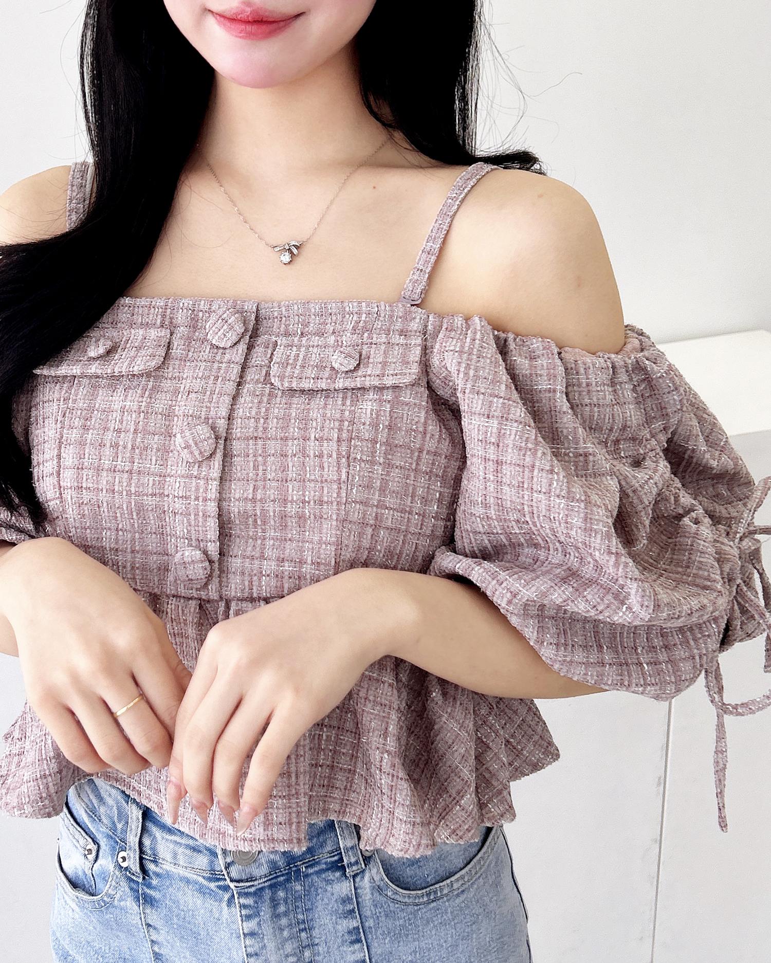 【超高見え♡ツイードペプラムオフショルブラウス】