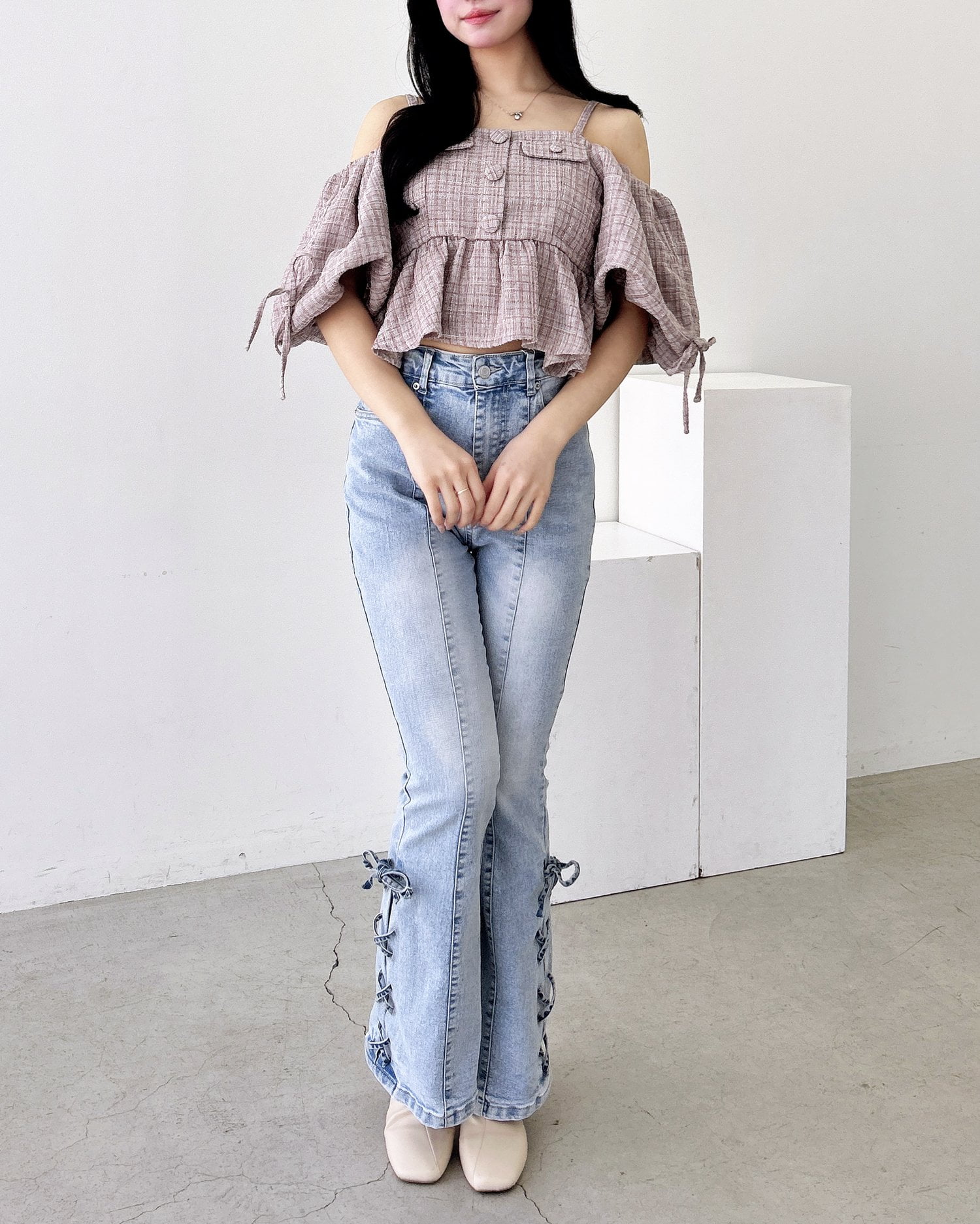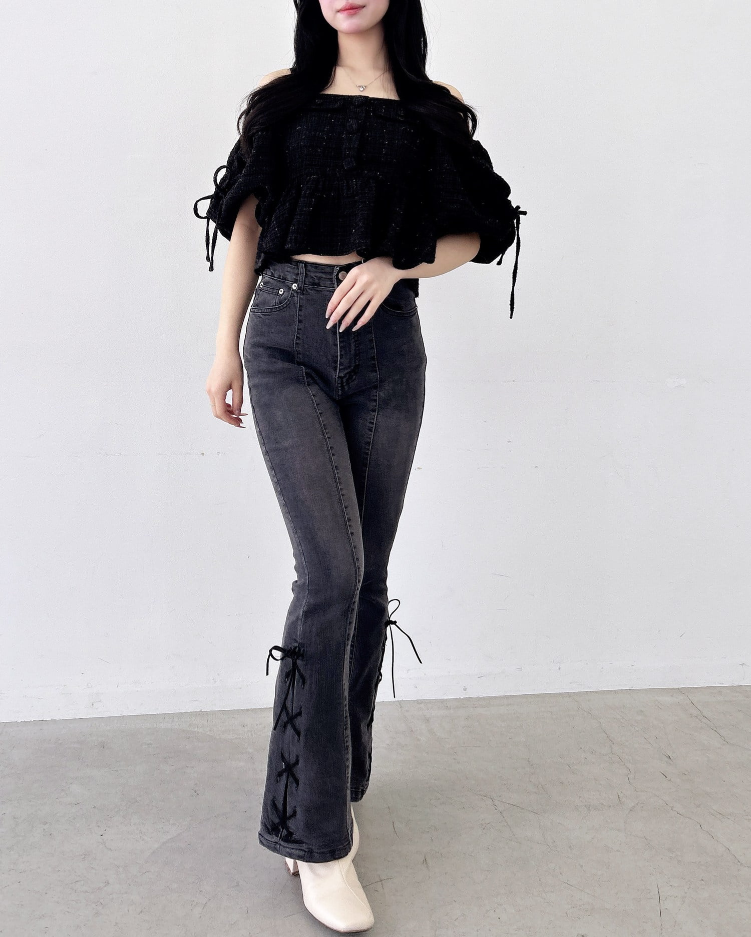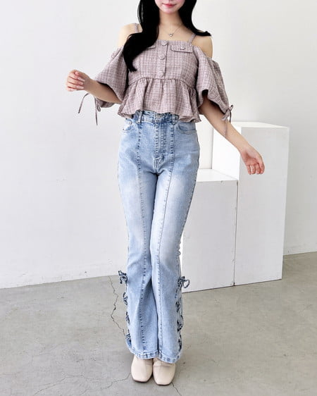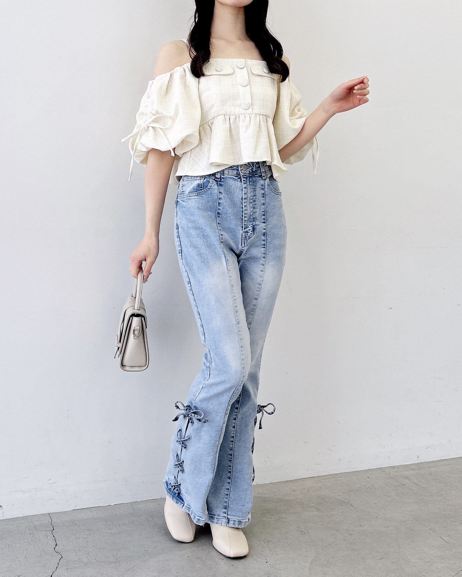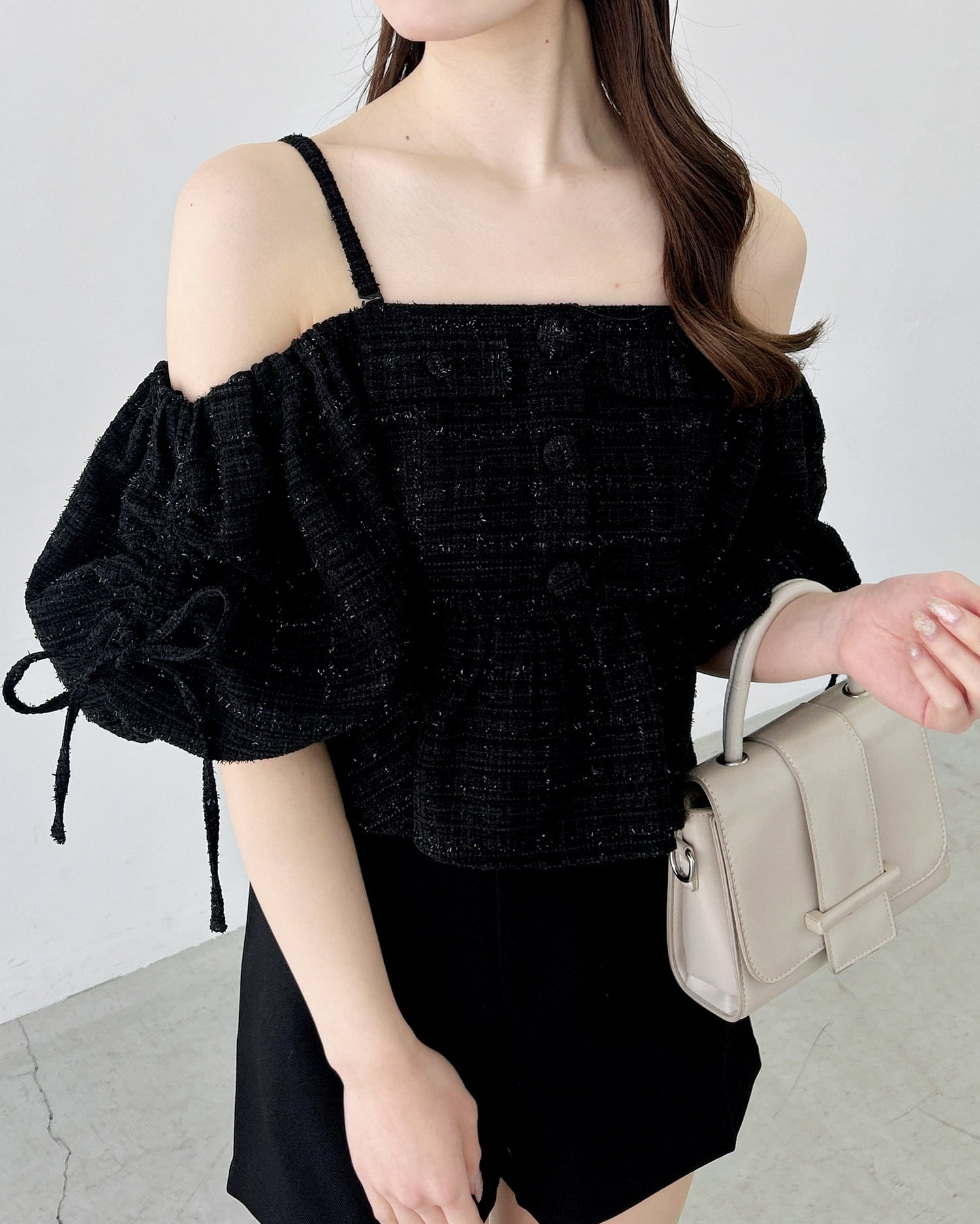 【超高見え♡ツイードペプラムオフショルブラウス】