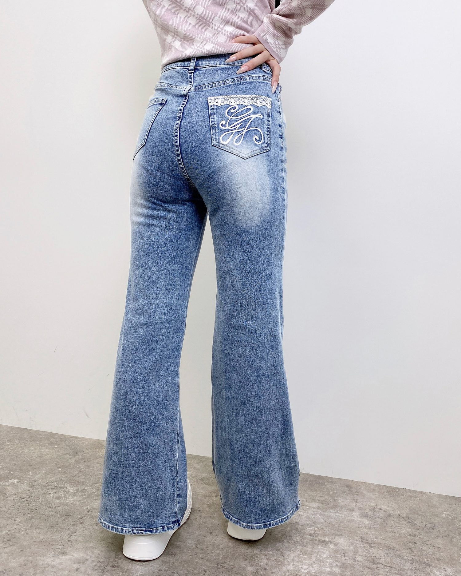 【刺繍とレースがついたキュートすぎるスタイルアップデニム♡】