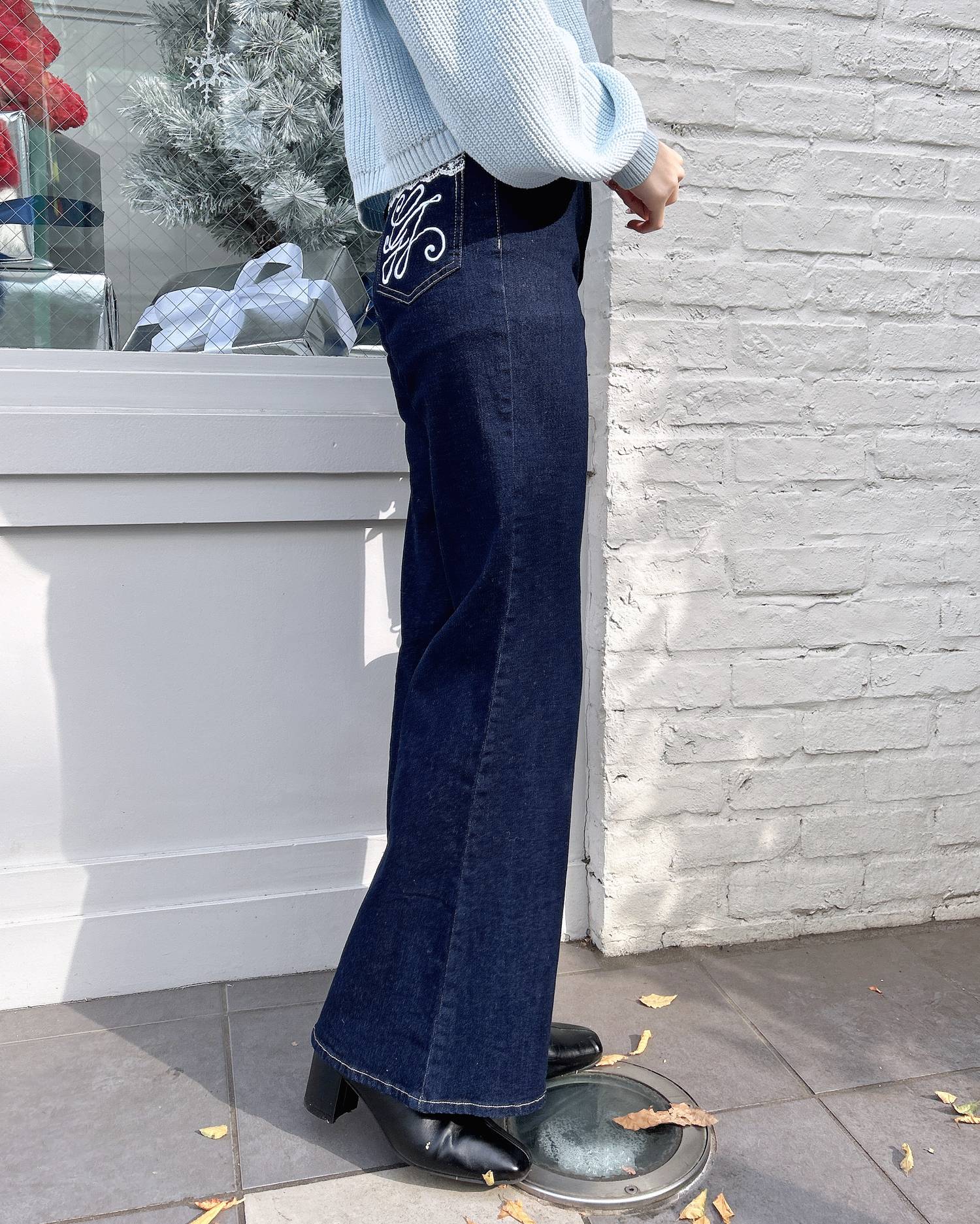細見えスタイルアップ力抜群なフレアデニムに、おしゃれな刺繍と華奢なレースをつけた、