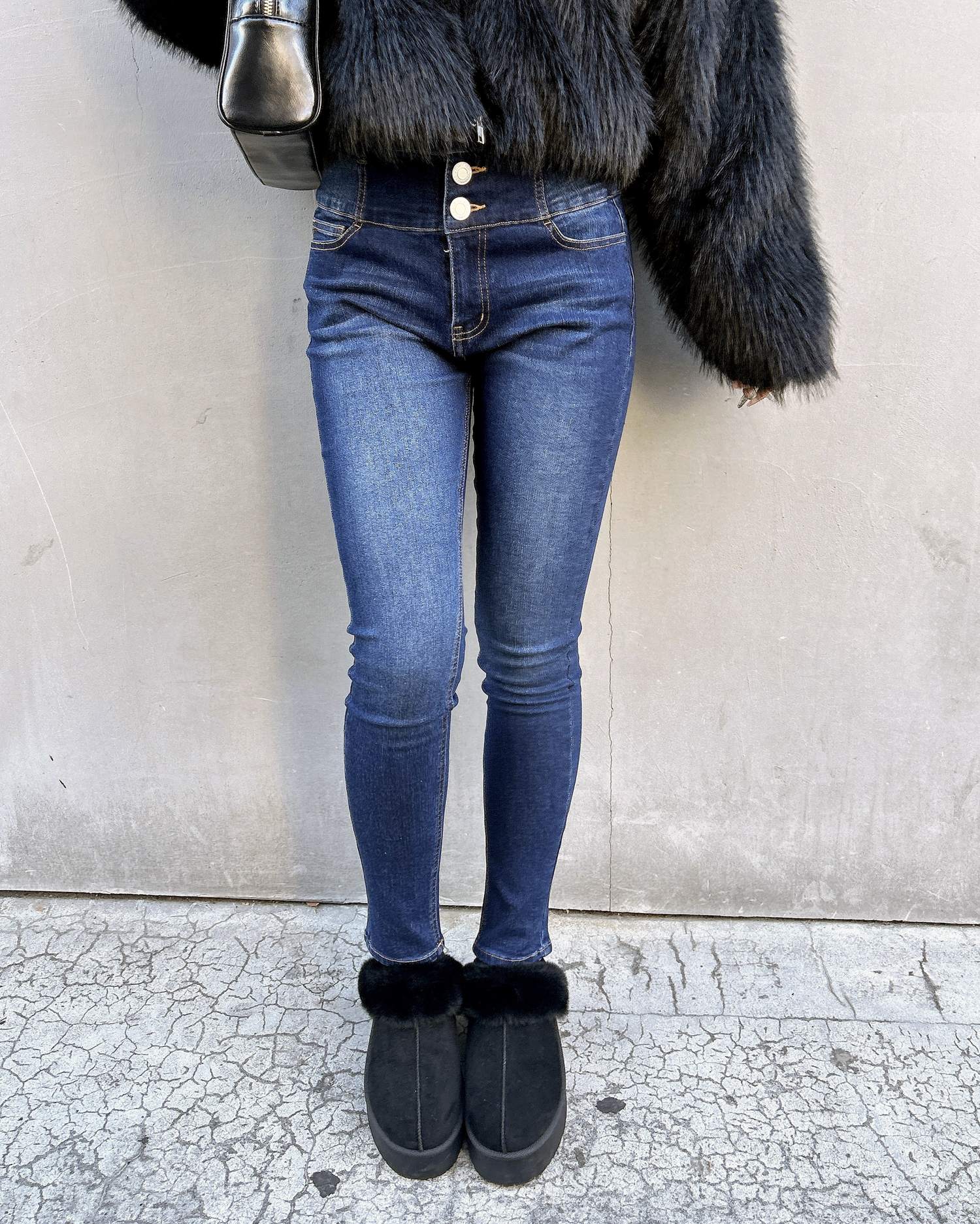 【ハイウエストデザインがスタイルアップ効果抜群!スキニーデニムパンツ】