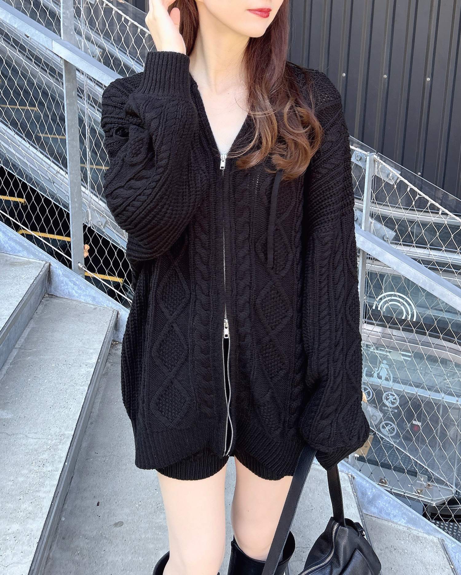 ・1254-900335【ポンポン付ケーブルチュニックニットパーカー】