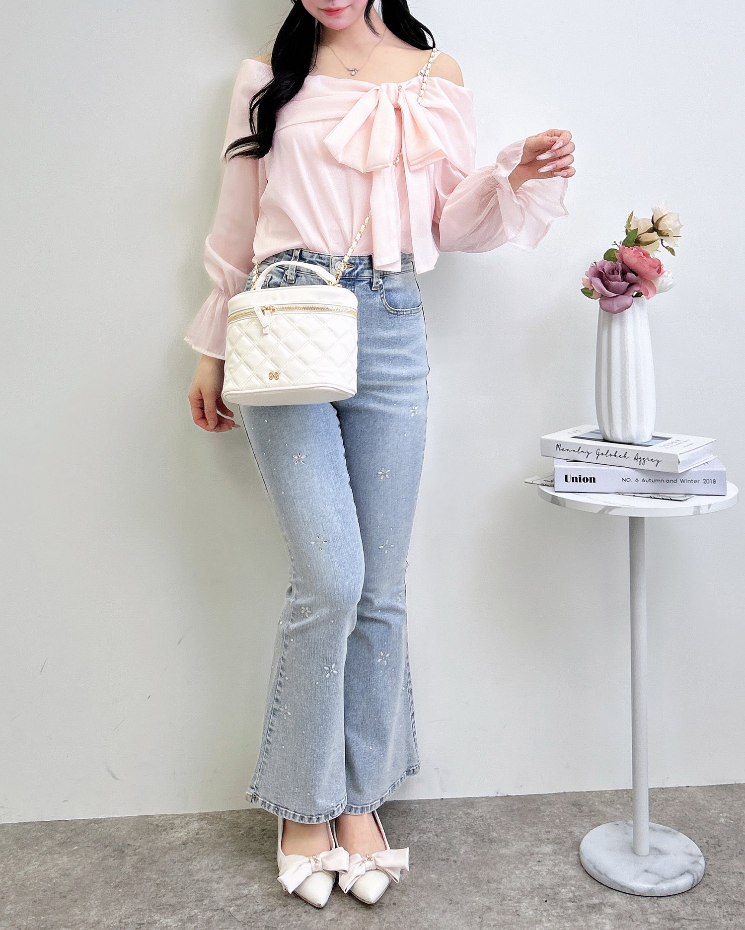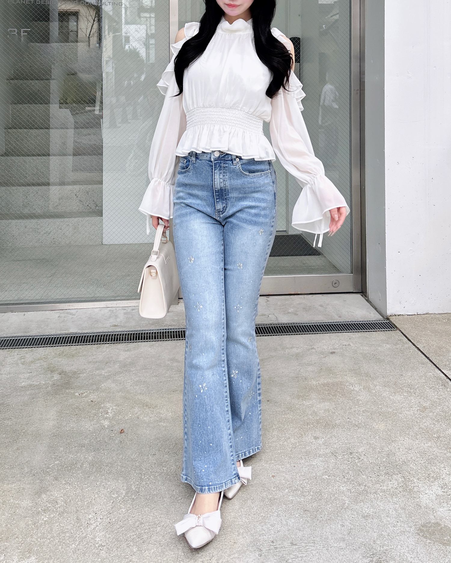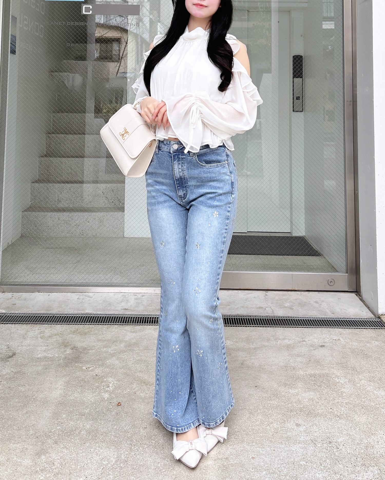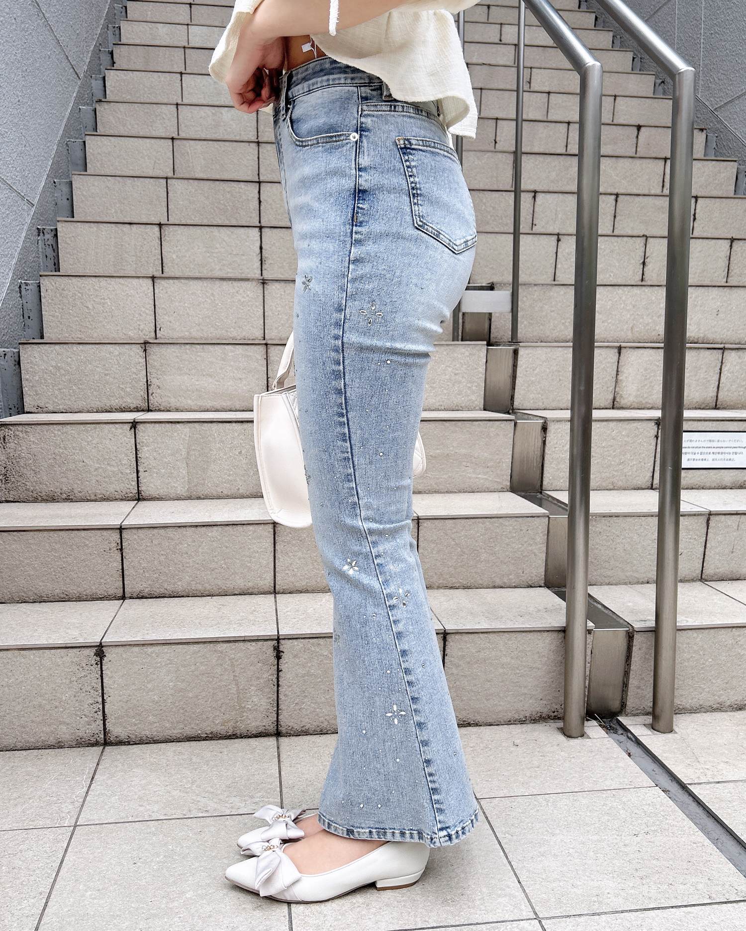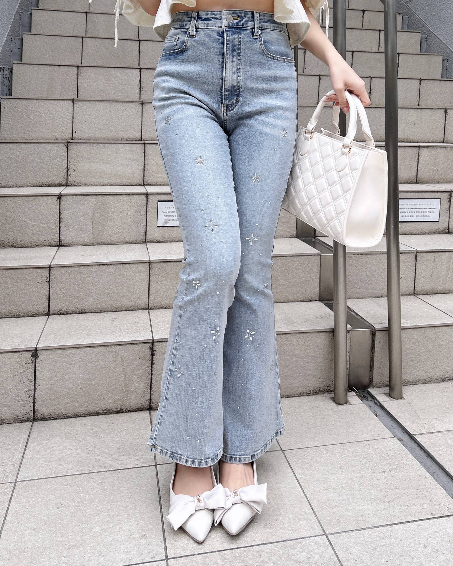 【存在感のあるビジューがかわいすぎる♡デニムパンツ】