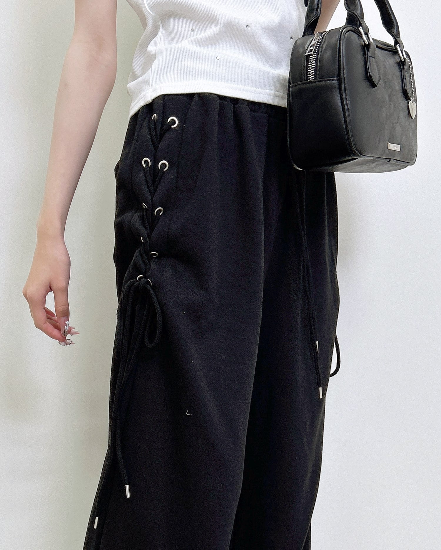• INGNI(イング) 【WEB限定】サイドレースアップスウェットパンツ クロ